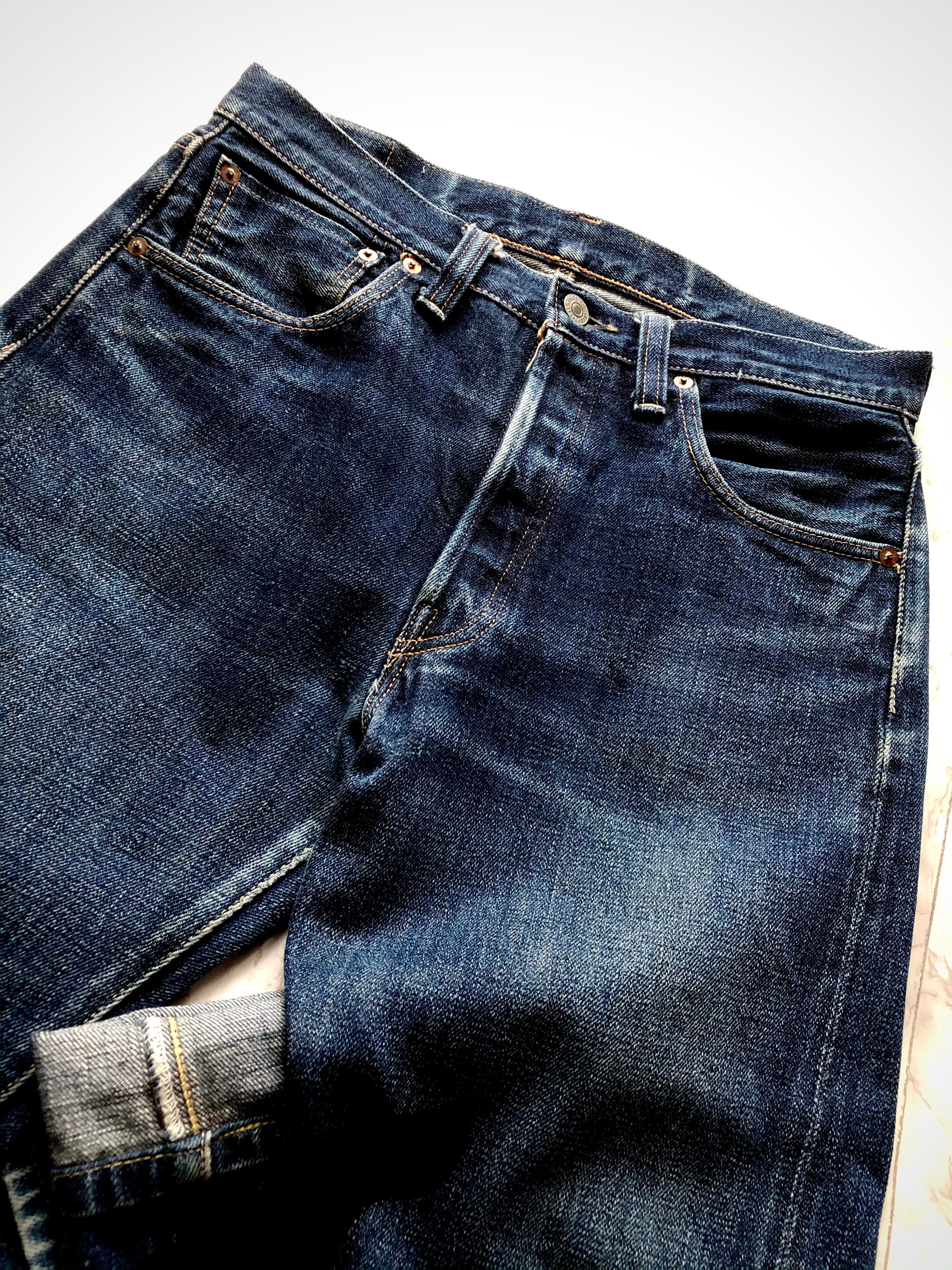 1940年代~,大戦直後のLEVI’Sから当時発売されていた所謂47年モデルとされる501-XX.革パッチの片面タブ付きインディゴデニムを忠実に再現し、完成度高く名品とされる00s〜国産復刻オールドモデル。