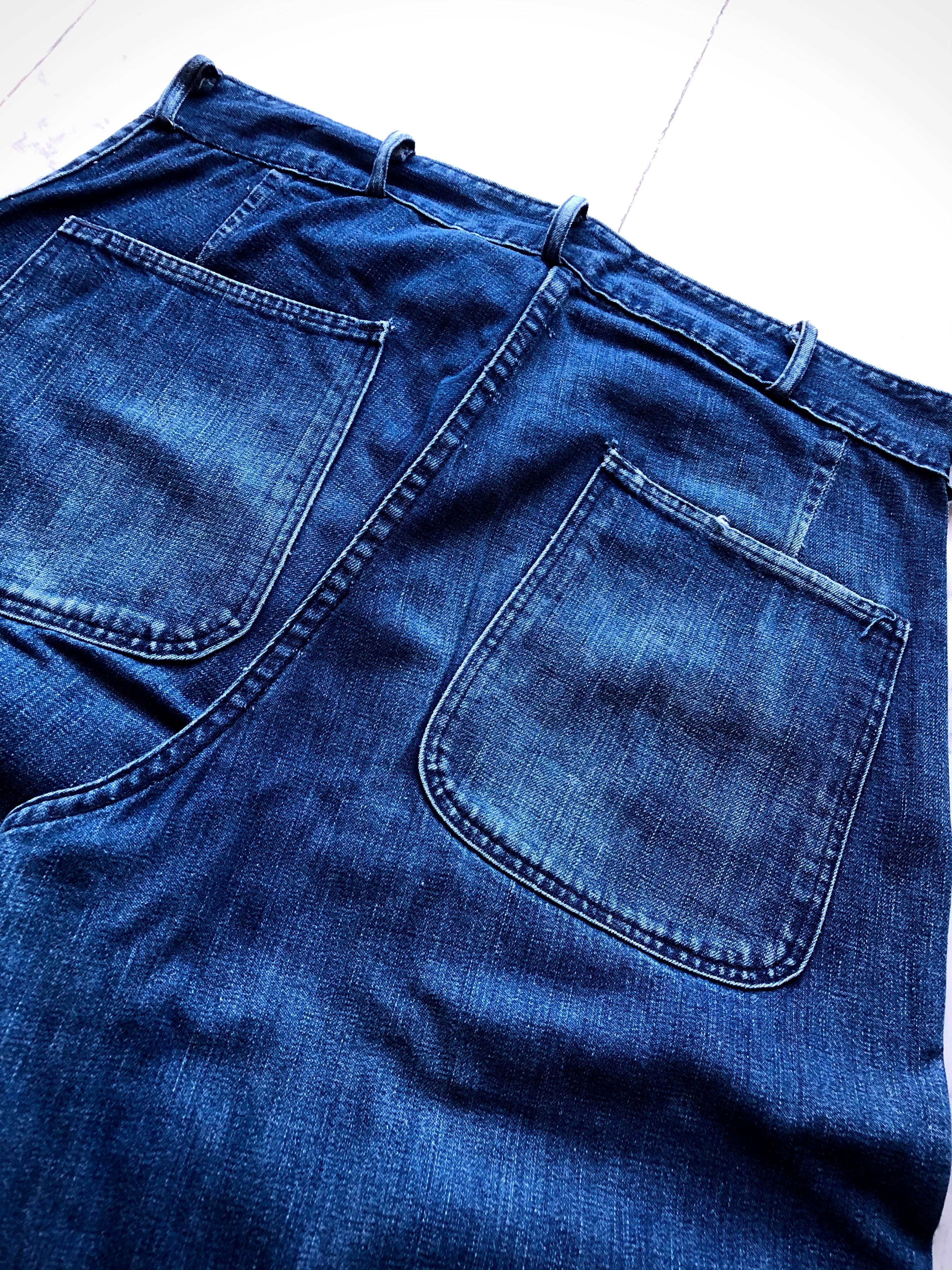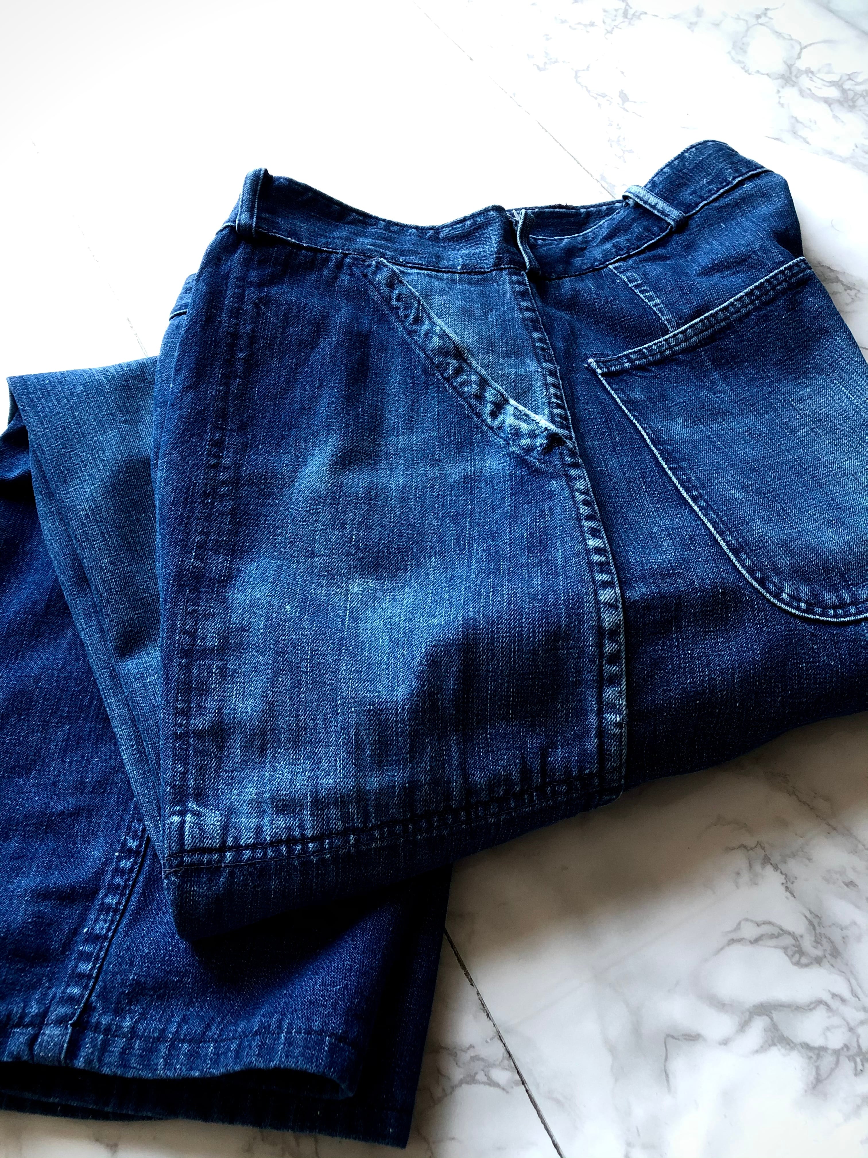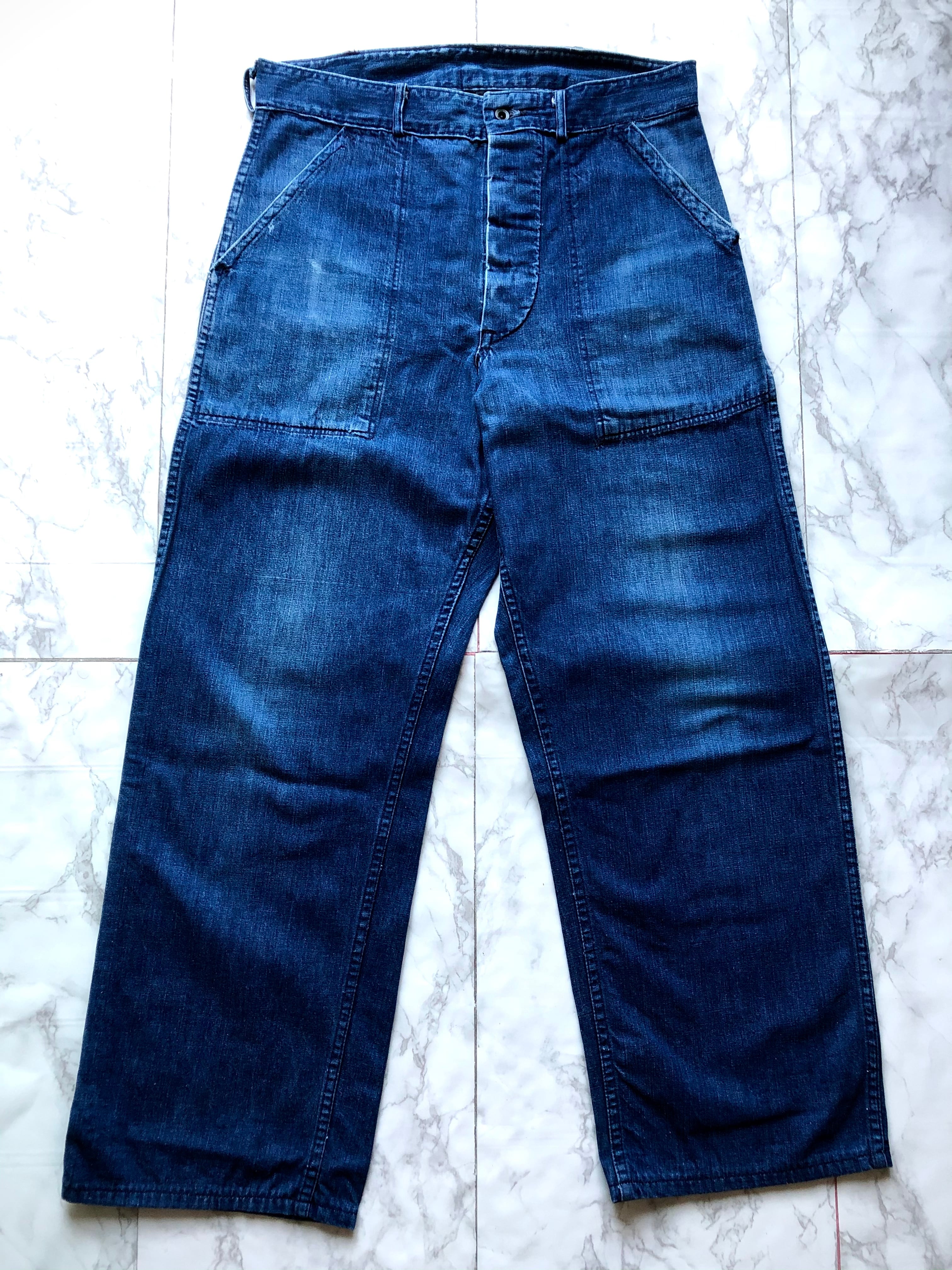 SECIAL RARE WW2 40s US.NAVY DENIM TROUSERS DECK PANTS BAKER STYLE OLD VINTAGE 。