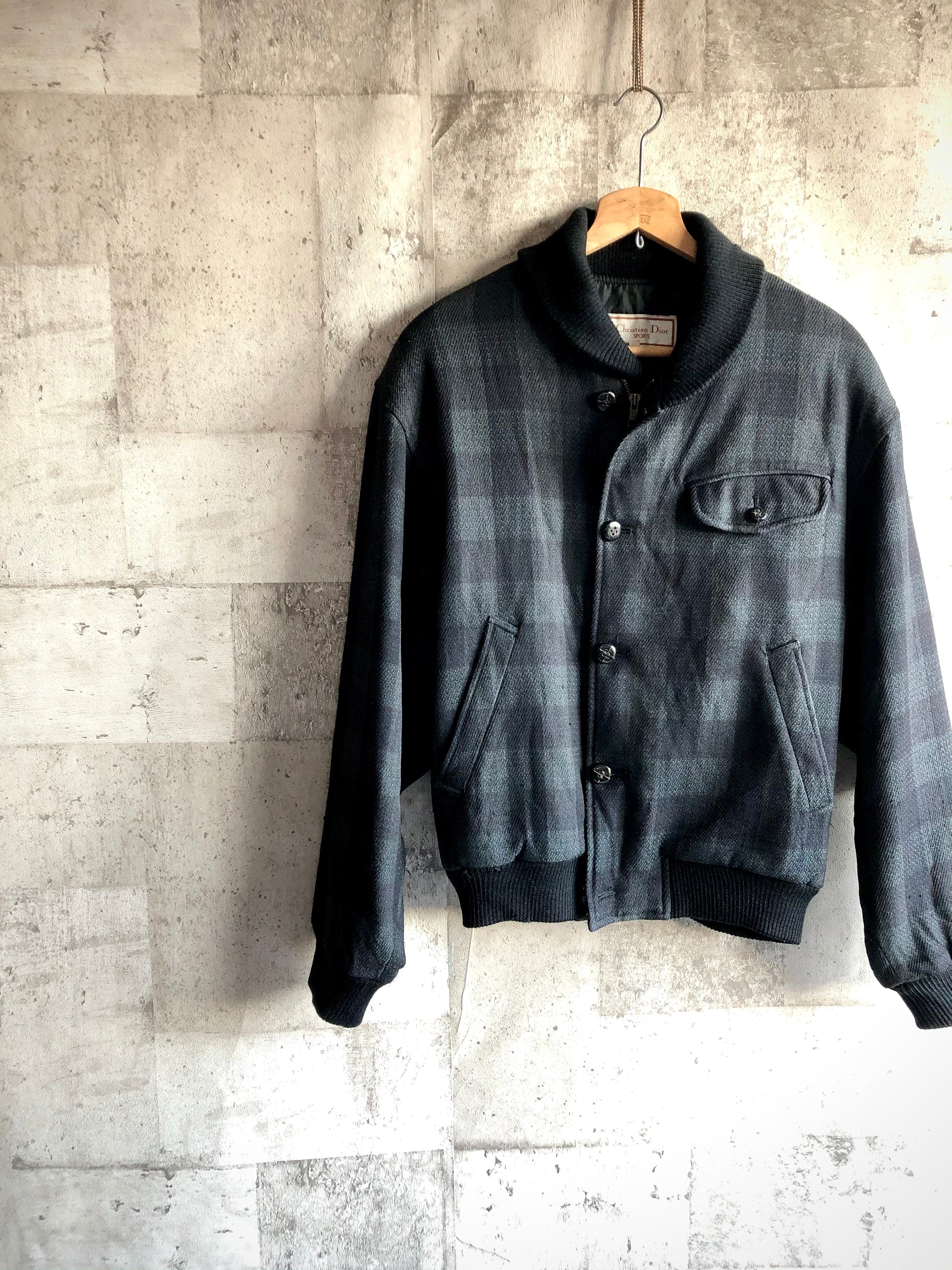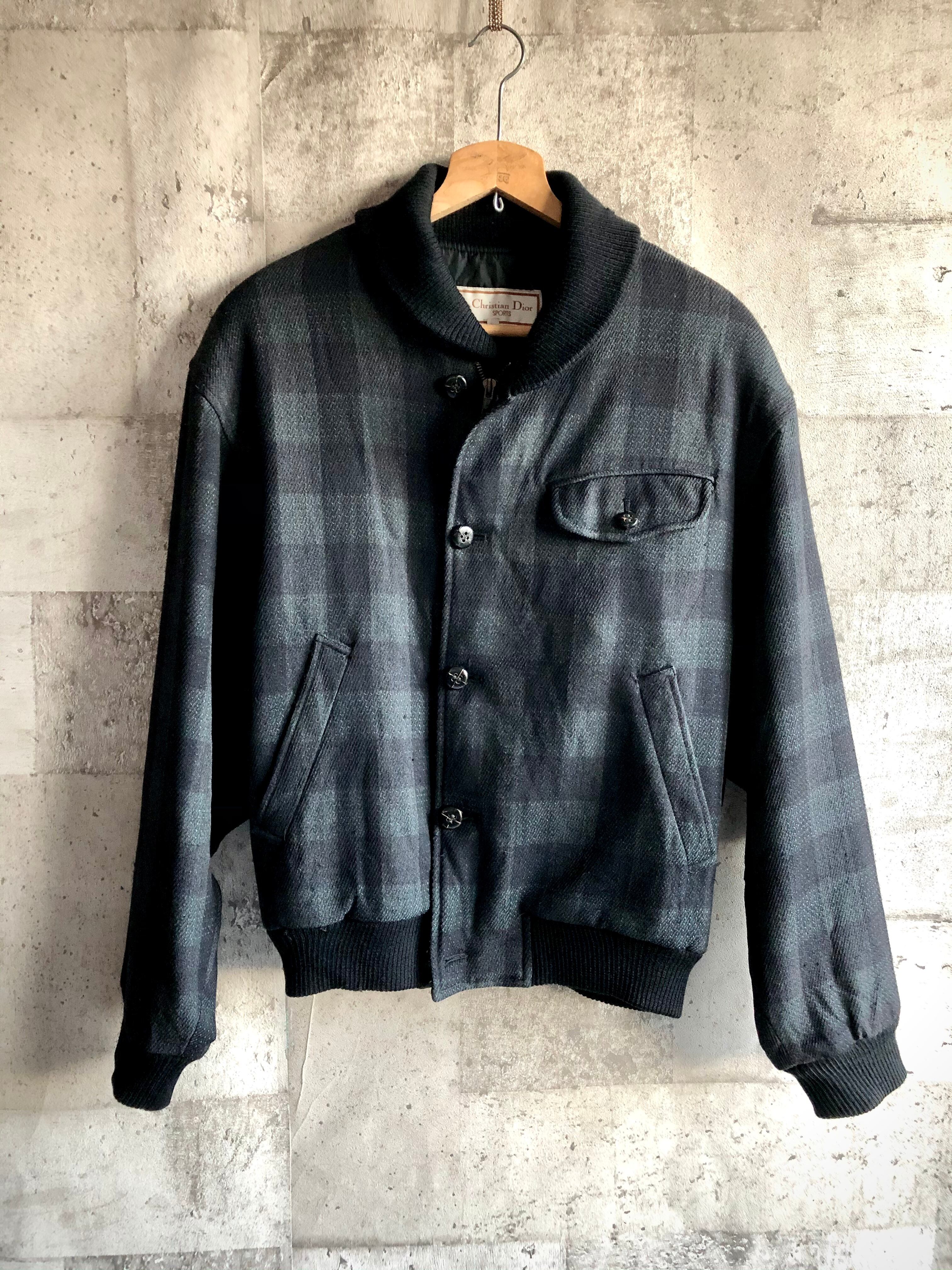 80s〜 VINTAGE Christian Dior SPORTS WOOL JACKET BLOUSON OLD クリスチャンディオール ショールカラー チェック柄 ウールジャケット ブルゾン オールド ビンテージ