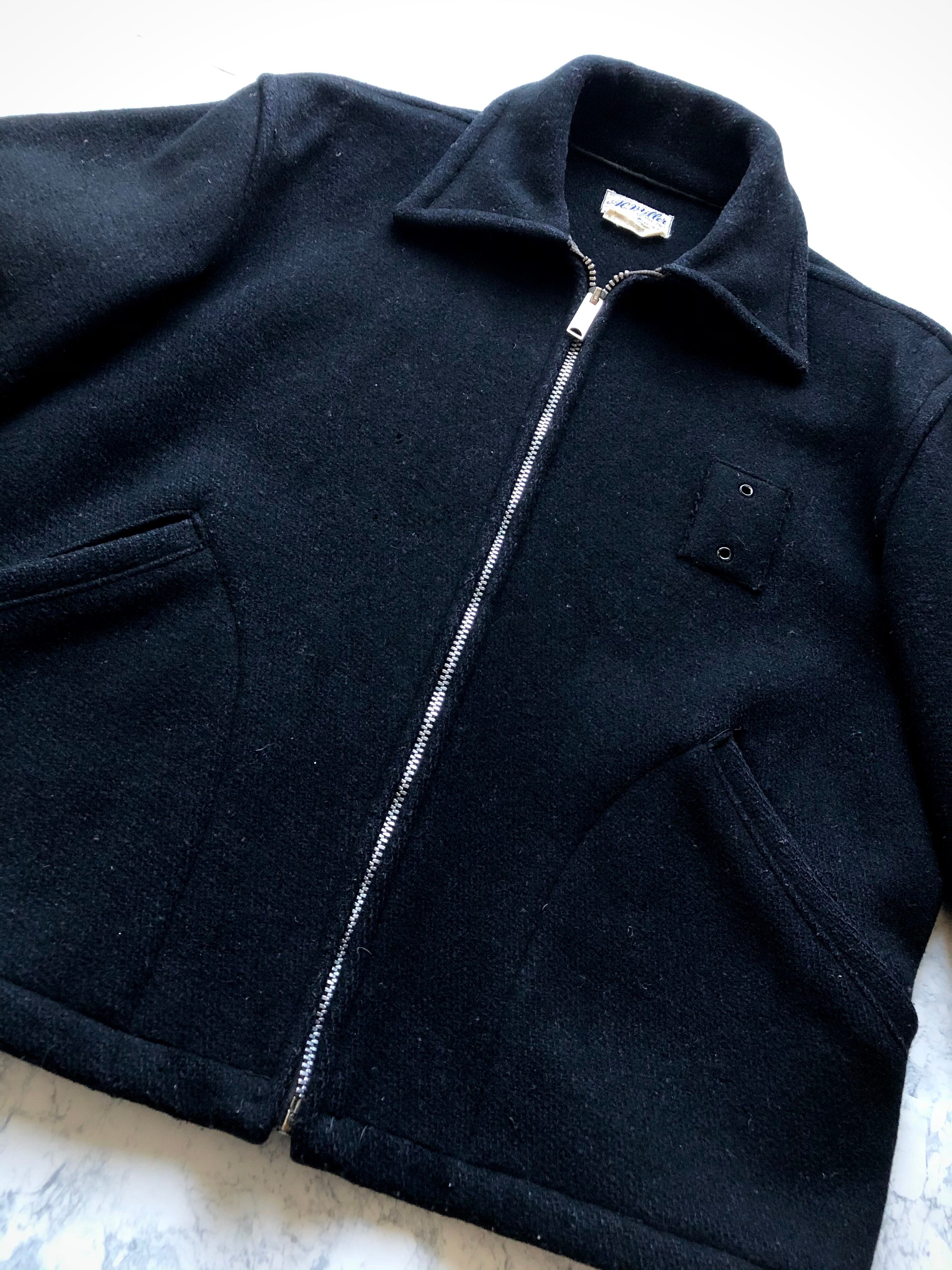 50s〜 Al Miller MELTON WOOL FULL ZIP SPORTS JACKET BLACK SOLID OLD VINTAGE 。