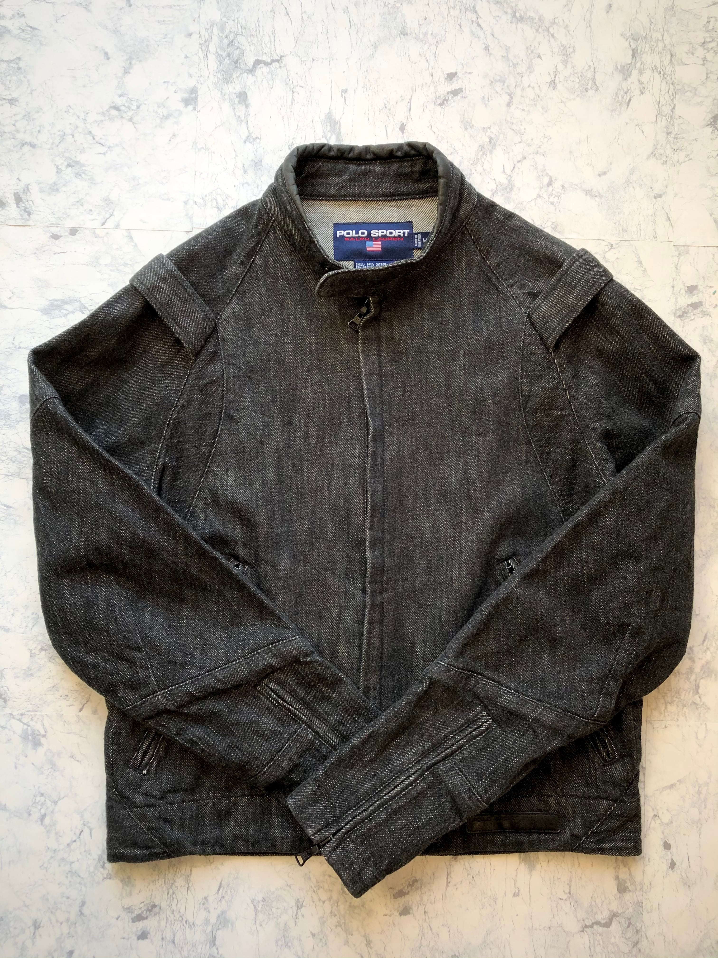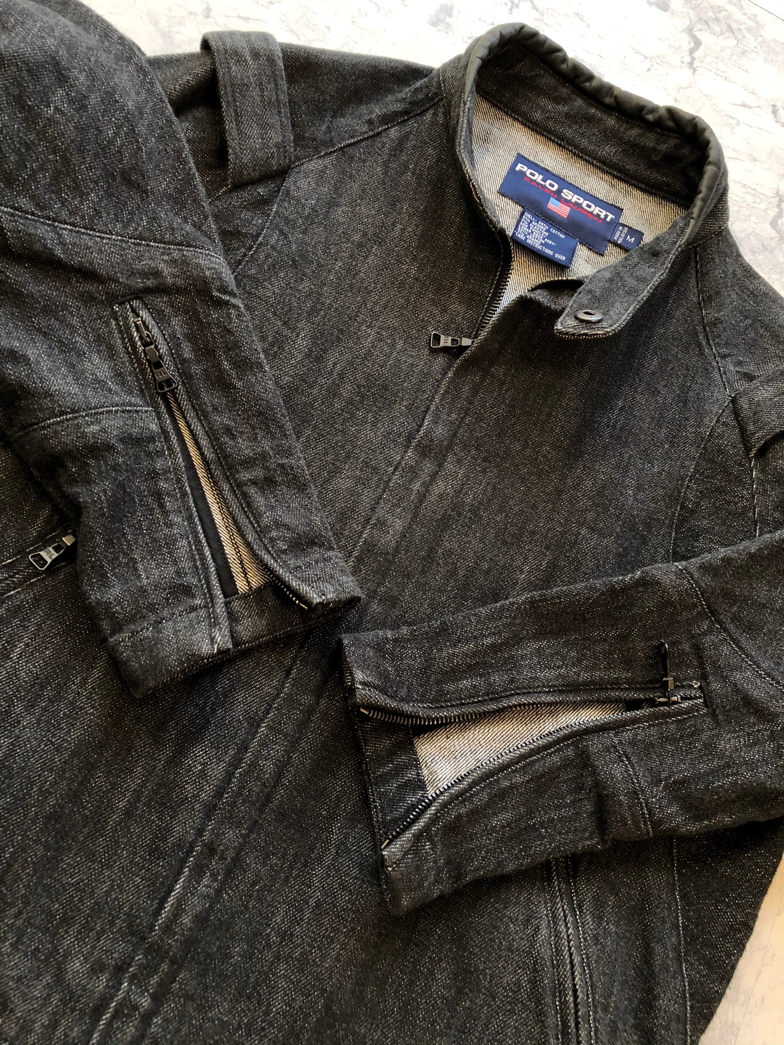 90s〜 POLO SPORT - RALPH LAUREN BLACK DENIM RIDERS JACKET OLD VINTAGE 。