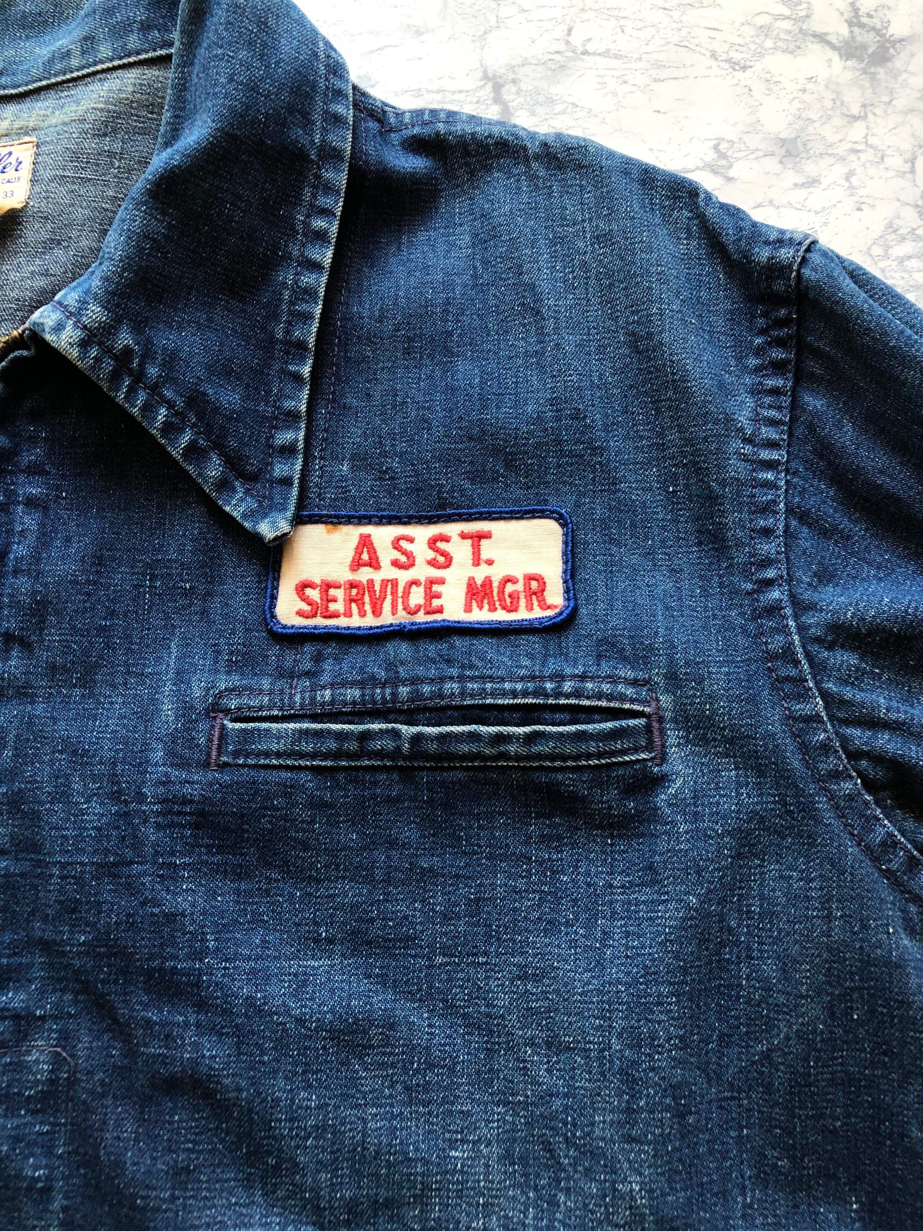 恐らく当時のオーナーがカスタムしたと思われるワッペン付きとなったビンテージらしい1枚で、同年のカバーオール等と比べても割とスッキリとした印象のデニムジャケット。