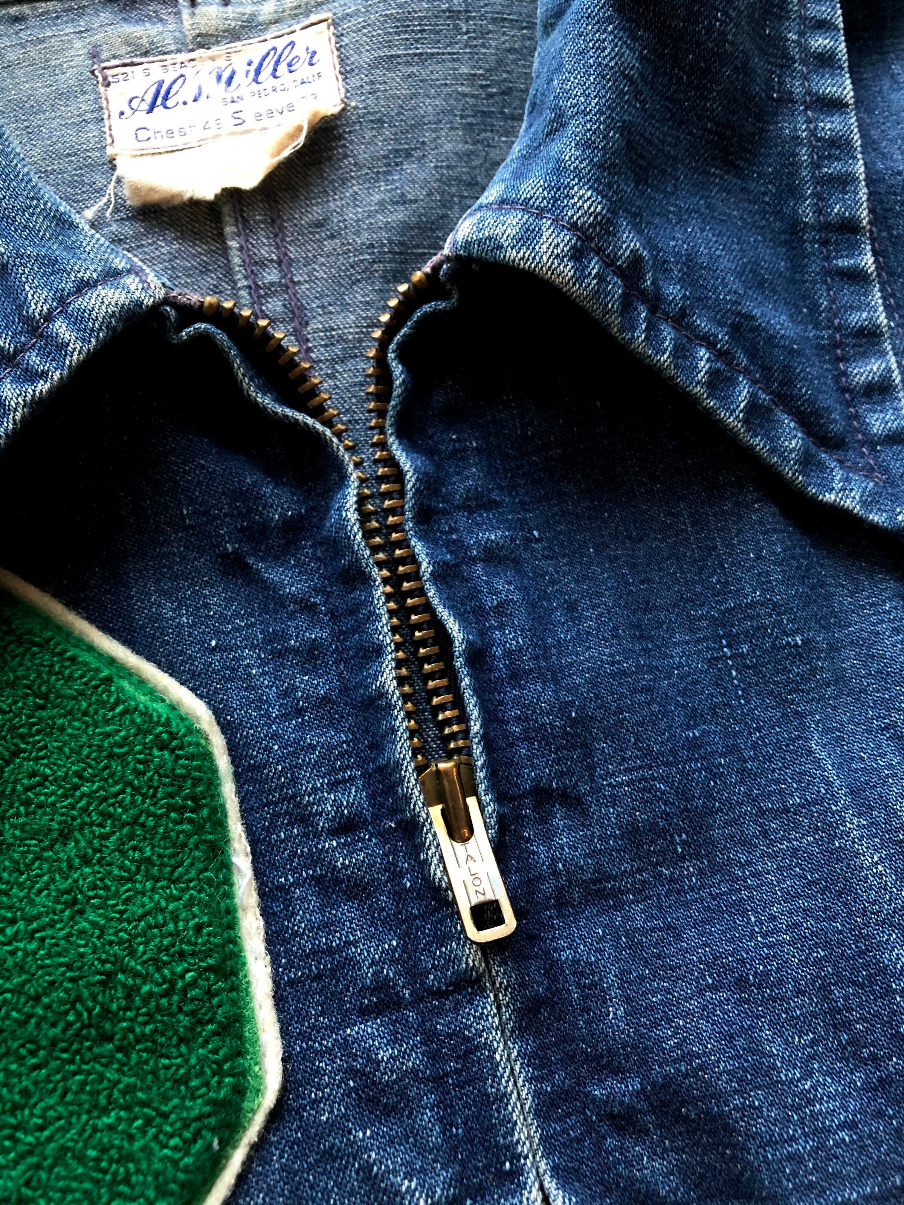 50s〜 Al.Miller USN-TYPE FULL ZIP DENIM JACKET CONE MILLS FABRIC OLD VINTAGE 。