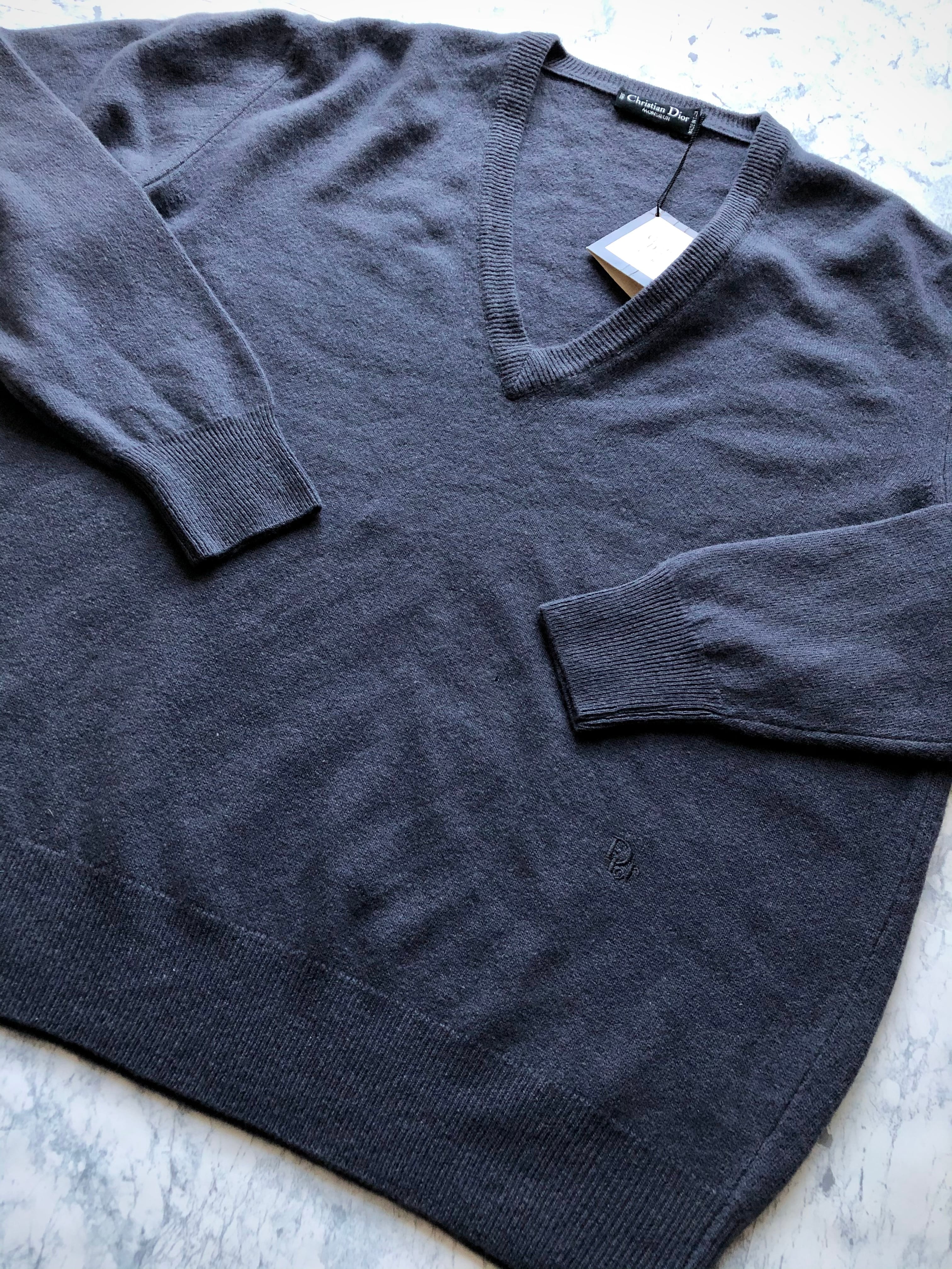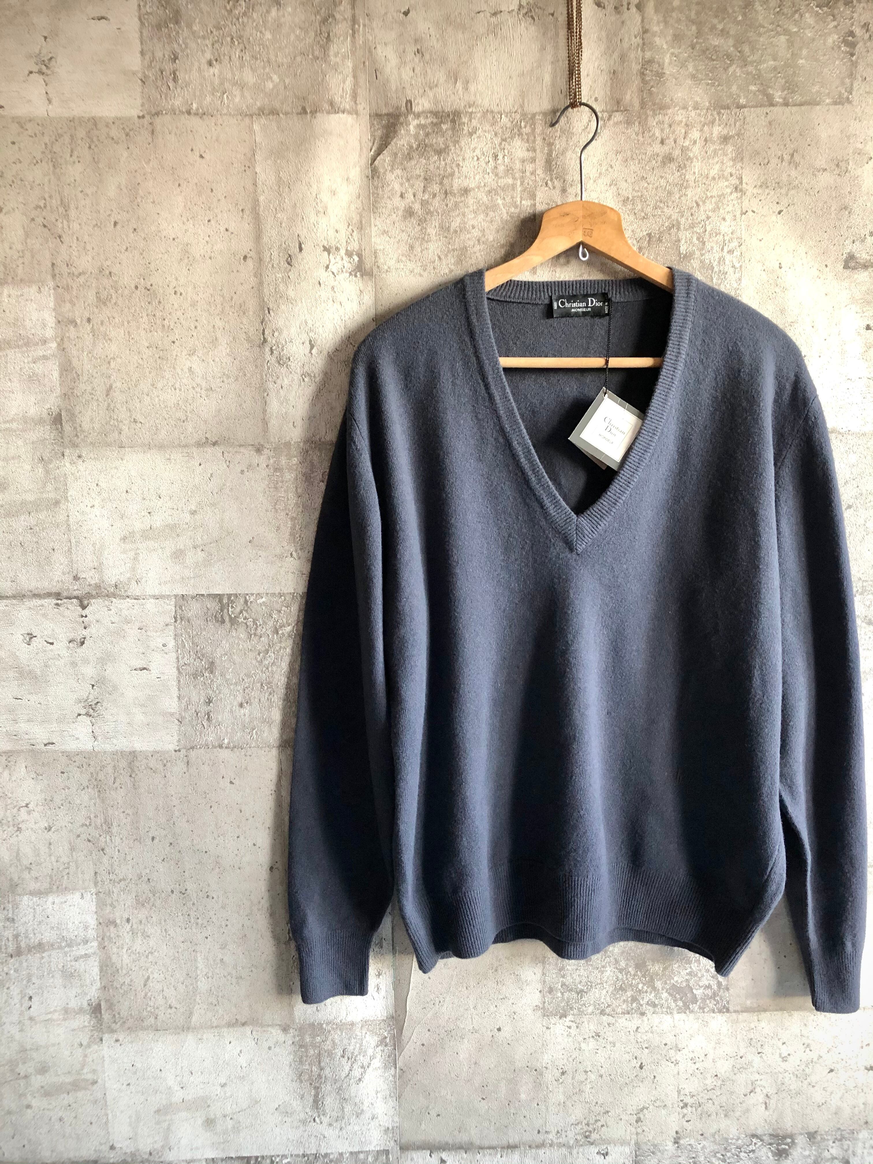 80s〜 DEAD STOCK Christian Dior MONSIEUR V/N WOOL KNIT ITALY MADE VINTAGE デッドストック クリスチャンディオール イタリア製 Vネック ウールニット オールド ビンテージ