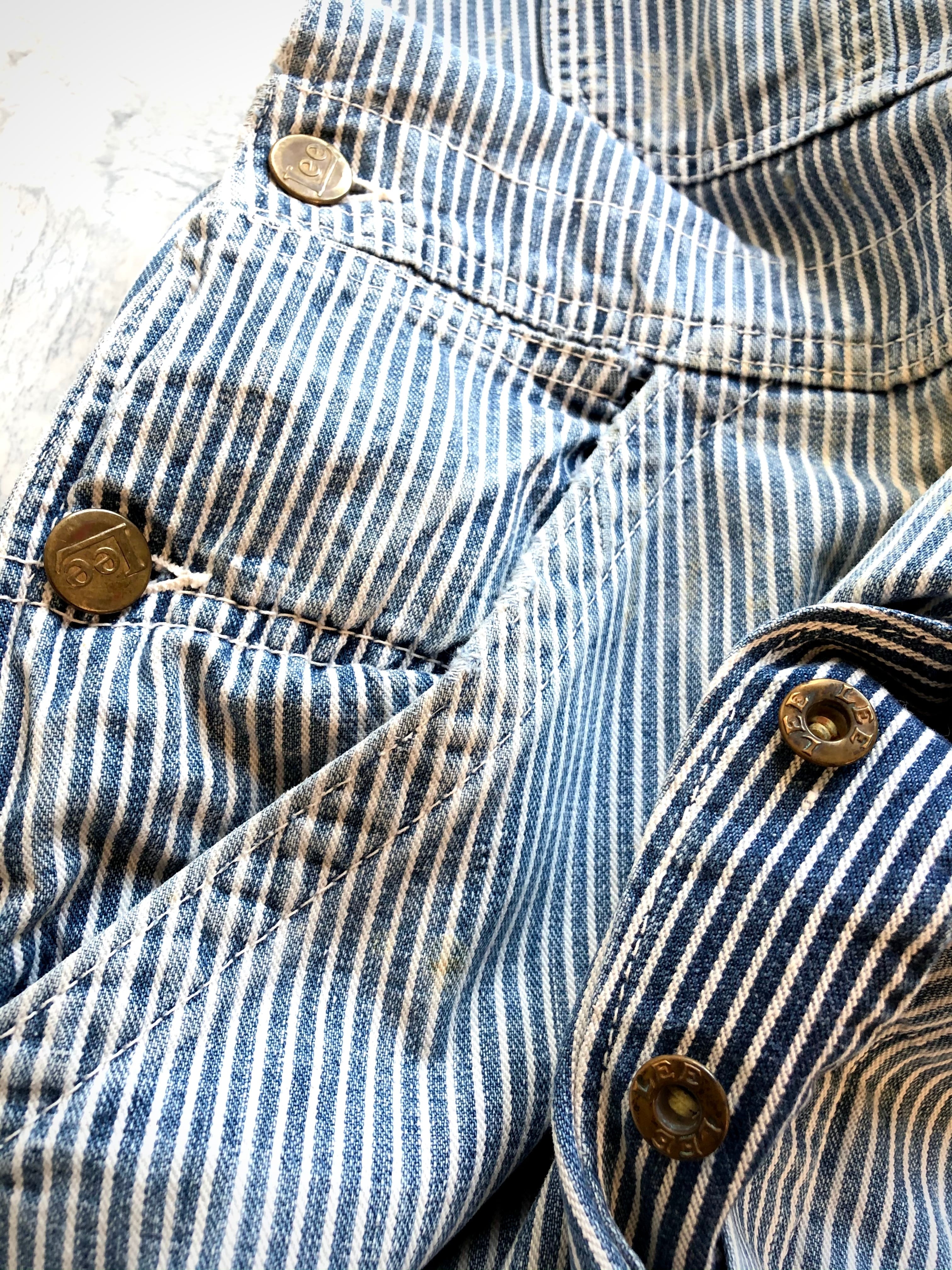 • 1950s〜 LEE 98-SB HICKORY STRIPE DENIM OVERALLS OLD USA VINTAGE 。
