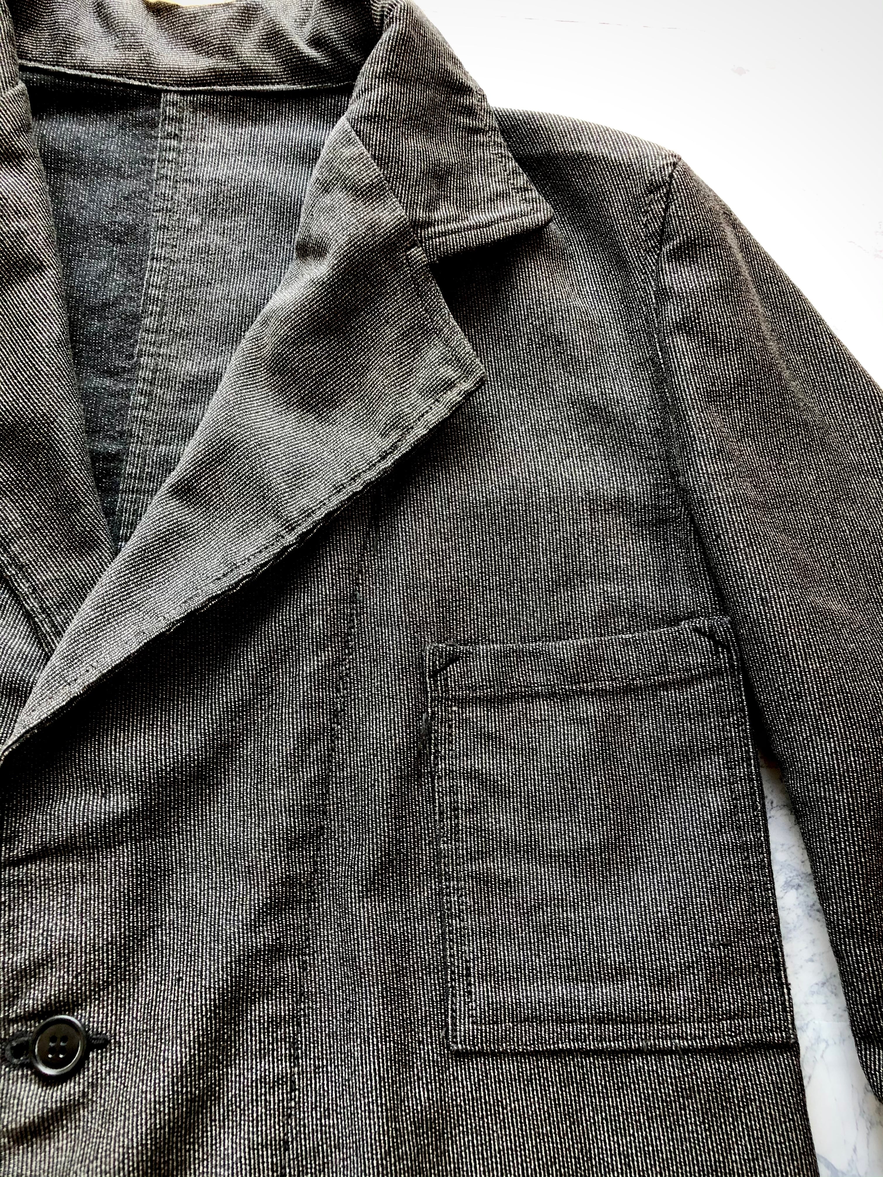PINSTRIPE BLACK MOLESKIN WORK JACKET / PRISONER MODEL OLD VINTAGE 。