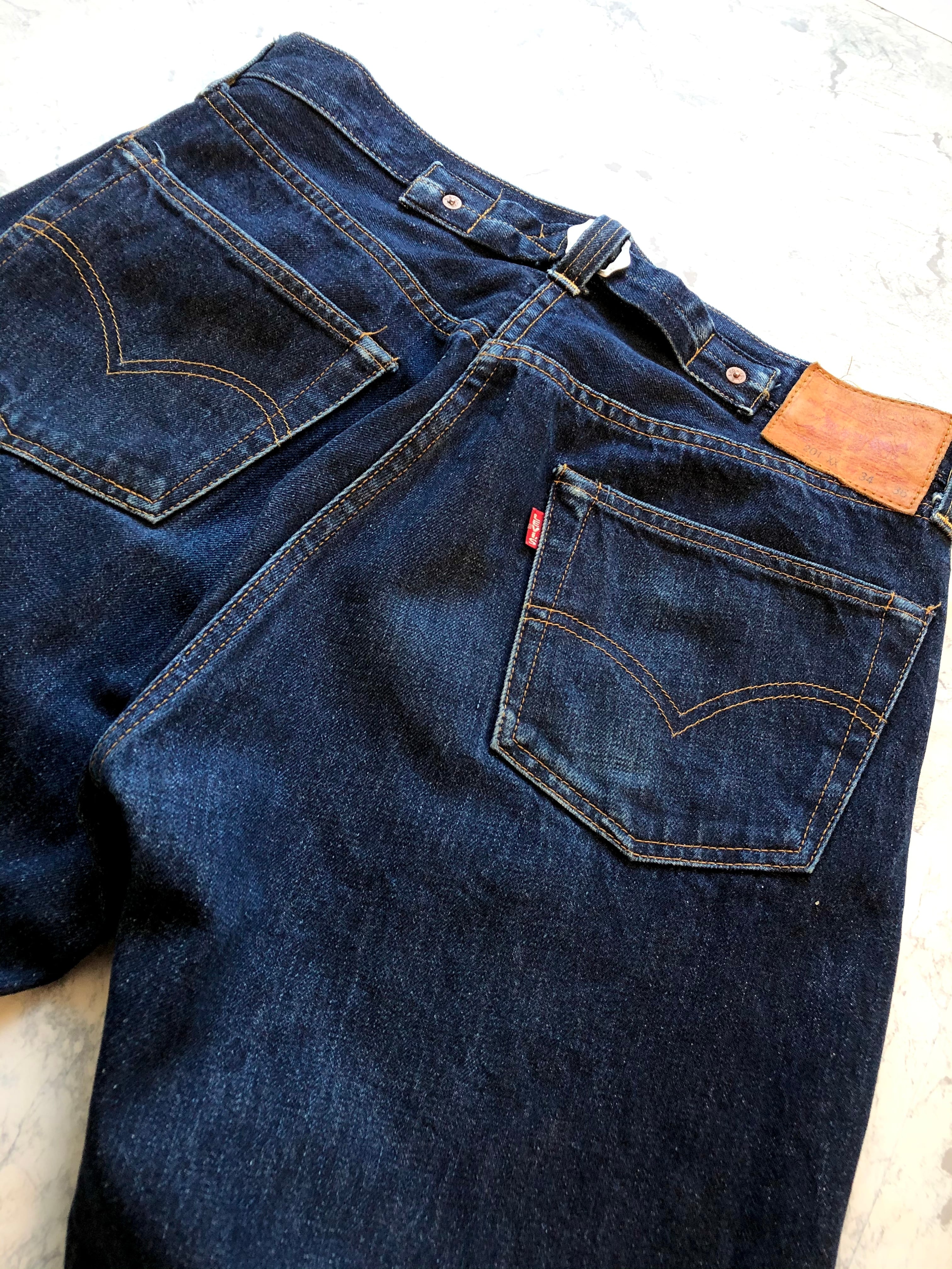 90s MADE IN USA LEVI’S 1937s MODEL 201-XX LEATHER PATCH Big-E INDIGO DENIM OLD VINTAGE 。