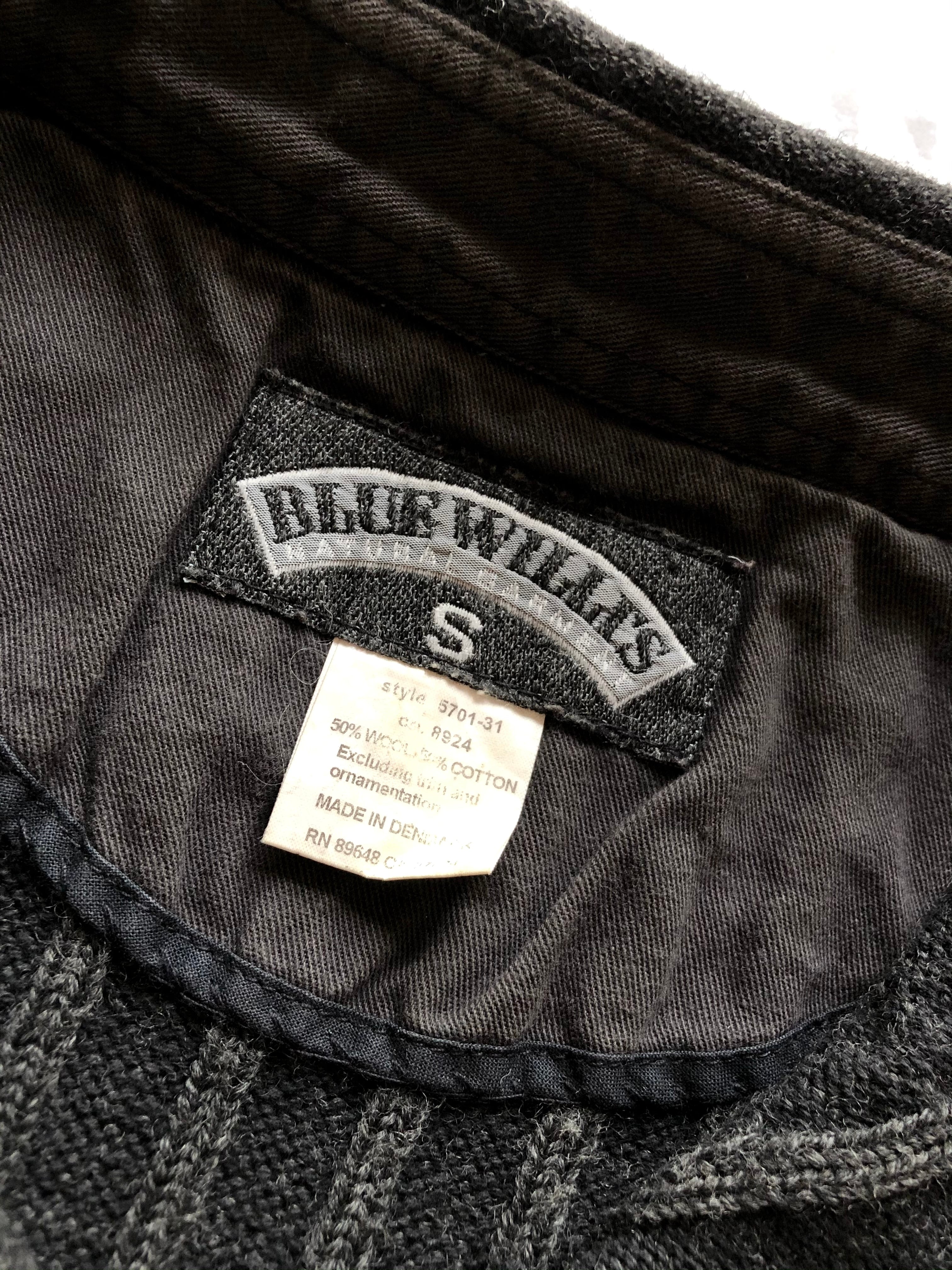 90s MADE IN DENMARK BLUE WILLI’S HALF SNAP CABLE KNIT BLACK GARMENT DYED OLD VINTAGE ブルーウィリーズ コットン / ウール ケーブルニット オールド ビンテージ