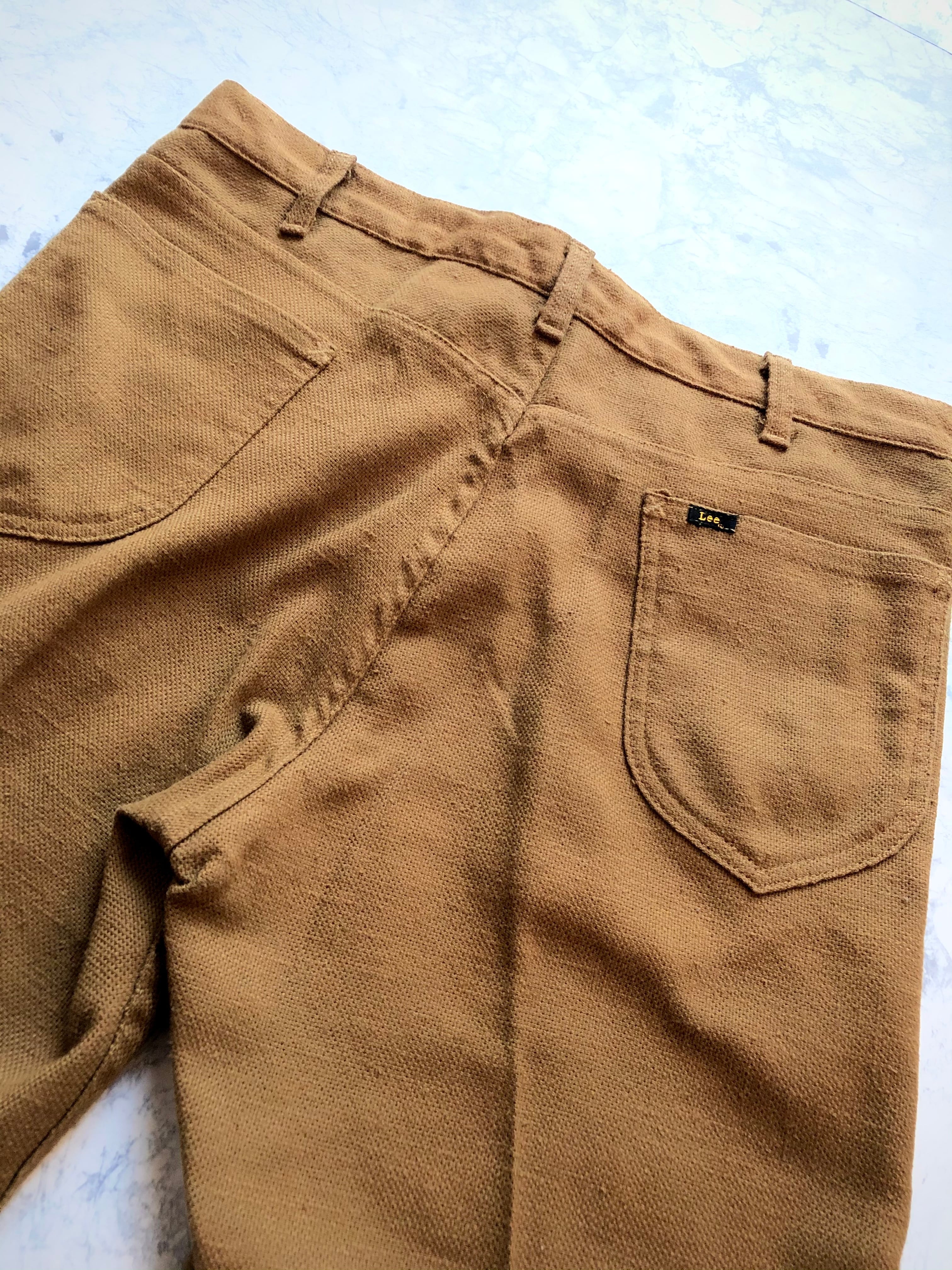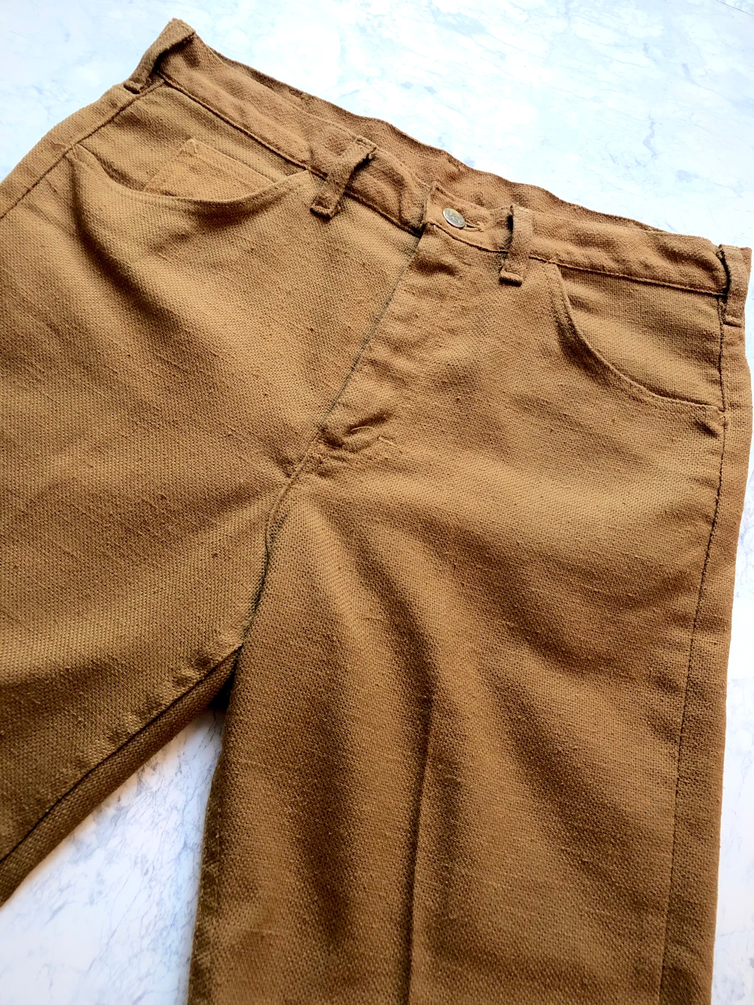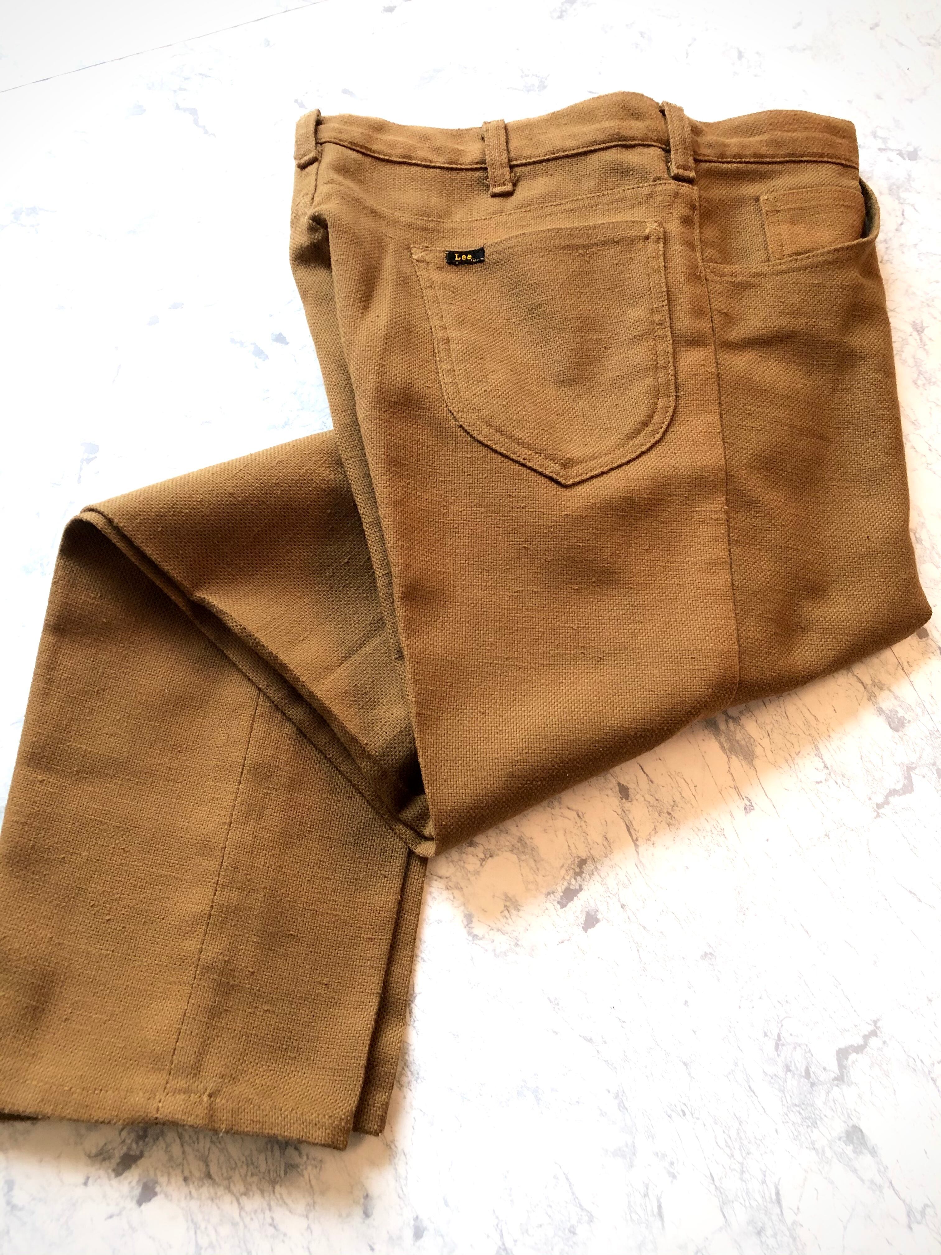 60年代のVINTAGEとは思えないほど綺麗な曲線を描くスリムテーパードシルエットにアメリカらしい目の粗いホップサック生地が絶妙にマッチし、ゴールドブラウンの珍しいカラーリングも相俟って非常に雰囲気の良い仕上がりとなっております。