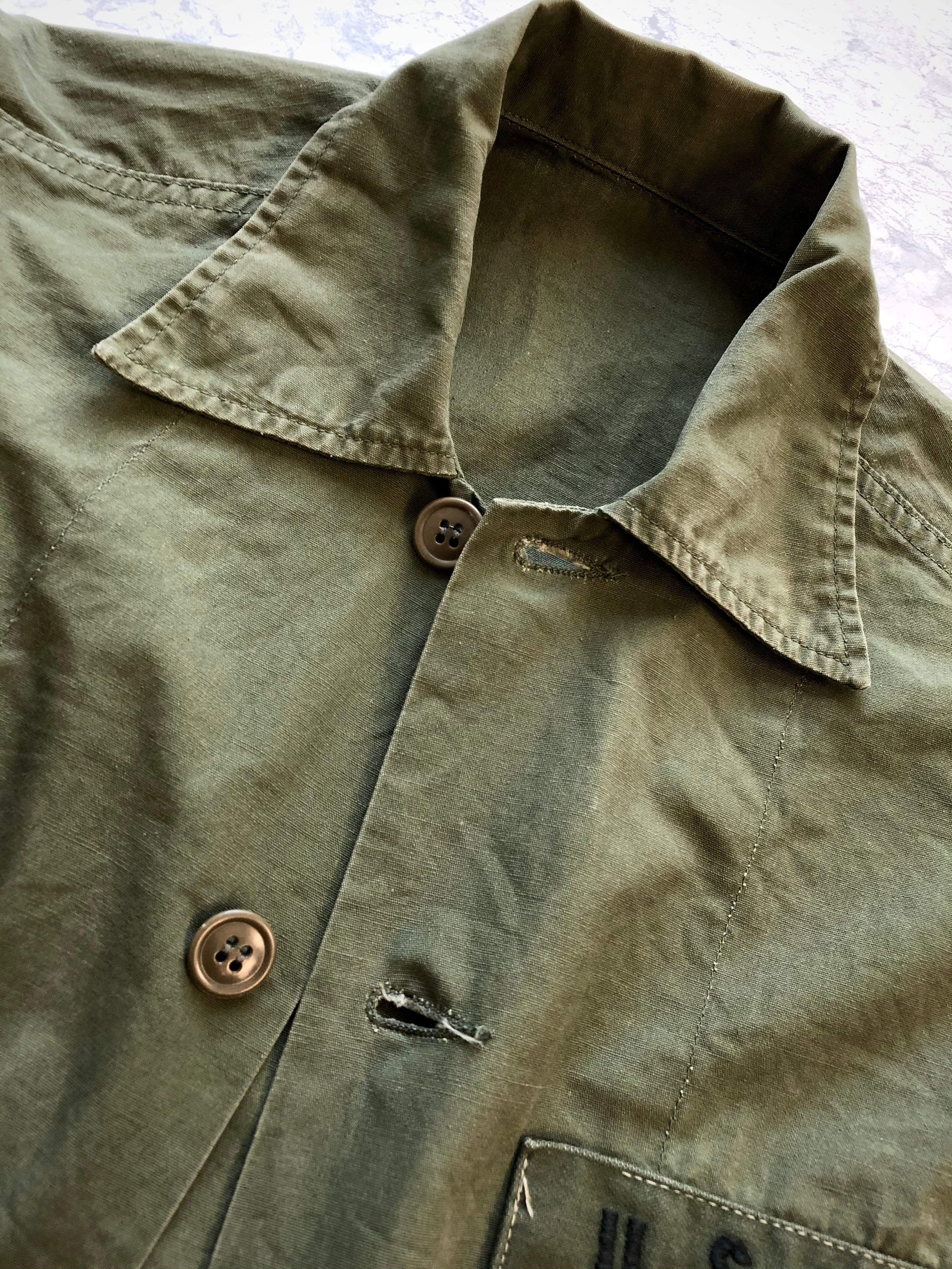 1960年代〜,ベトナム戦争時において亜熱帯地域用として採用されていたCOTTON-POPLIN素材の“LOUIS ARONOFF”社製ファティーグジャケット。