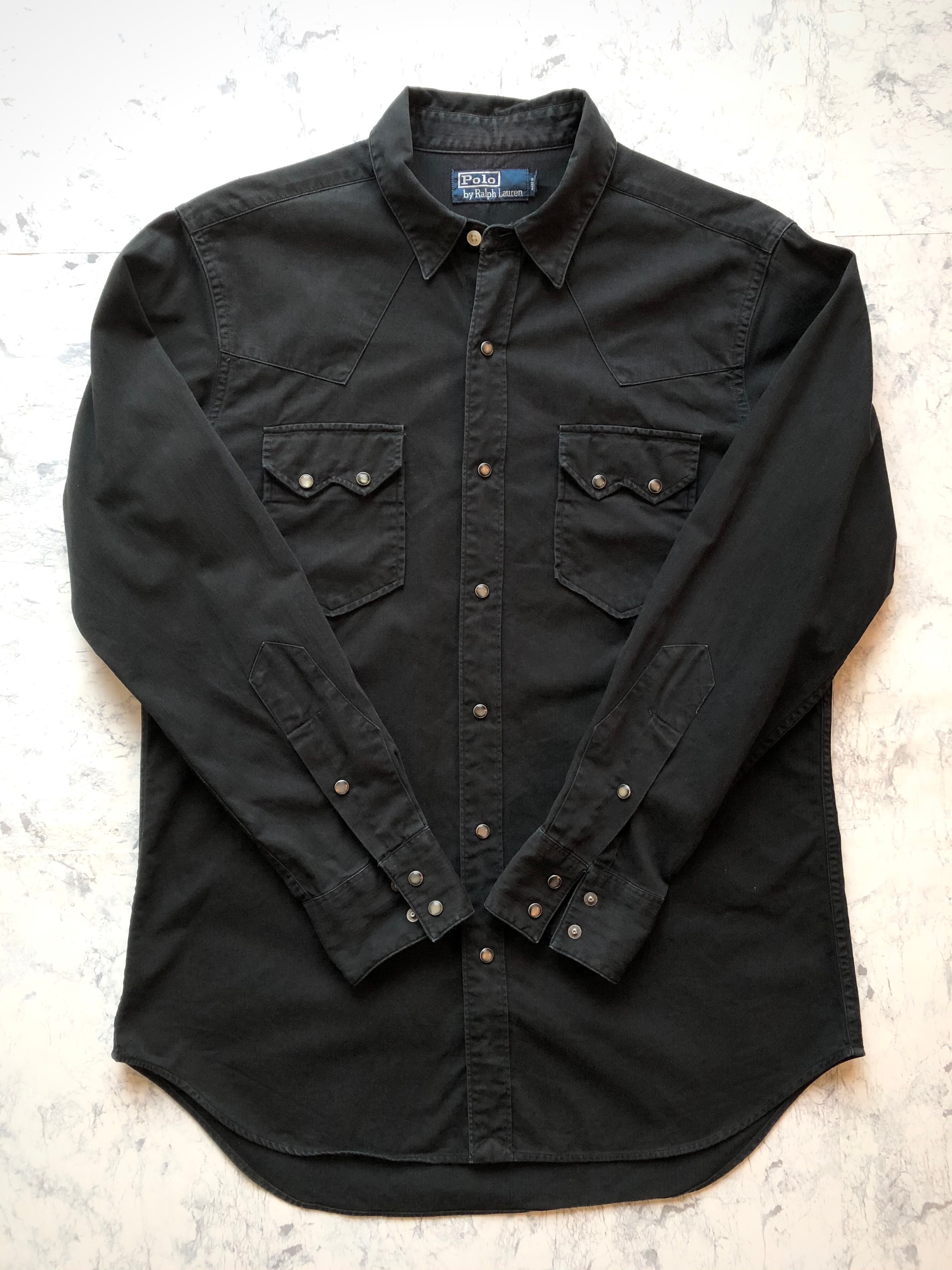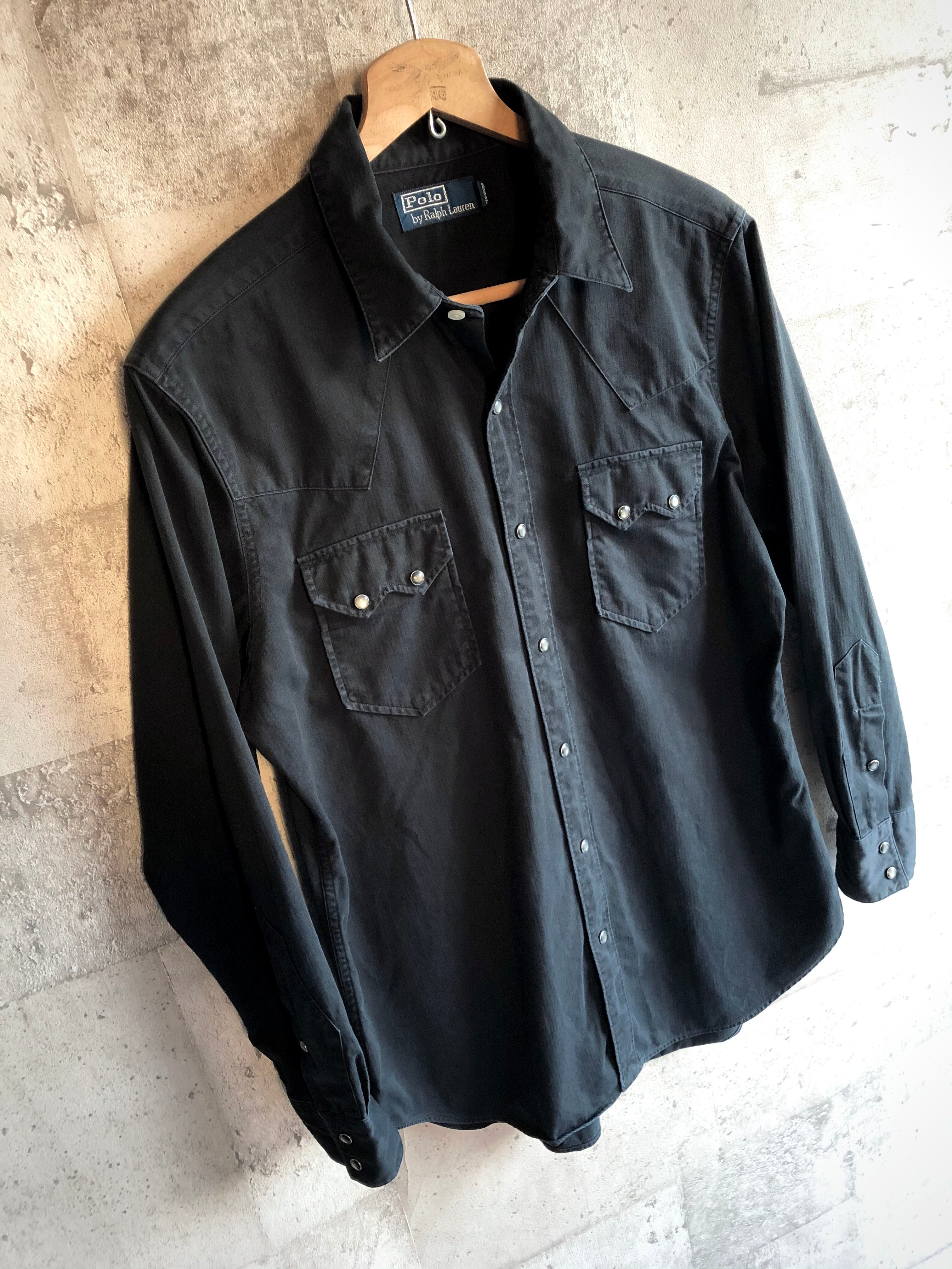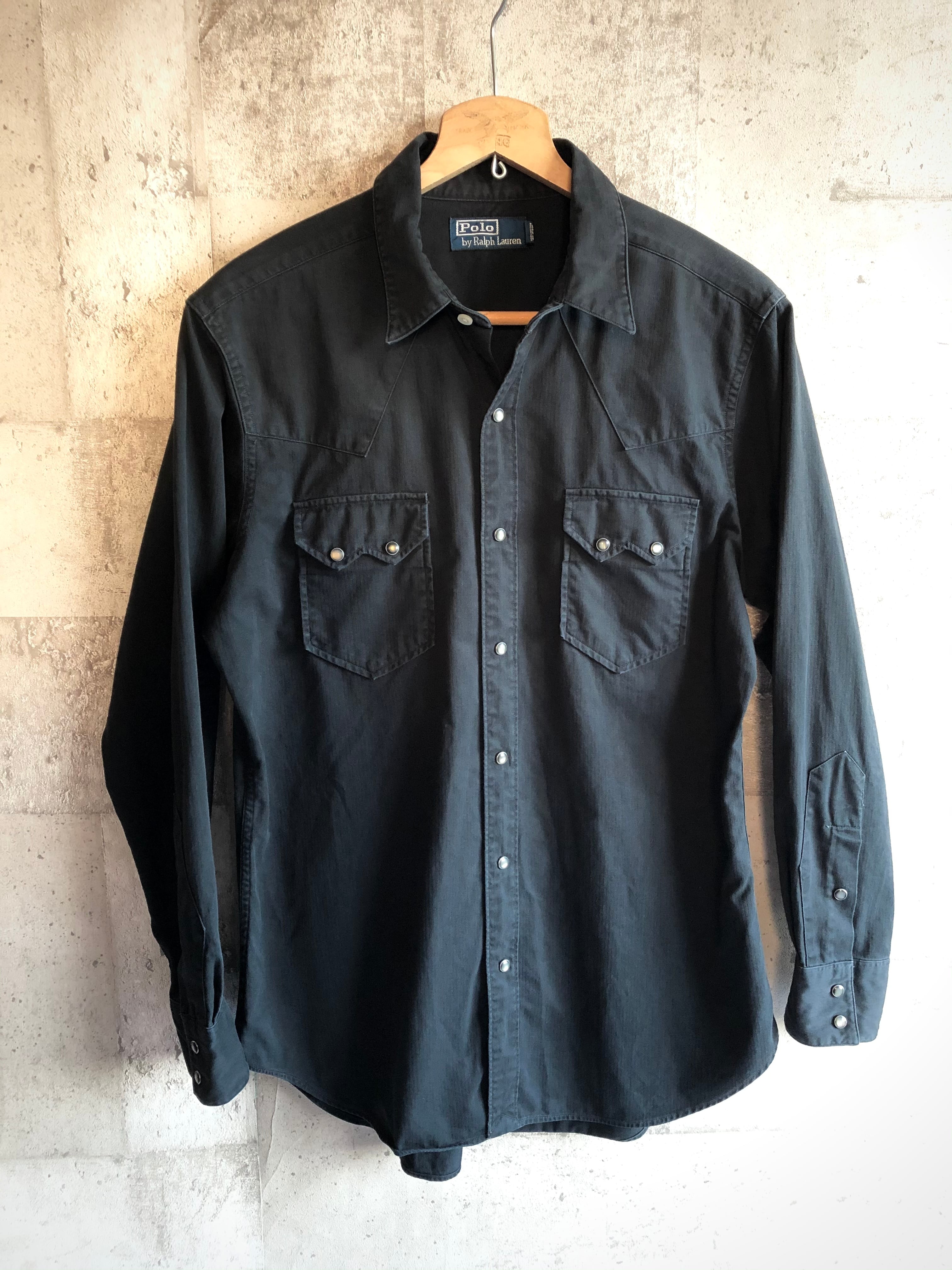 POLO RALPH LAUREN HBT WESTERN SHIRT BLACK SOLID OLD ラルフローレン ヘリンボーンツイル ウエスタンシャツ 黒 ブラック 無地 オールド モデル