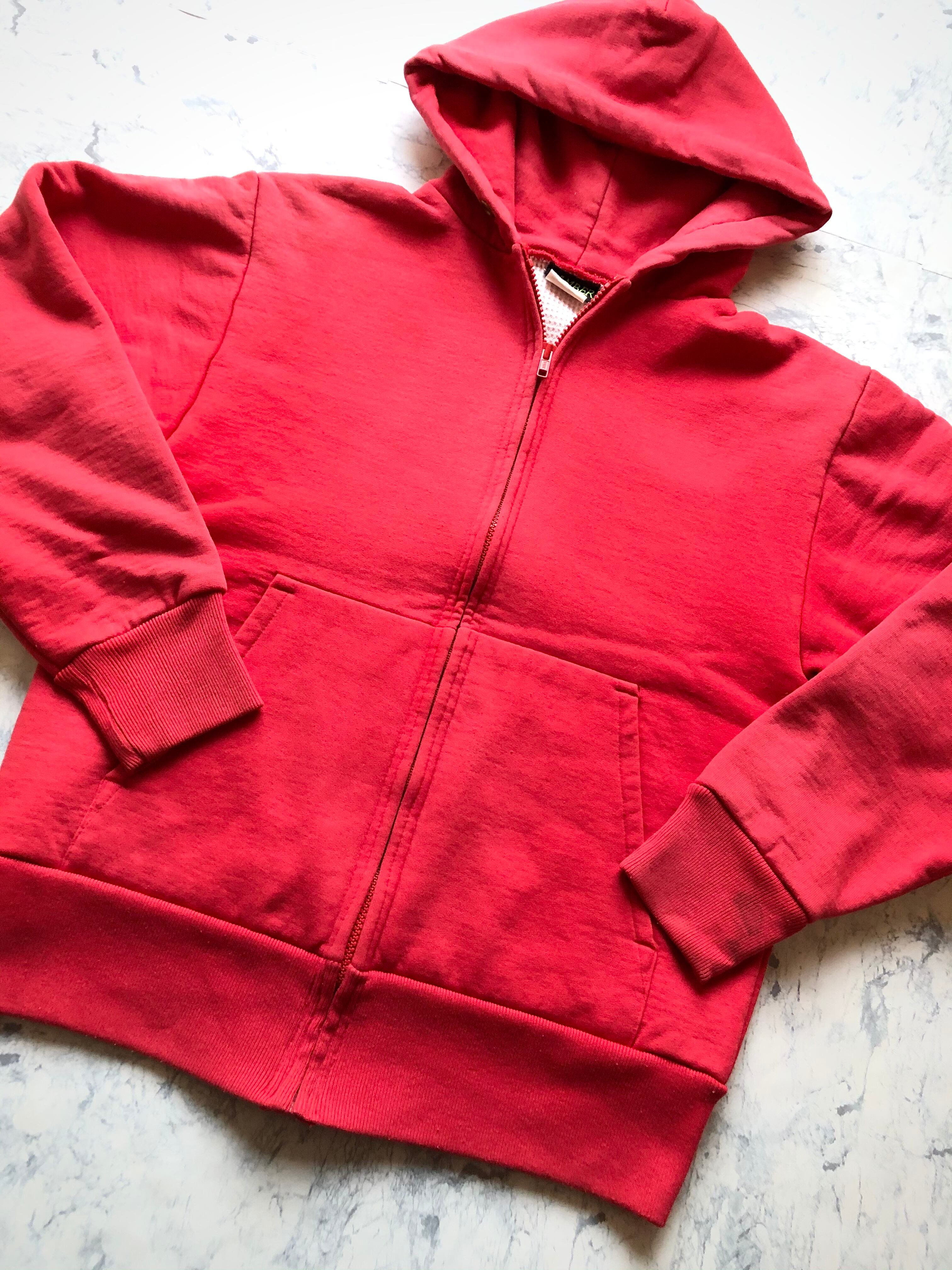 90s〜 MADE IN USA “CAMBER” W-FACE ZIP-UP SWEAT PARKA RED SOLID OLD VINTAGE。