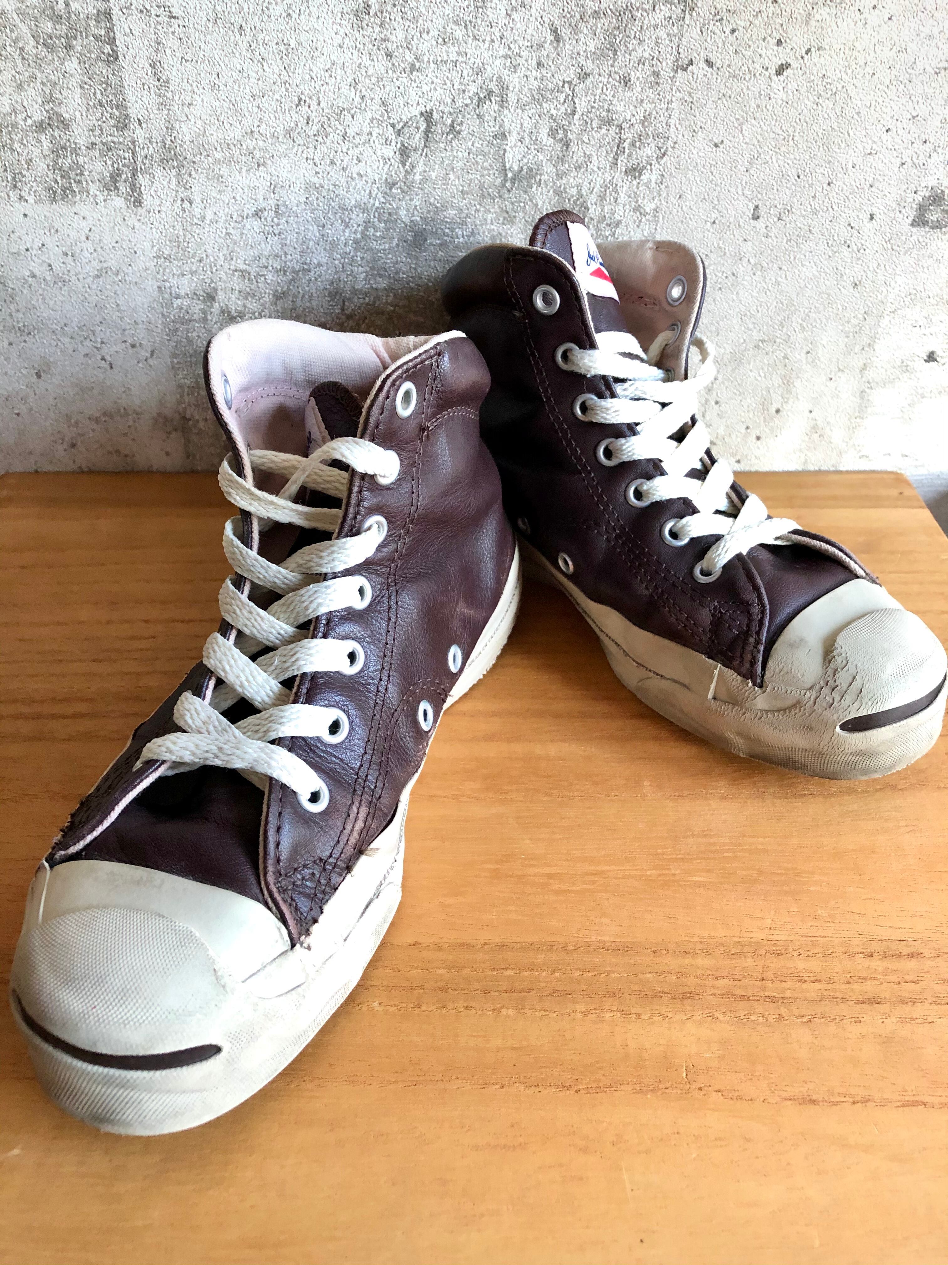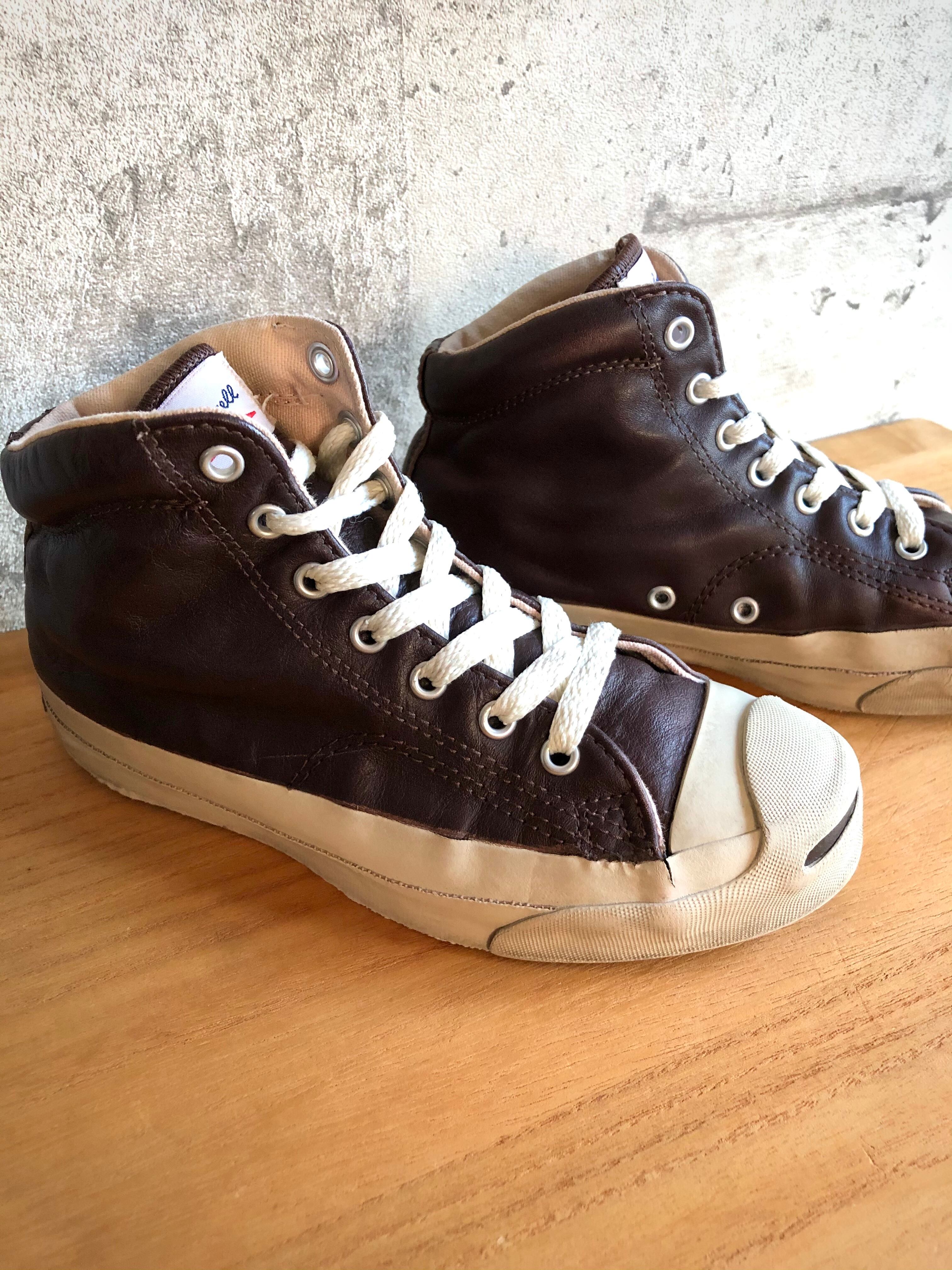 1990s〜 CONVERSE JACK PURCELL LEATHER HI BROWN MADE IN USA OLD VINTAGE 。