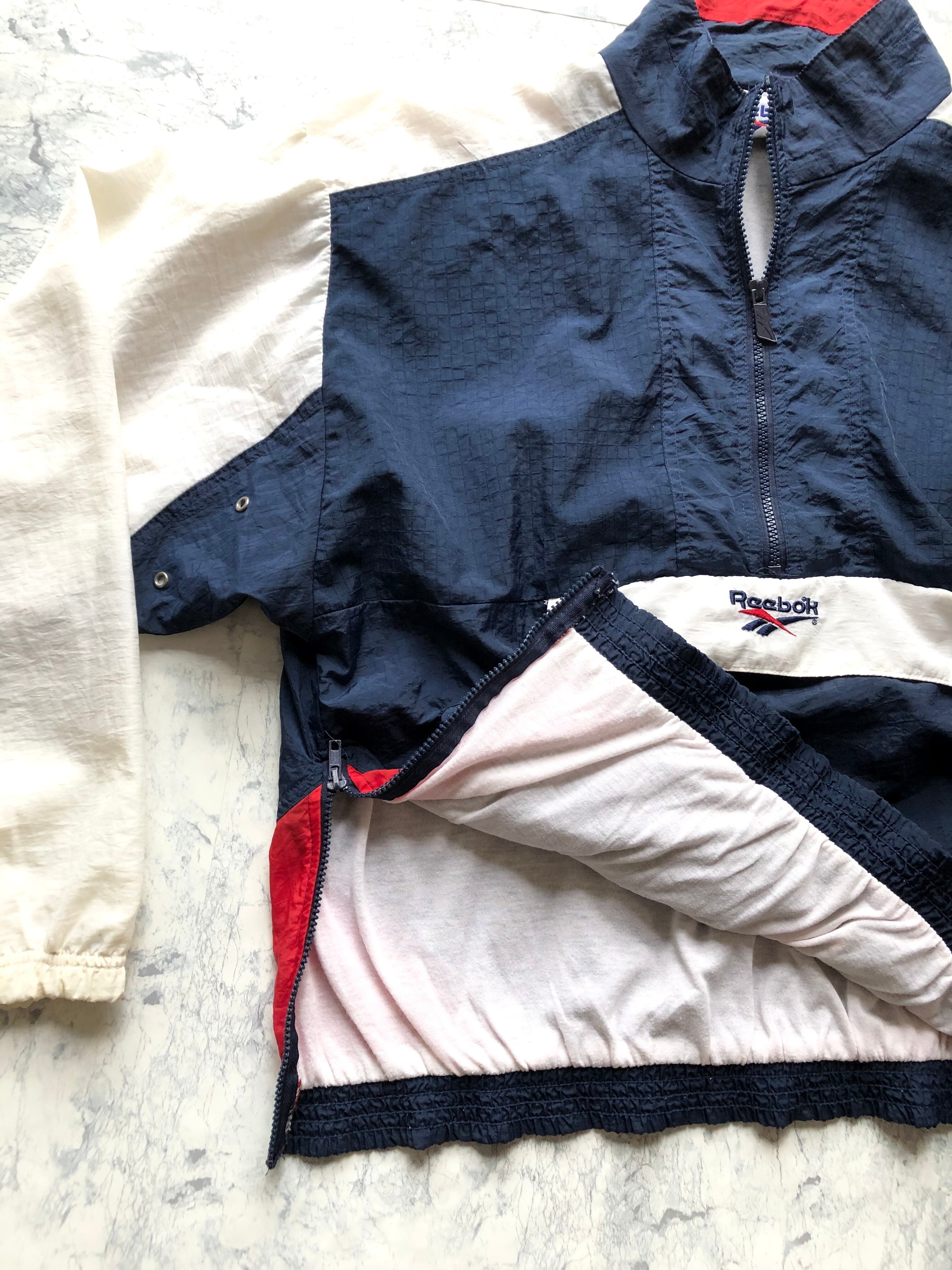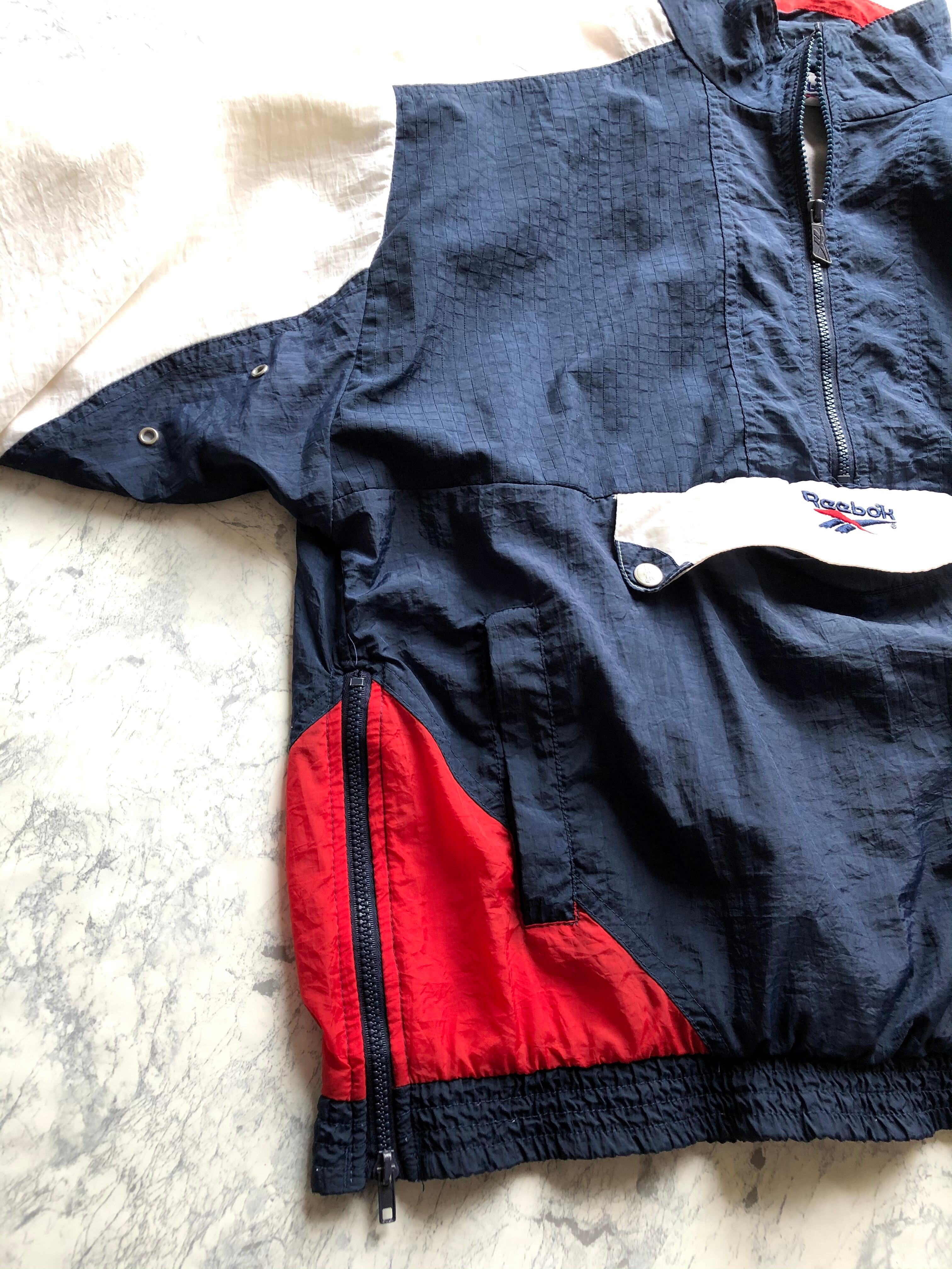 90s〜 REEBOK - P/O HALF ZIP NYLON JACKET TRICOLOR OLD VINTAGE 。