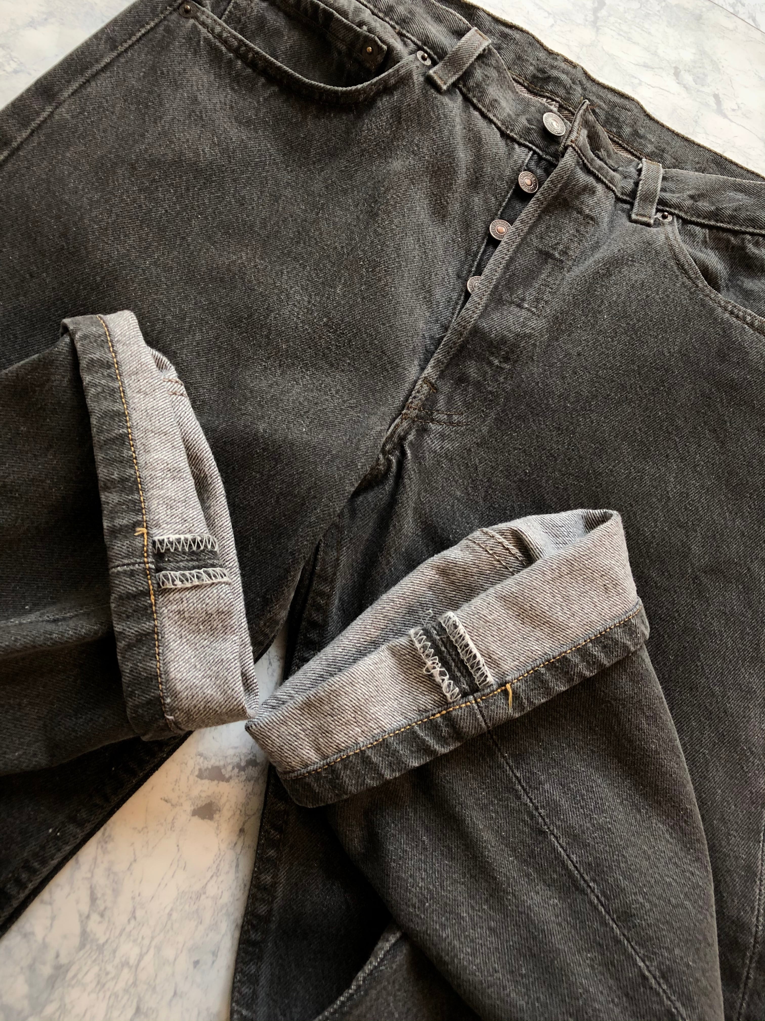 歴代の数ある501でも所謂最終型のUSA製モデルとして親しまれている80年代後期の501ブラックデニムジーンズ、生地は通常のインディゴデニムと同じく色糸 × 未晒糸となった巷で話題の先染めブラックバージョンで、赤耳モデルでお馴染み524刻印.エルパソ工場製造の希少な501になります。