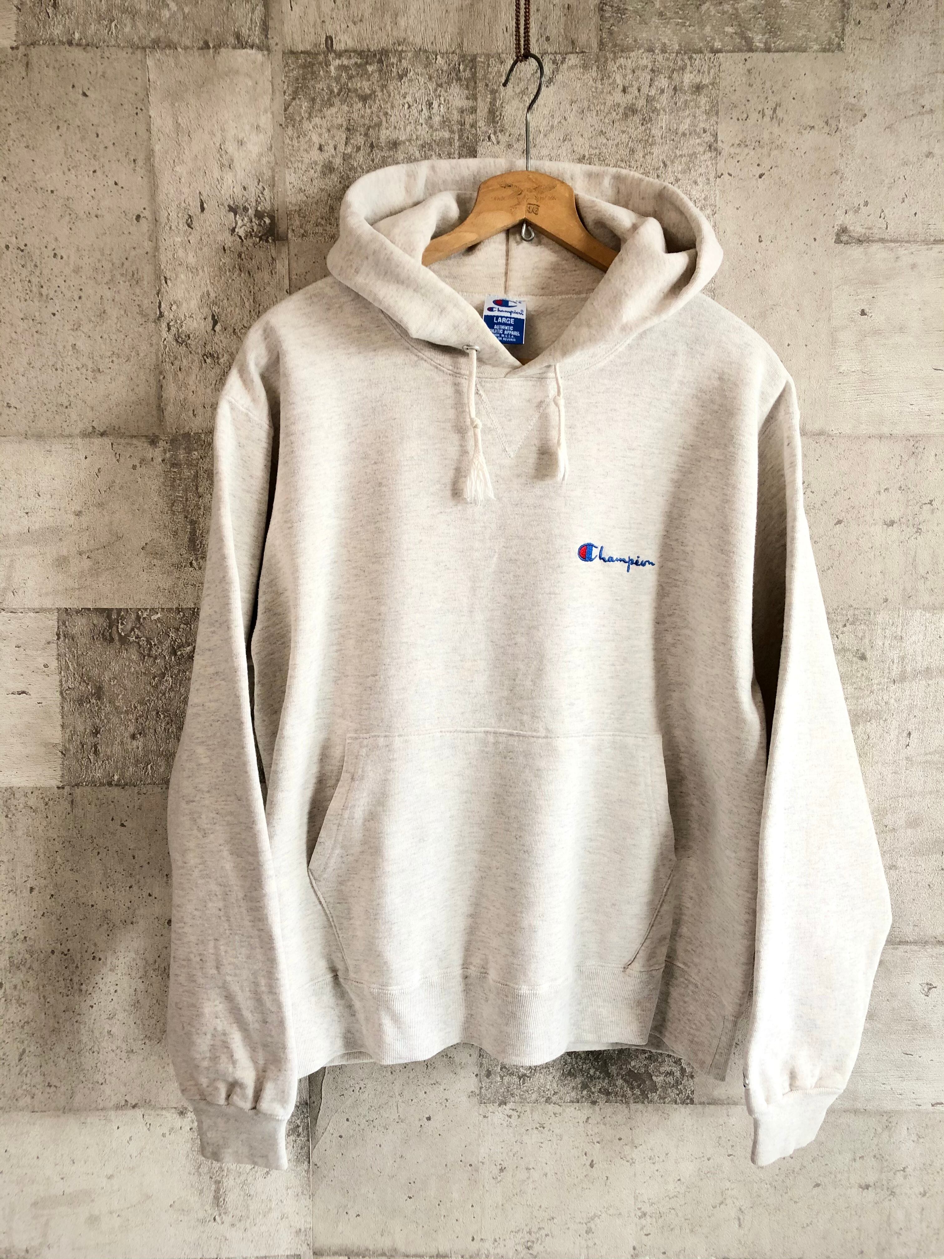 1990s〜 MADE IN USA “CHAMPION” P/O SWEAT PARKA FRONT-V OATMEAL OLD VINTAGE 。