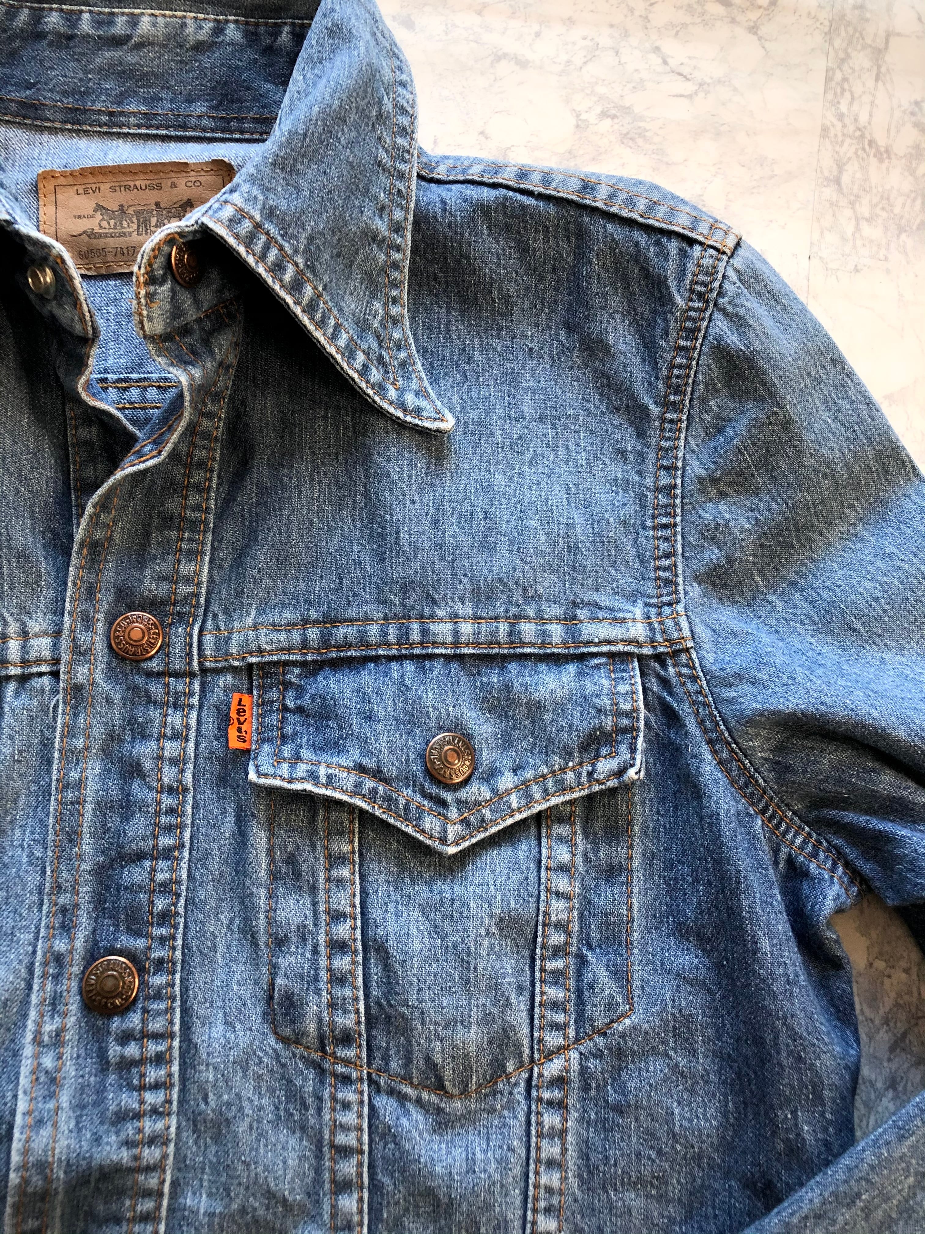 70s〜 LEVI’S 60505 DENIM SHIRT SNAP-TYPE ORANGE TAB OLD VINTAGE 。