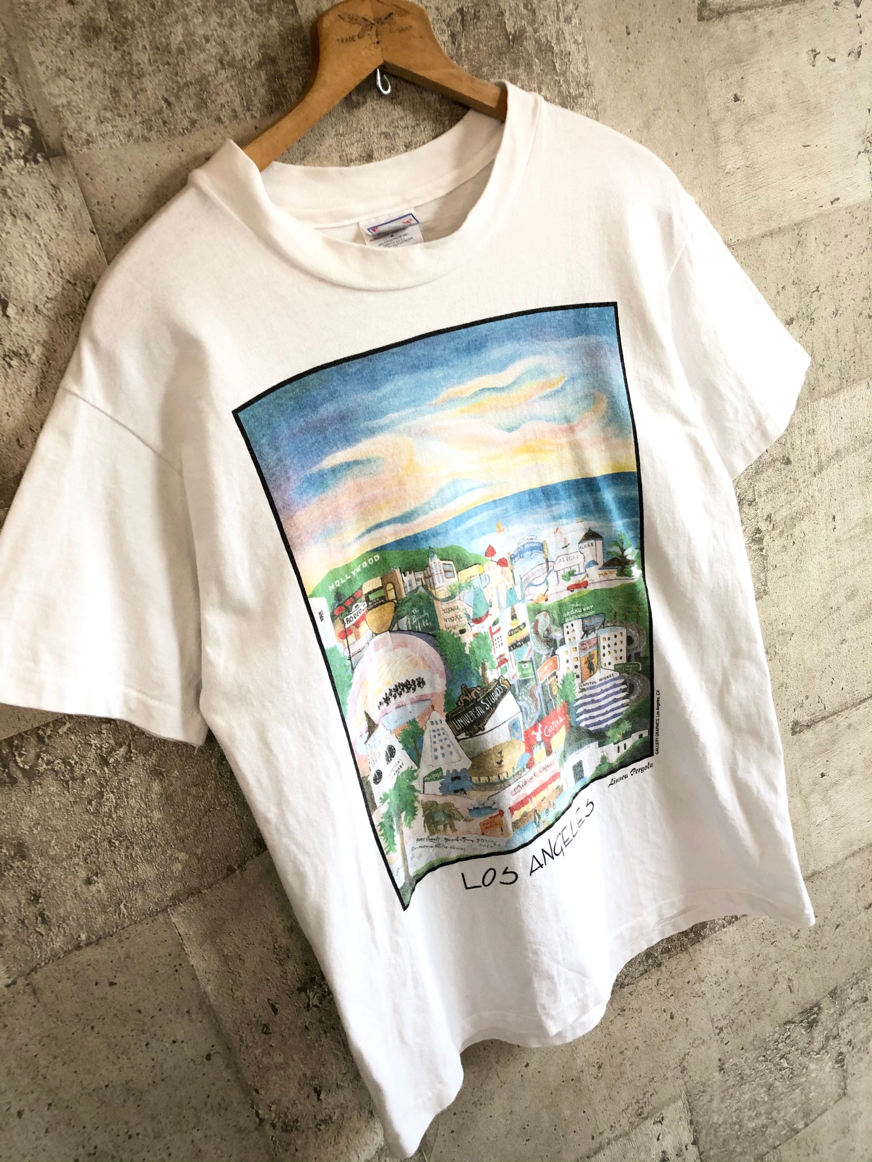 彼女が作成したアート作品“LOS ANGELS” を落とし込んだ珍しいプリントTシャツ、HANES-USA製ボディを用いた90s〜と思われる当時の珍しい1枚。