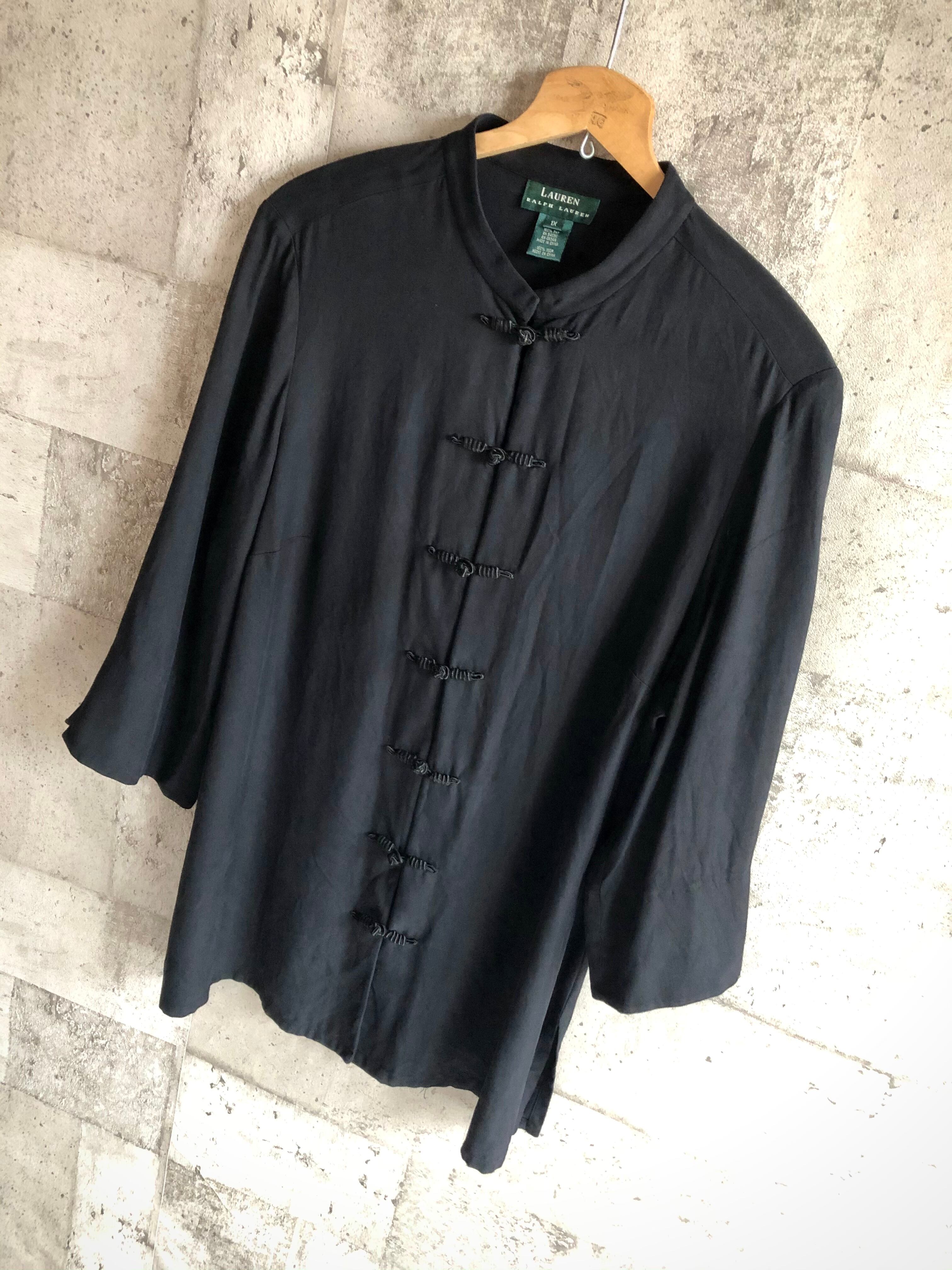90s〜 LAUREN - RALPH LAUREN / SILK 100% CHINA SHIRT BLACK SOLID OLD VINTAGE ラルフローレン シルク100% チャイナシャツ ブラック オールド ビンテージ
