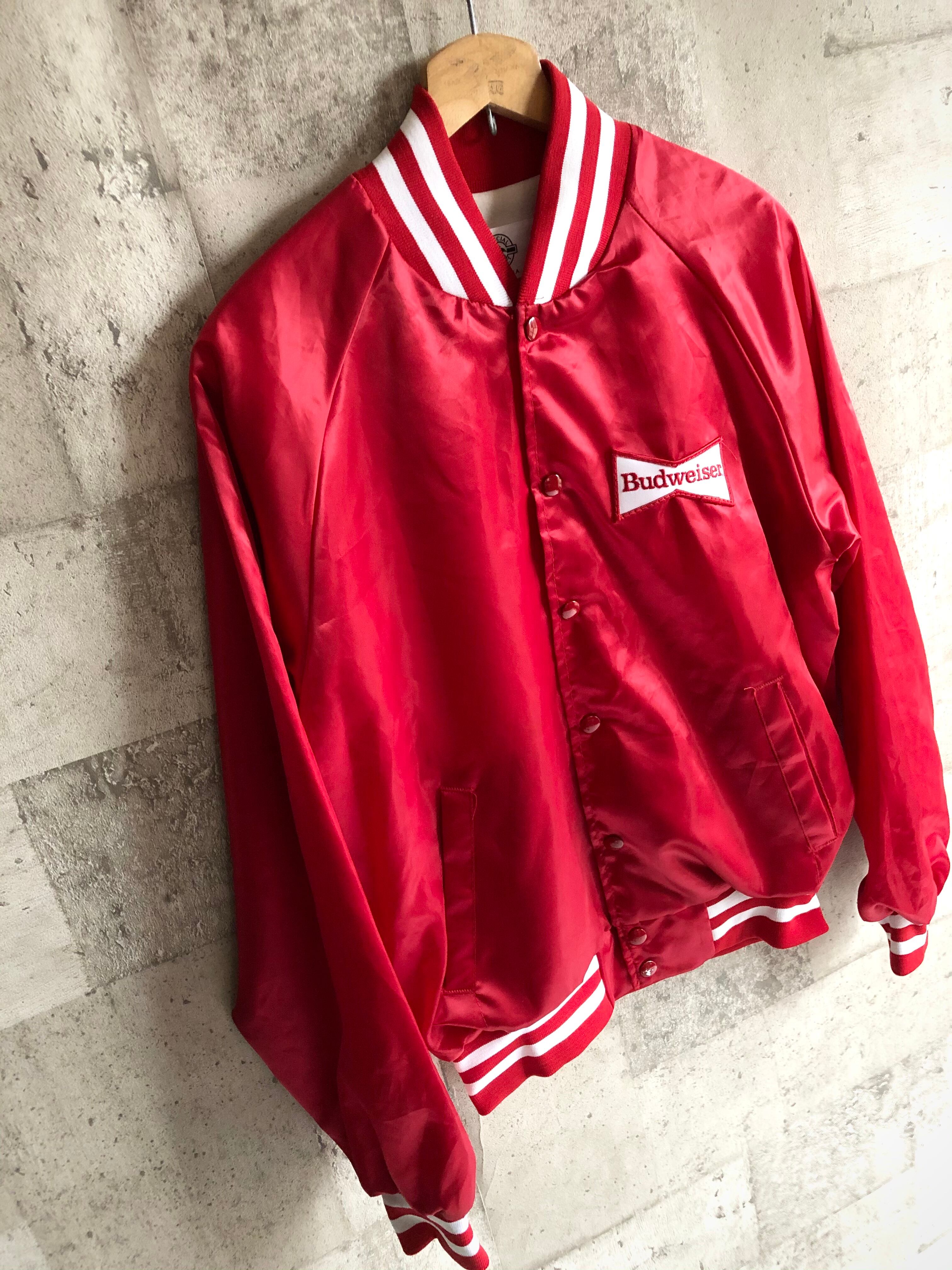 1980s-90s MADE IN USA “BUDWEISER” NYLON/SATIN BLOUSON JACKET OLD VINTAGE 。