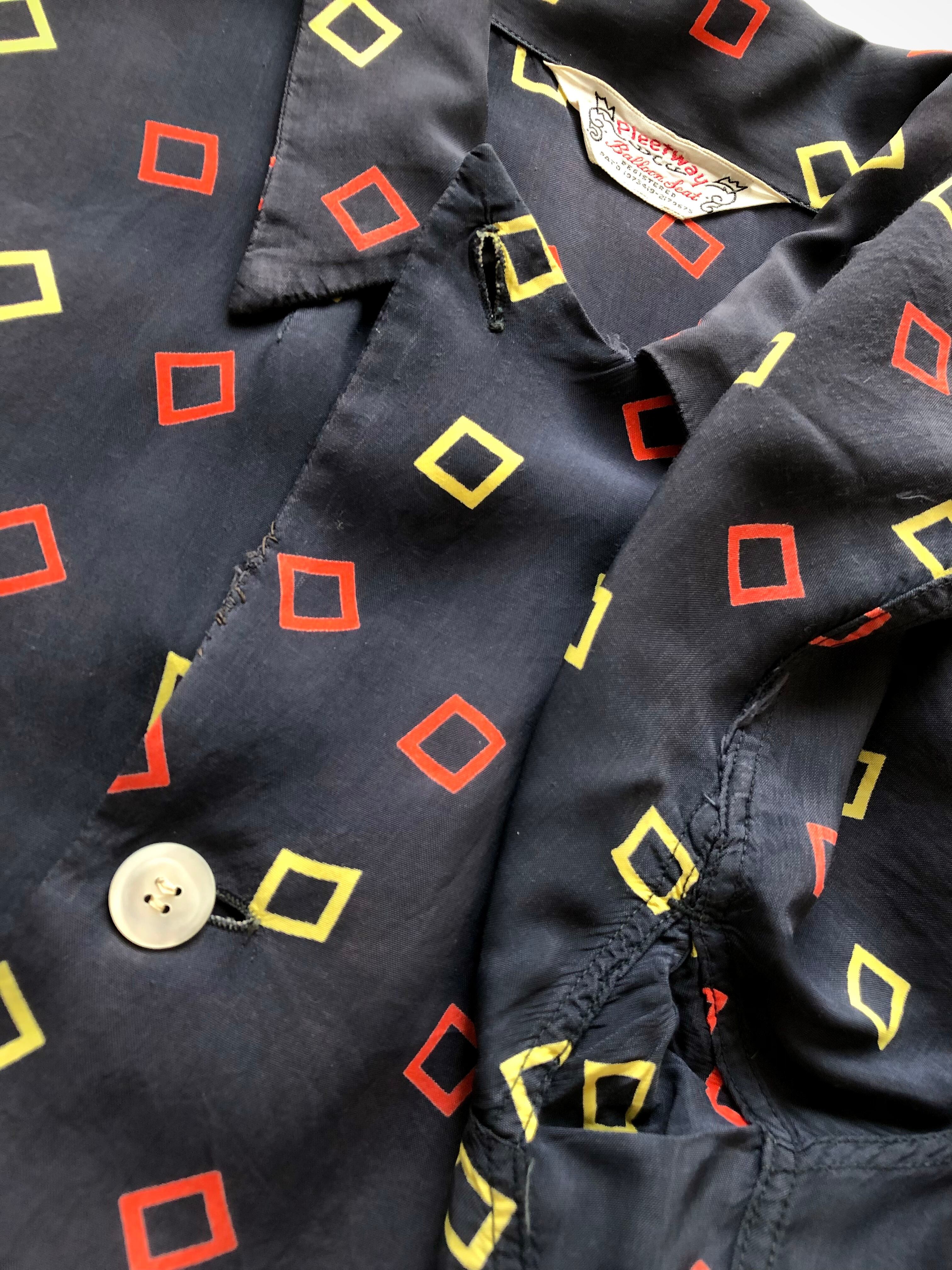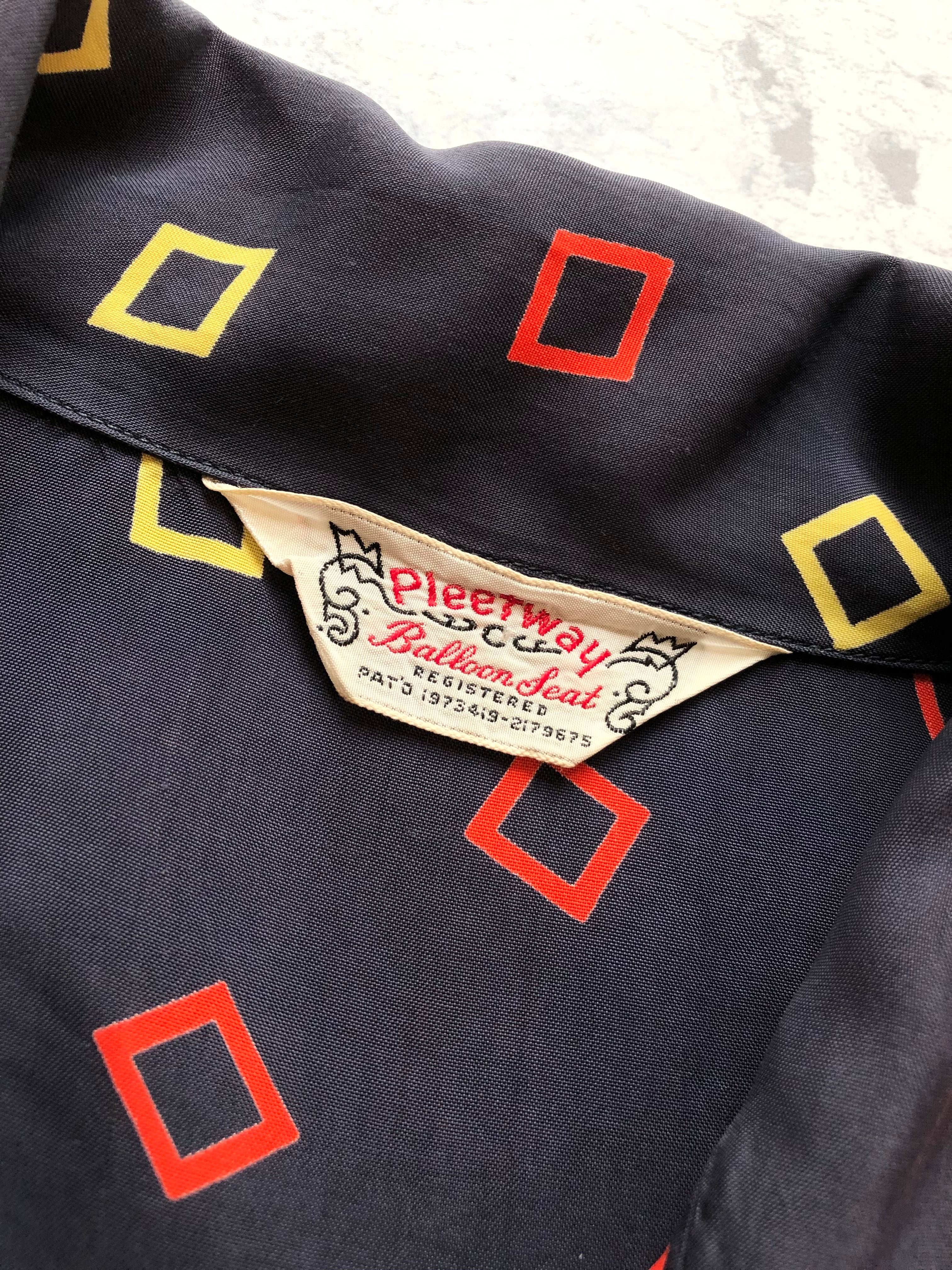 50s〜 “ Pleetway Balloon Seat ” ATOMIC DESIGN L/S RAYON SHIRT OLD VINTAGE 。