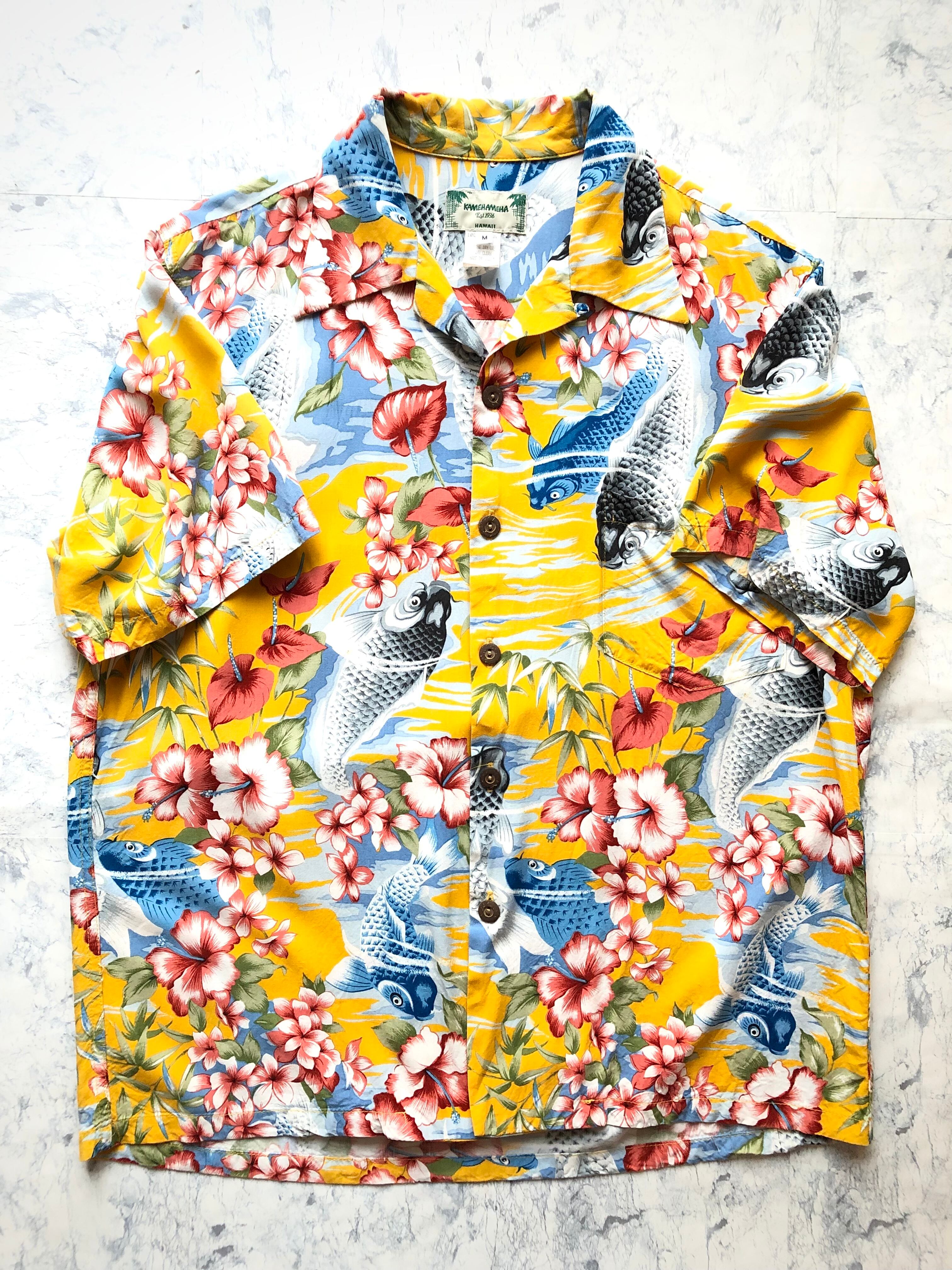 90s〜 HAWAII製 KAMEHAMEHA ORIENTAL DESIGN HAWAIIAN ALOHA SHIRT OLD VINTAGE ハワイ製 カメハメハ 和柄 オリエンタルパターン ハワイアン アロハシャツ オールド ビンテージ