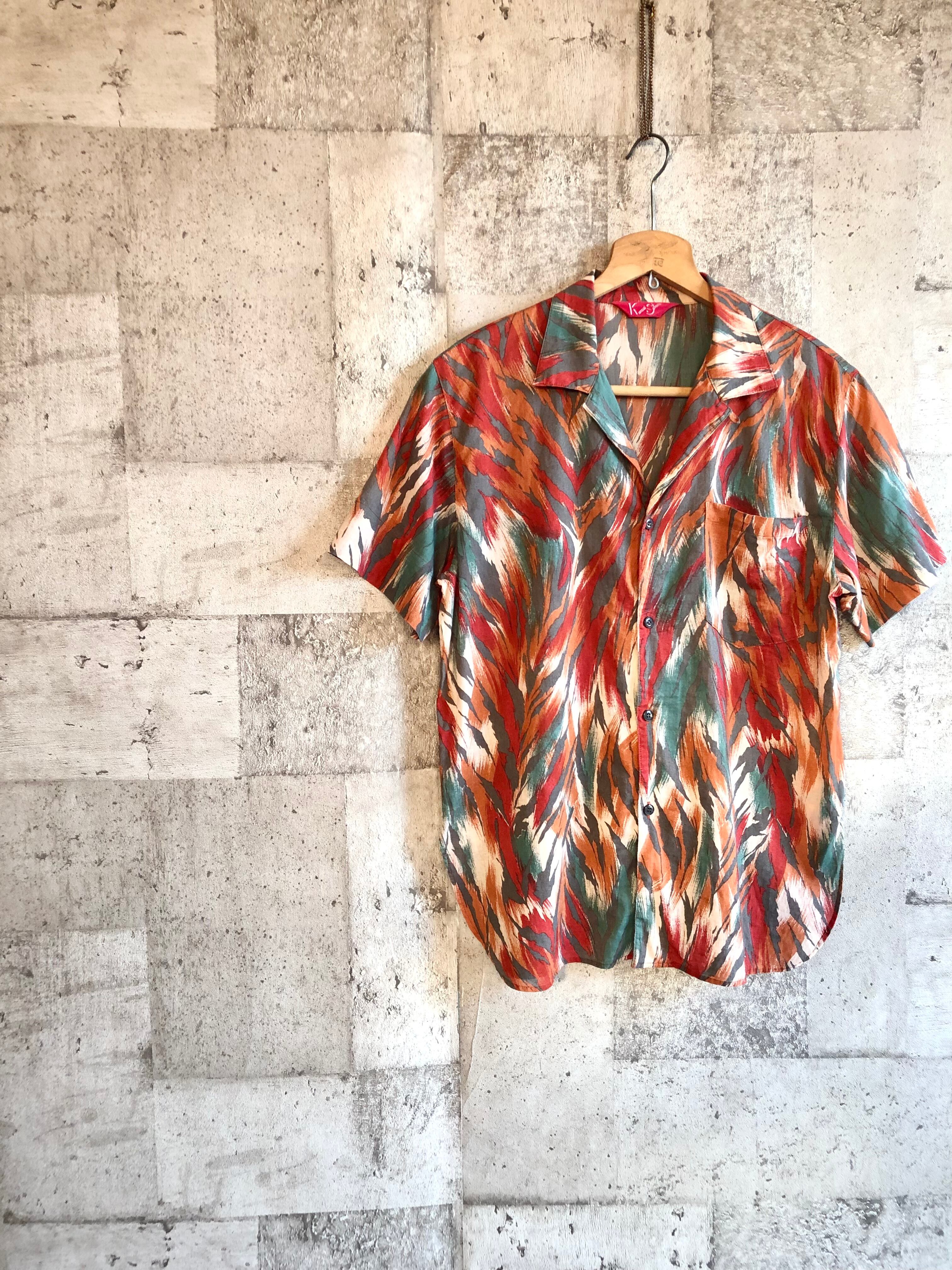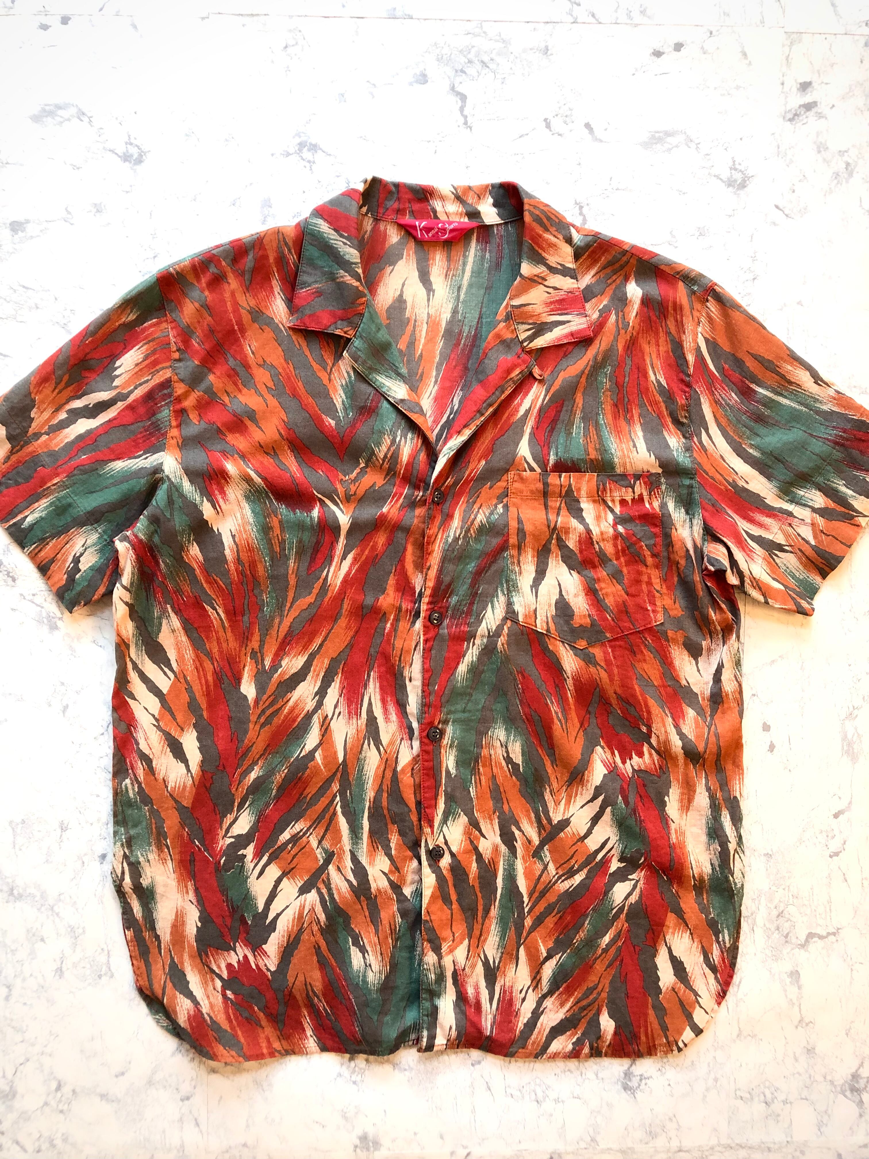 80s-90s KANSAI SPORTS ATOMIC DESIGN S/S SHIRT OLD VINTAGE カンサイスポーツ 山本寛斎 アトミックパターン 総柄シャツ オールド ビンテージ