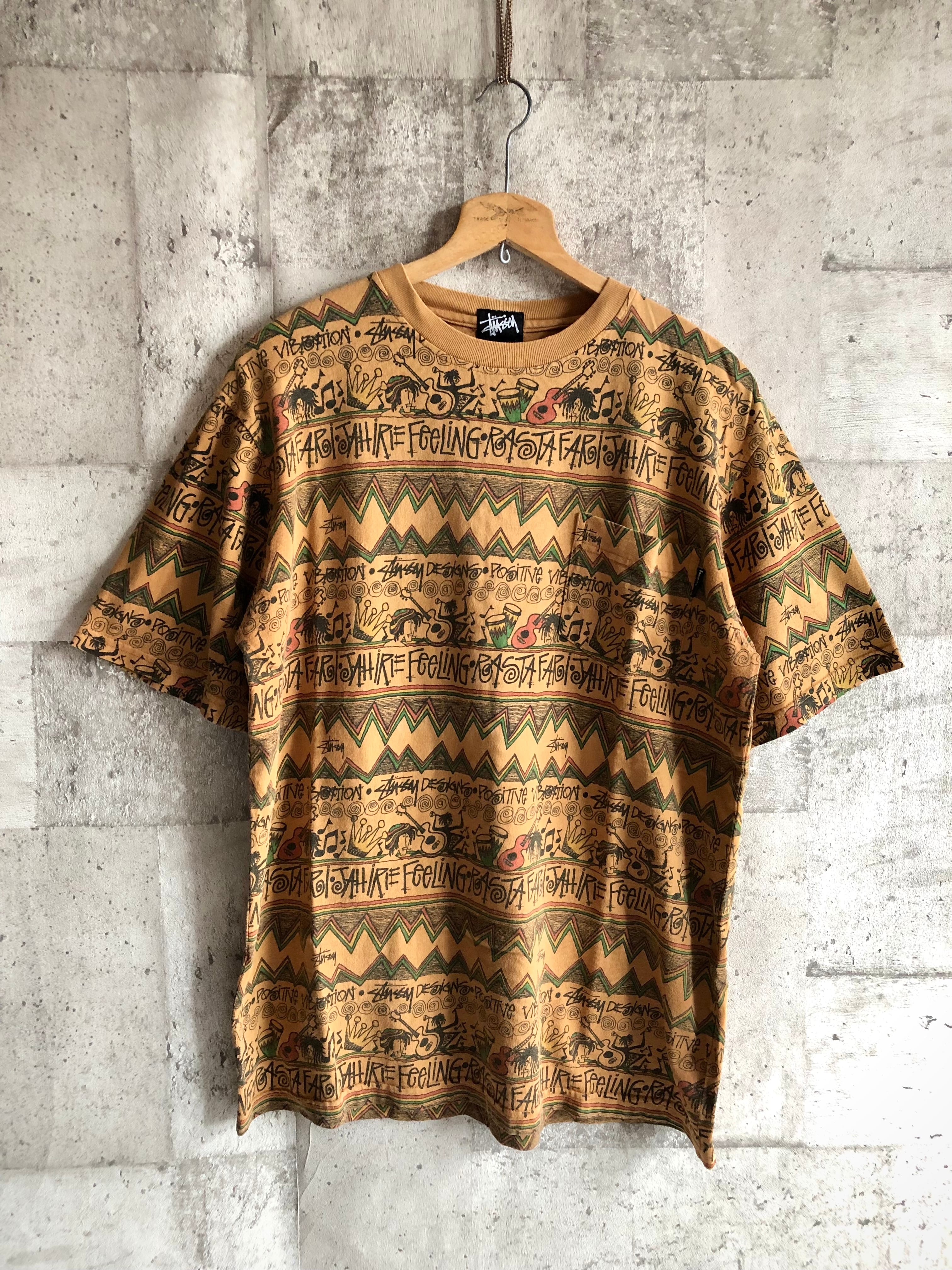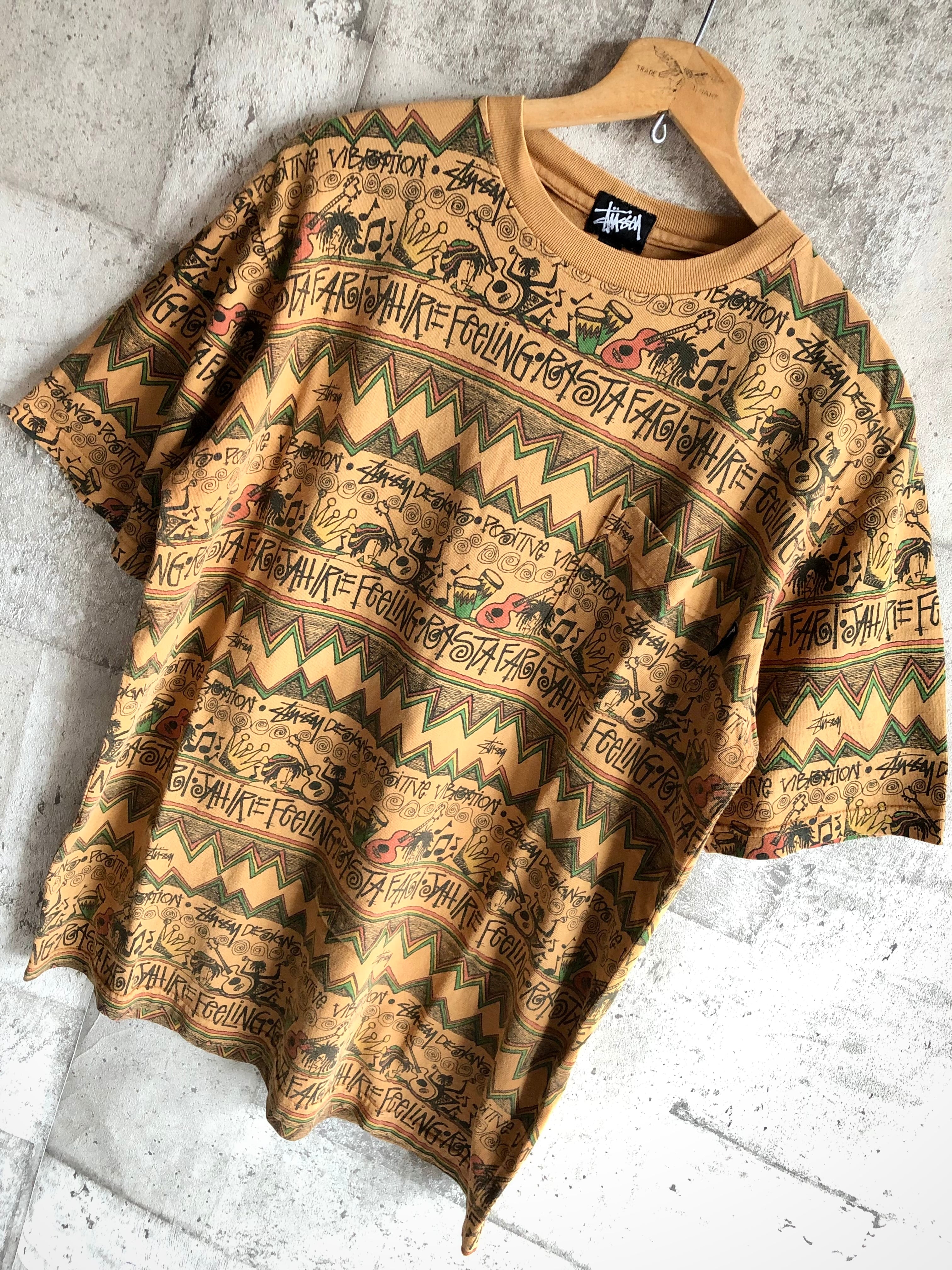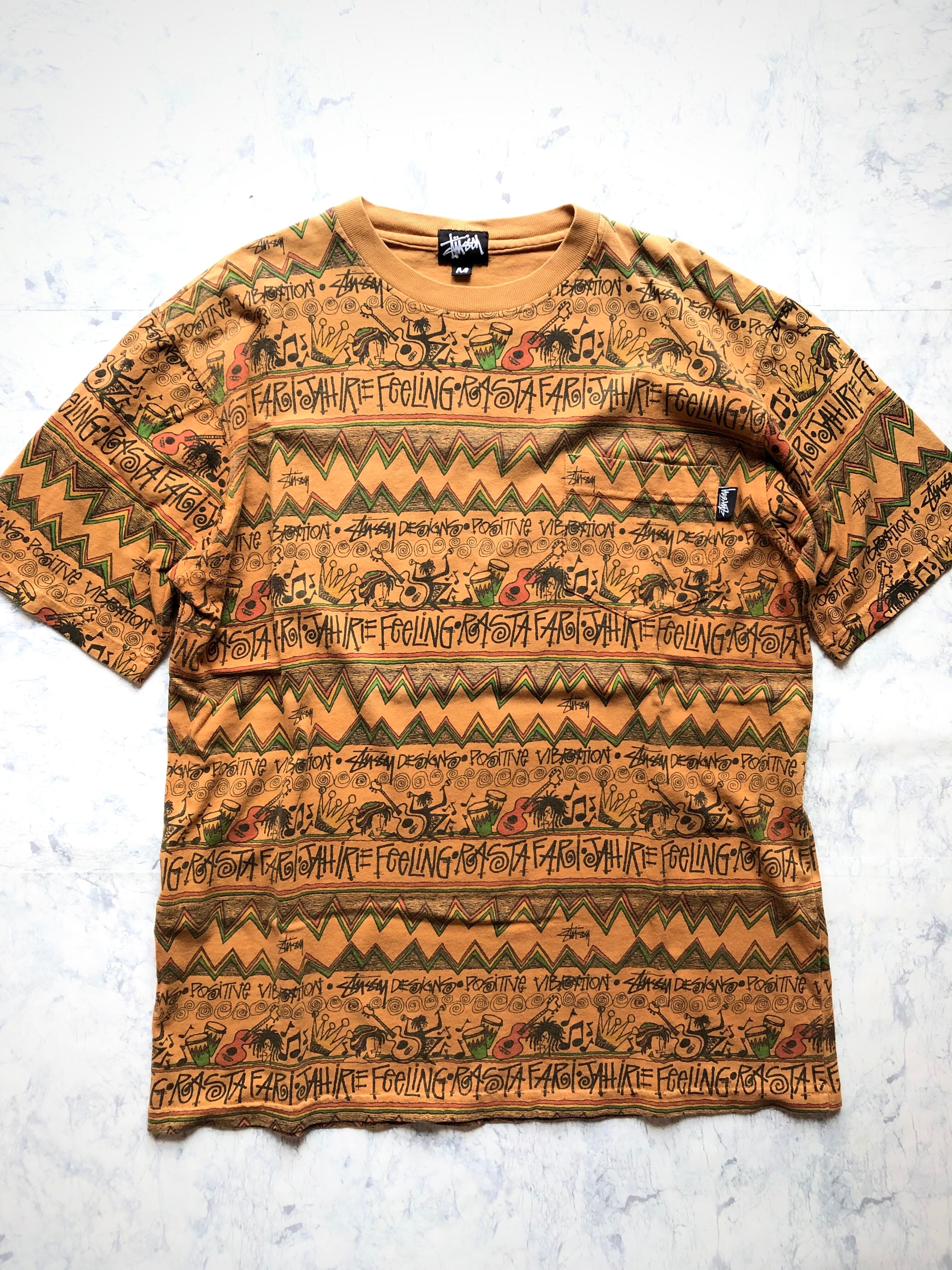 90s〜 MADE IN USA STUSSY TOMTOM RASTA IRIE PRINT TEE OLD VINTAGE アメリカ製 ステューシー トムトム ラスタ 総柄デザイン Tシャツ オールド ビンテージ