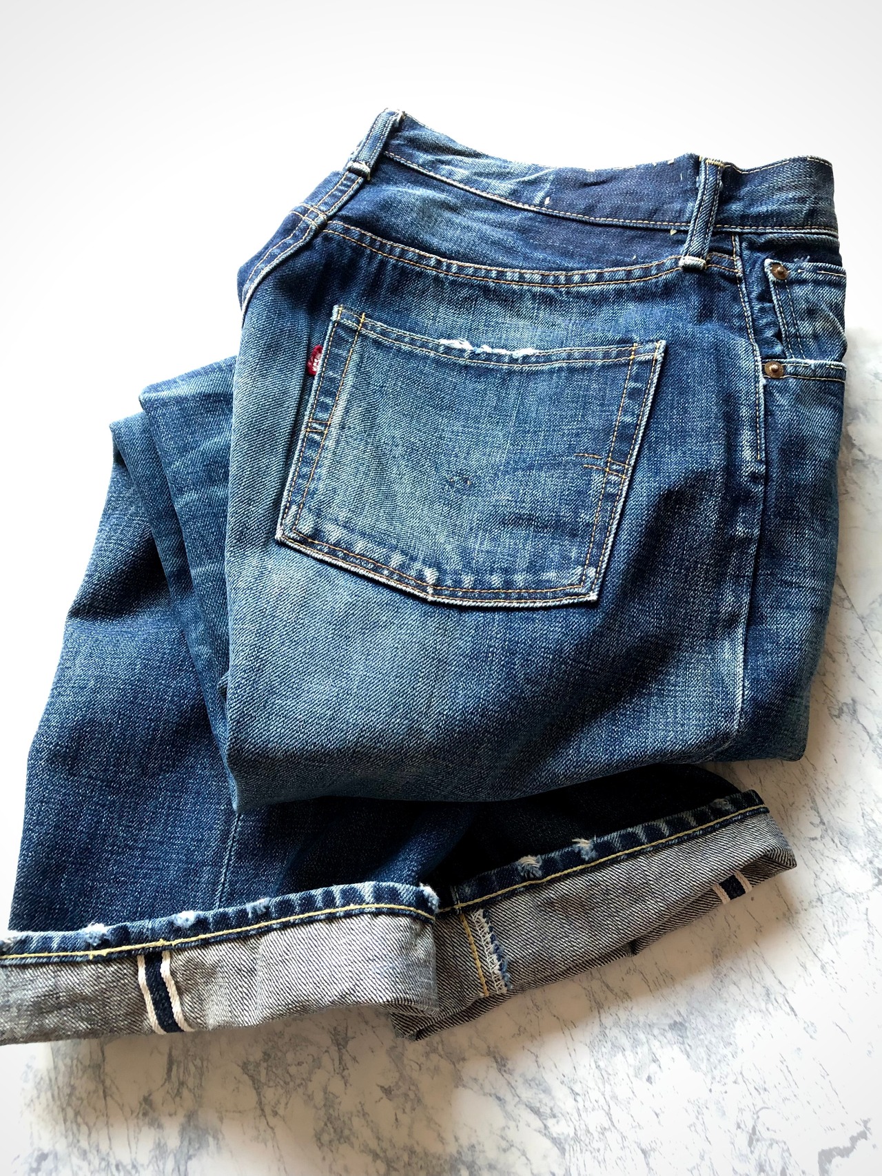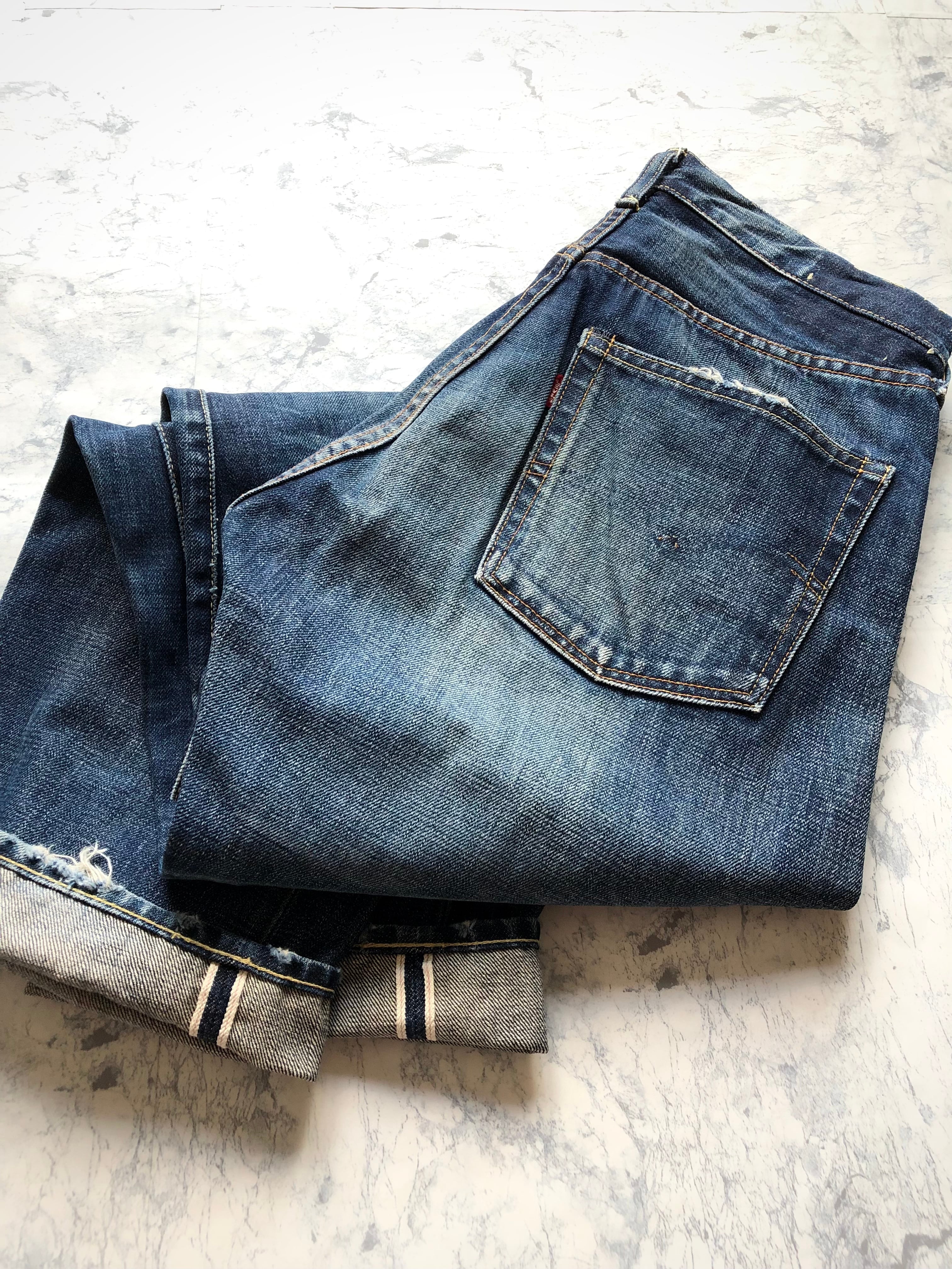 オリジナルですと近年は高騰の影響もあり非常に高額になってきておりますが、当時の雰囲気を味わいながらも気兼ね無く着用できるデニムだと思いますので、お好きな方や探されていた方は是非この機会にいかがでしょうか。