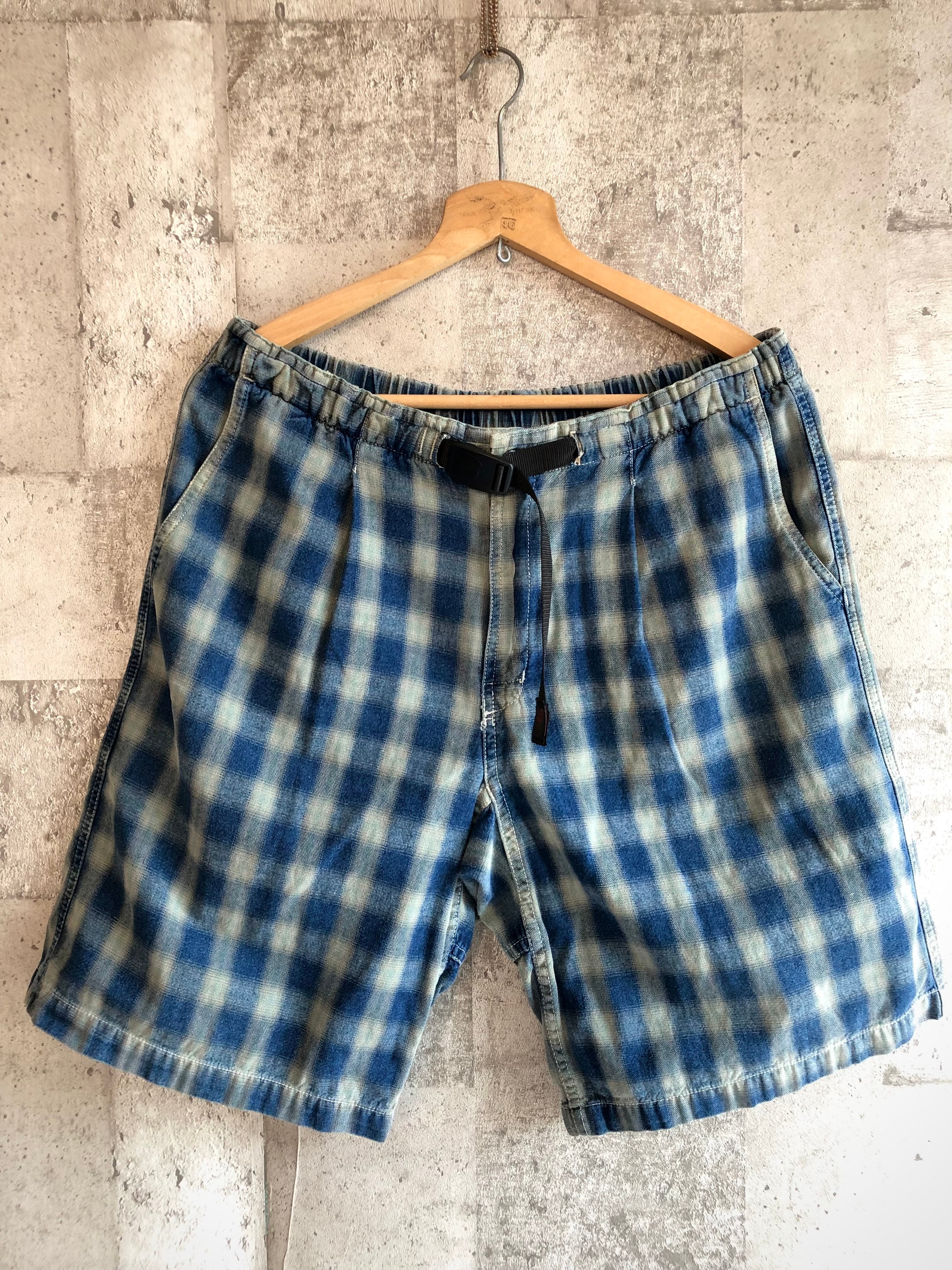 歴代の数多く存在するGRAMICCIアイテムの中でも出現率が少なく比較的珍しいオンブレチェックパターンを纏った雰囲気の良いクライミングショートパンツ。