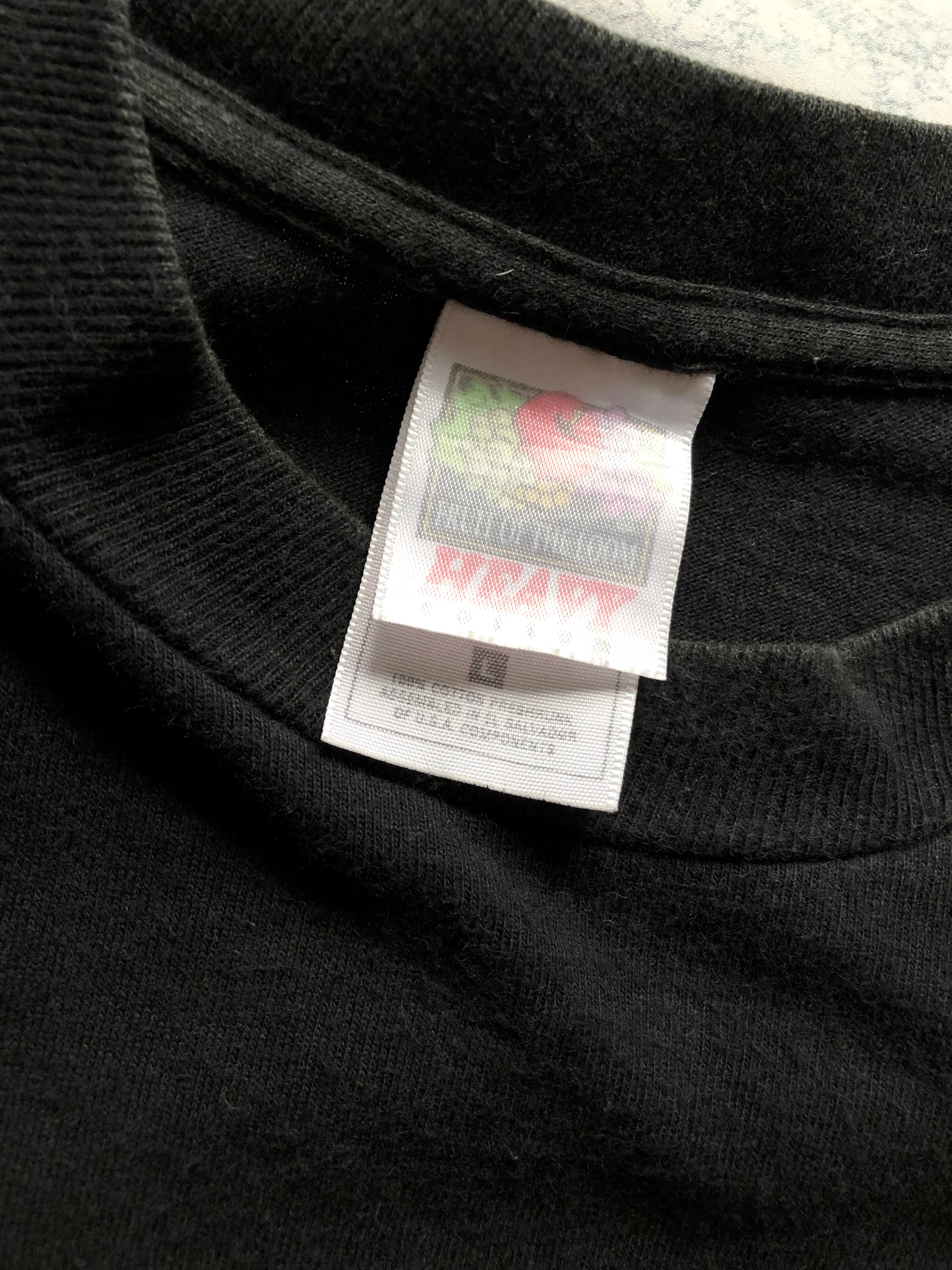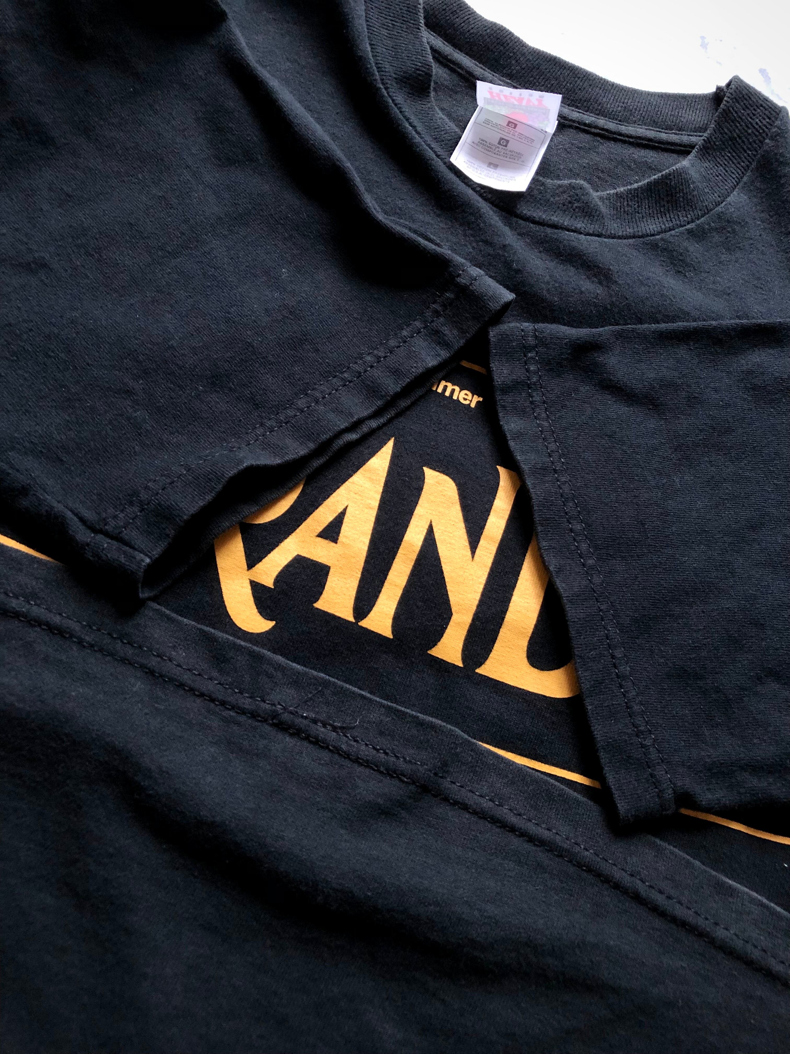 FRUIT OF THE LOOMのブラックボディにイエローのカラーリングでロゴが大きくプリントされたインパクトのあるグッドデザイン、アートやジャズ系と並び人気の高まっている珍しいシリーズだと思いますので、お好きな方や探されていた方は是非この機会にいかがでしょうか。