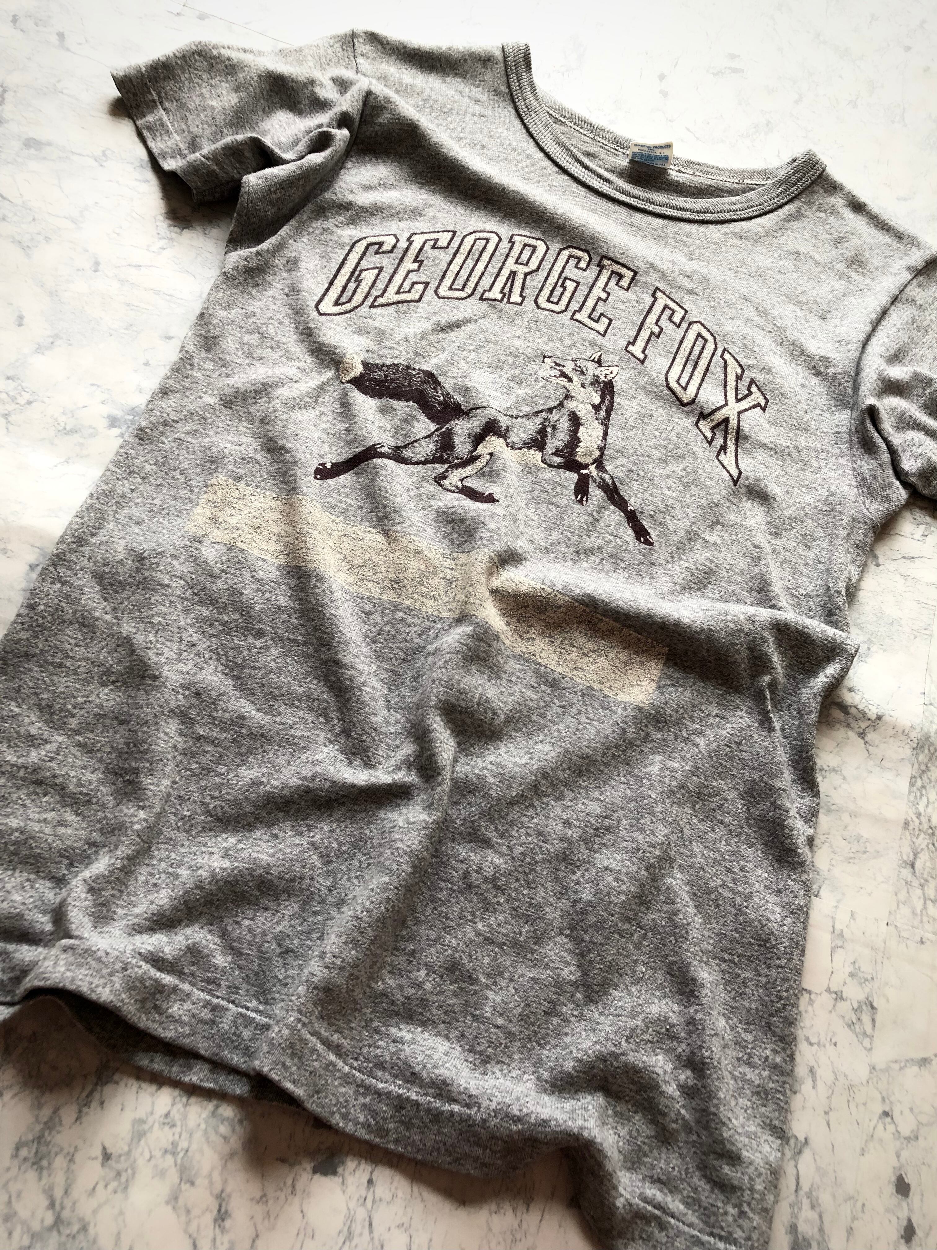 CHAMPIONのTシャツの中でも非常に人気が高く定番として必ず愛用されている“88/12”ボディを使用した当時物VINTAGE、雰囲気の良い霜降りグレーベースにGEORGE FOXプリントのカレッジシリーズです。