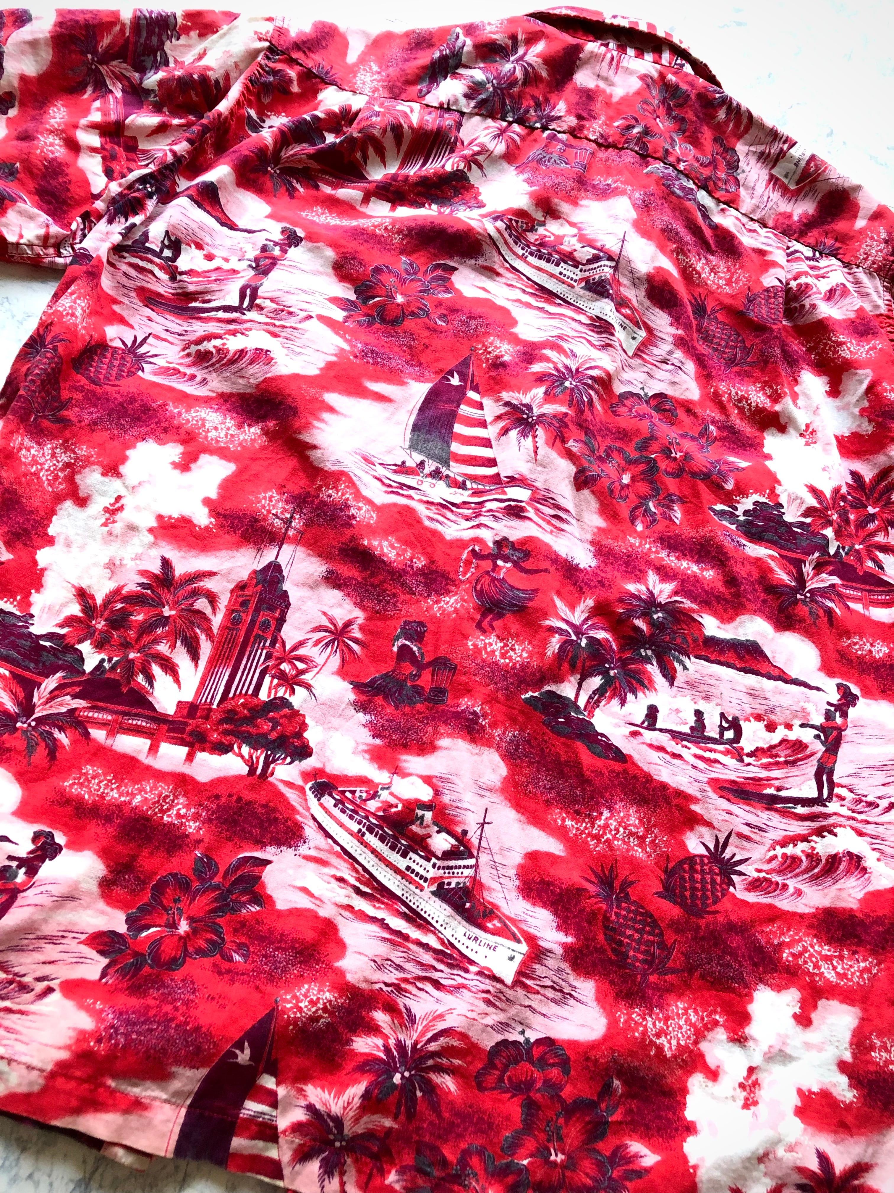 1950s〜 MADE IN HAWAII “ LURLINE ” MATSON TROPICAL PATTERN HAWAIIAN SHIRT OLD VINTAGE 。