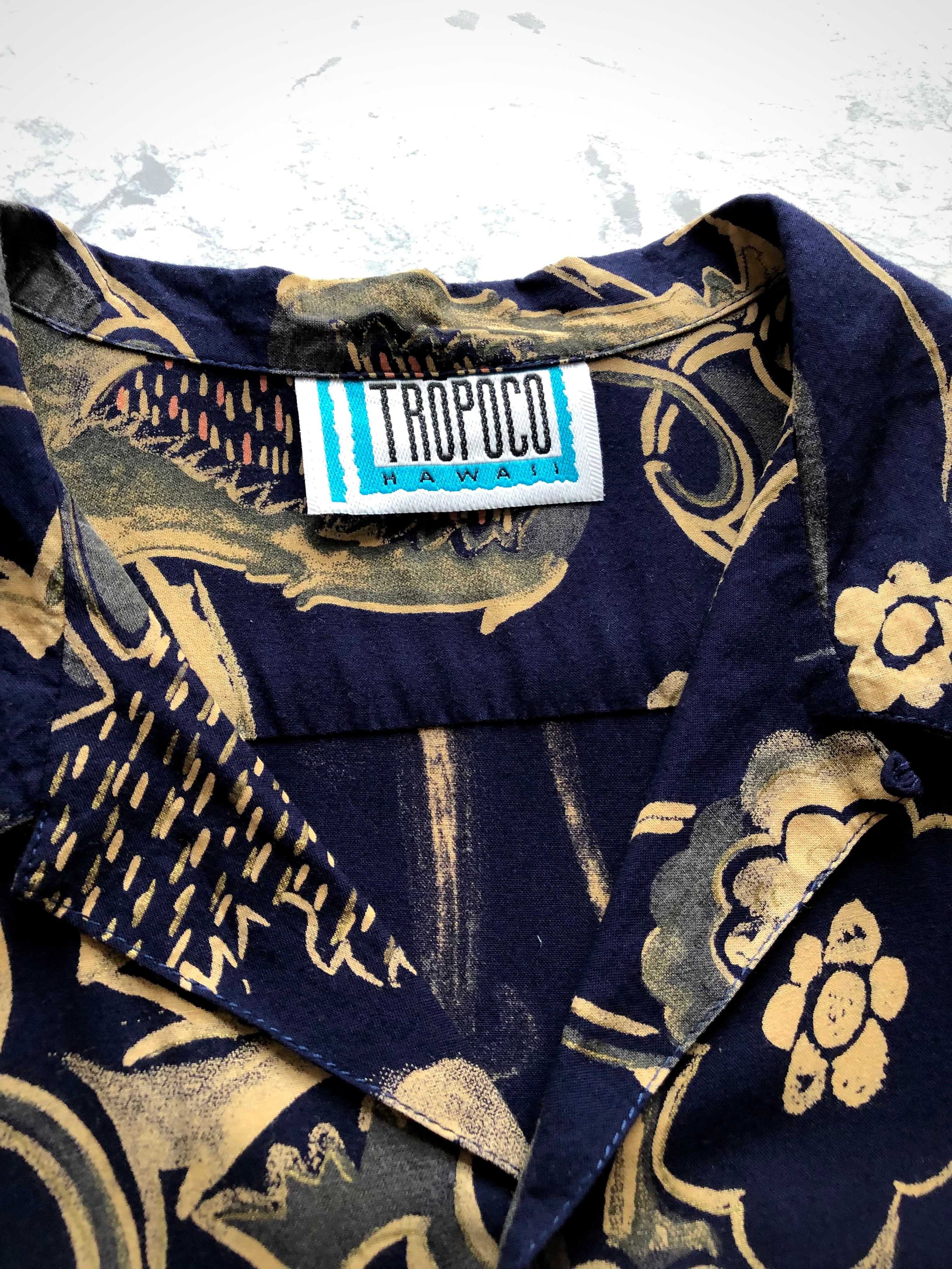 80s-90s TROPOCO ALL-OVER RAYON HAWAIIAN ALOHA SHIRT OLD VINTAGE ハワイ発 トロポコ ボタニカル 総柄パターン ハワイアン アロハシャツ オールド ビンテージ