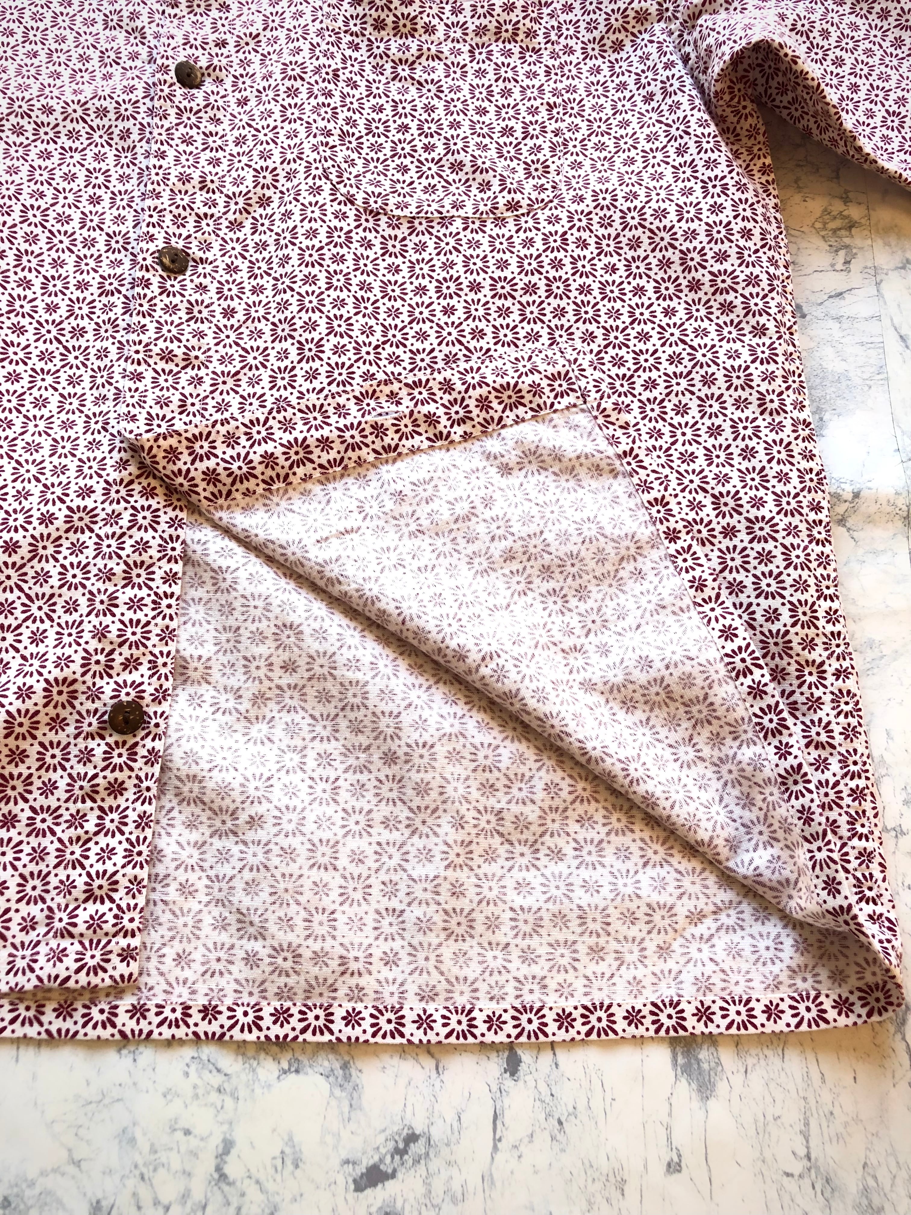 同ブランドから販売されていた少し前のオールドモデルでアウトドアな印象はほとんど感じない小花柄デザインの総柄シャツになります。