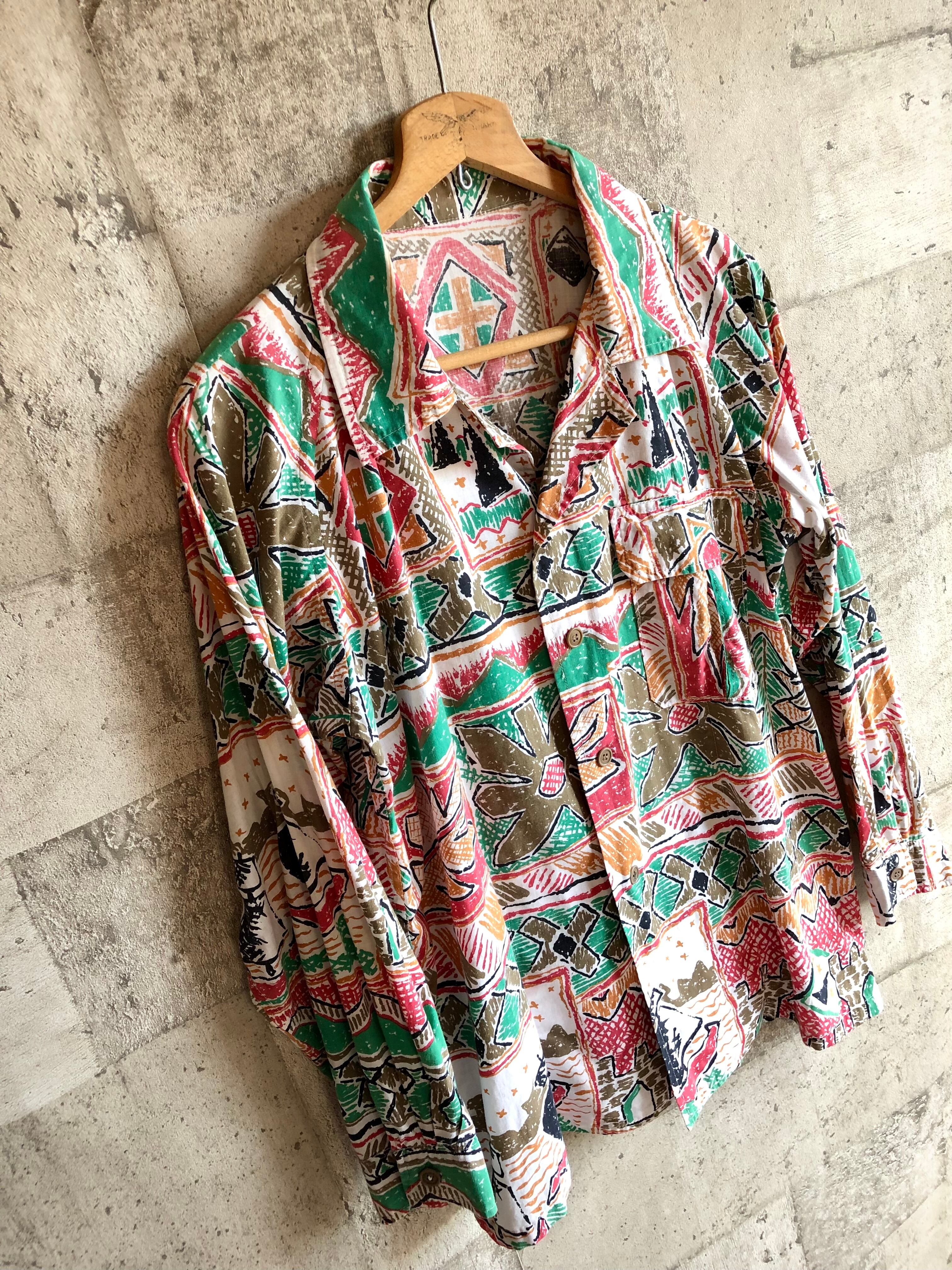 50s-60s UNKNOWN ALL-OVER DESIGN L/S BOX SHIRT OLD VINTAGE 総柄 アート 幾何学模様 長袖ボックスシャツ オールド ビンテージ