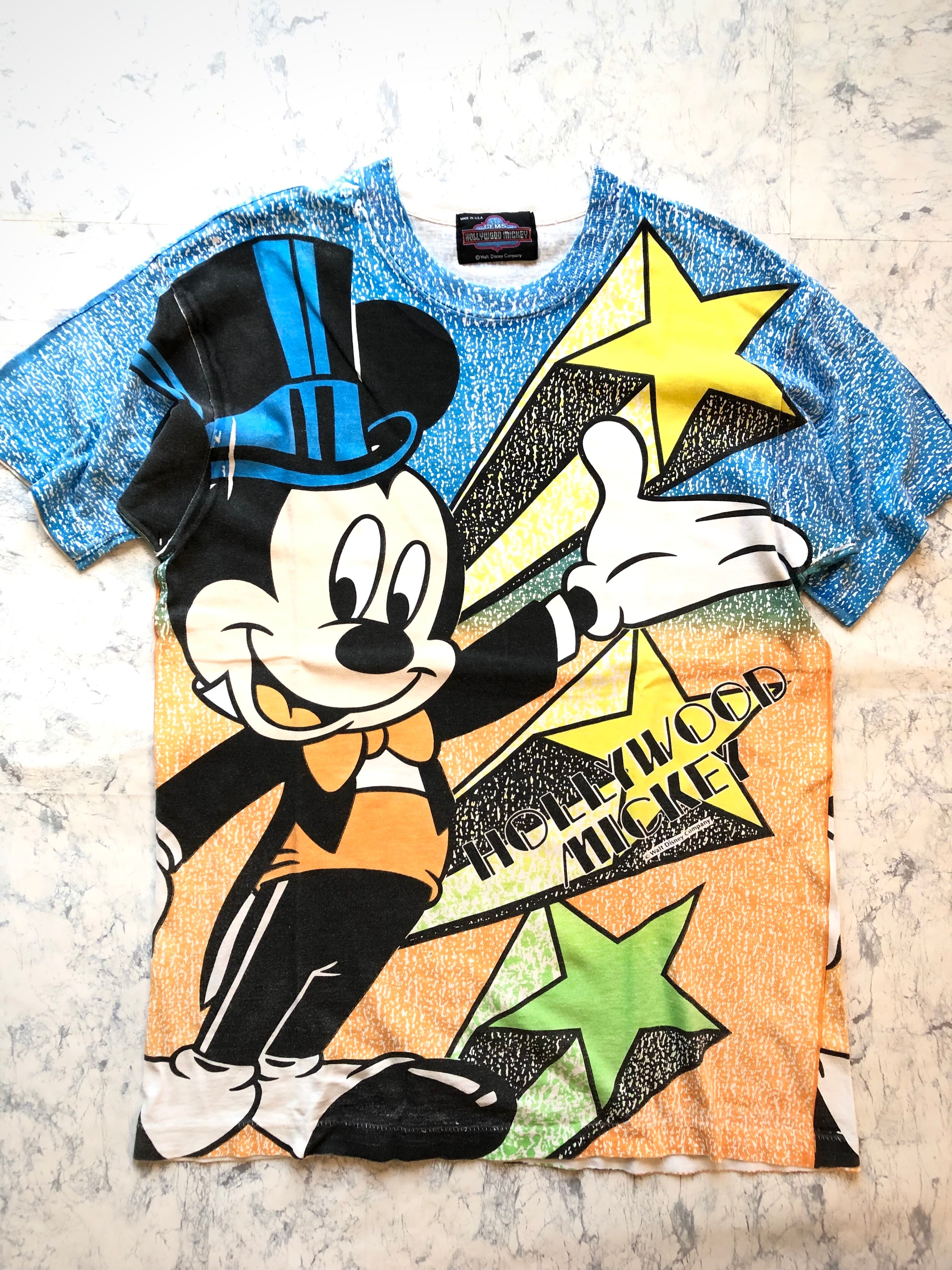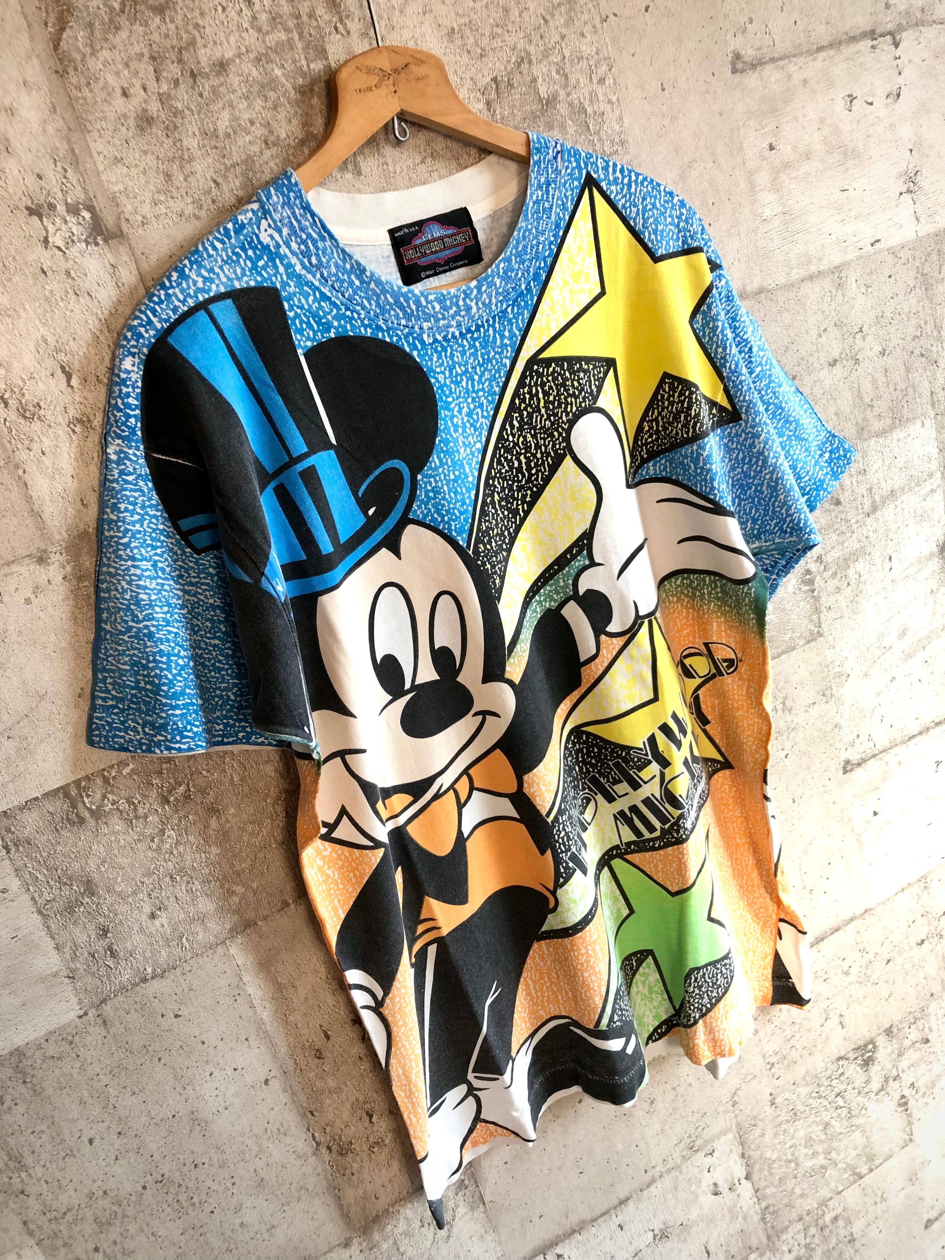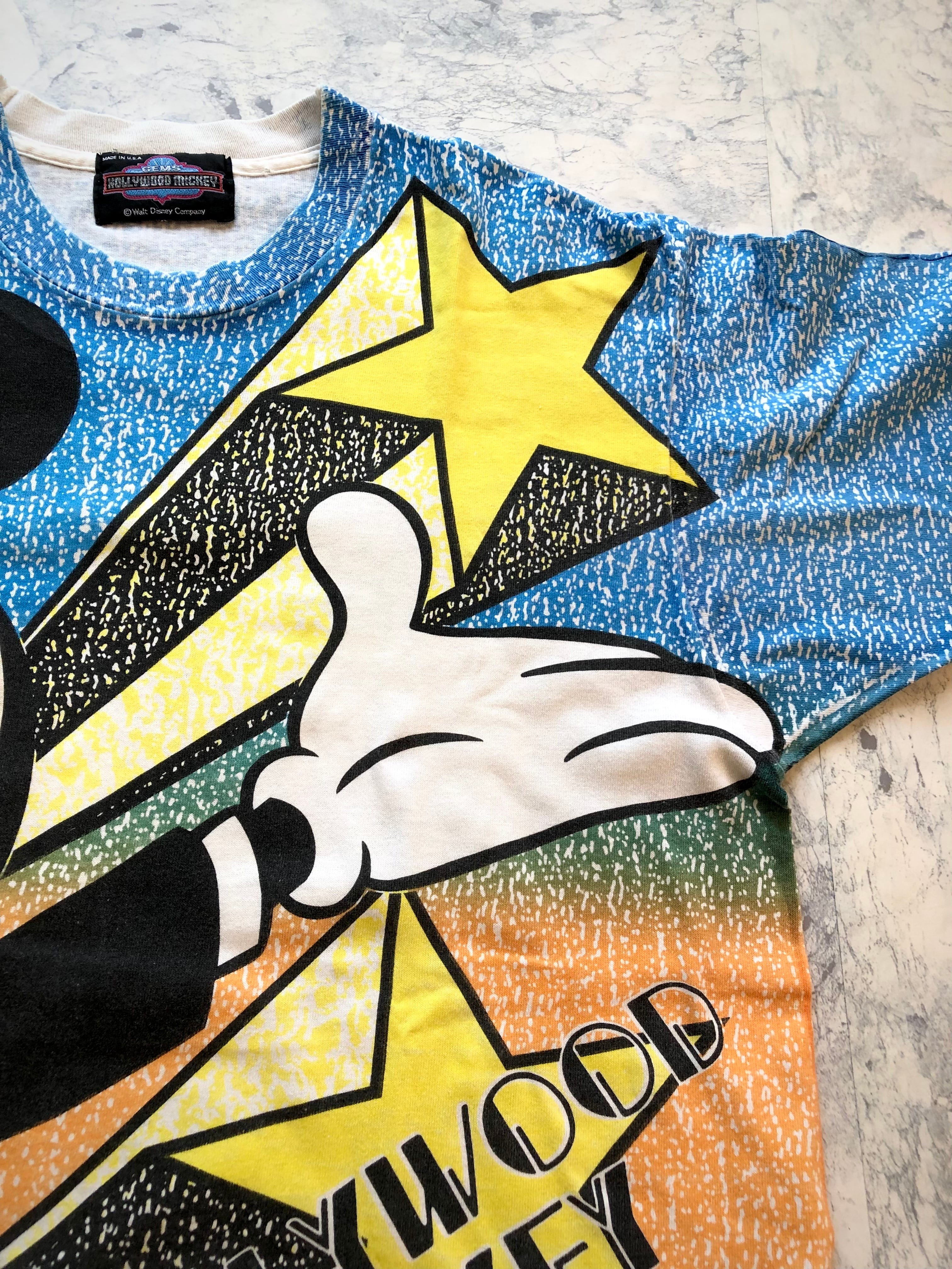 90s USA製 HOLLYWOOD MICKEY ALL-OVER PRINT TEE DISNEY OLD VINTAGE アメリカ製 ミッキーマウス ハリウッド限定 総柄プリントTシャツ オールド ビンテージ