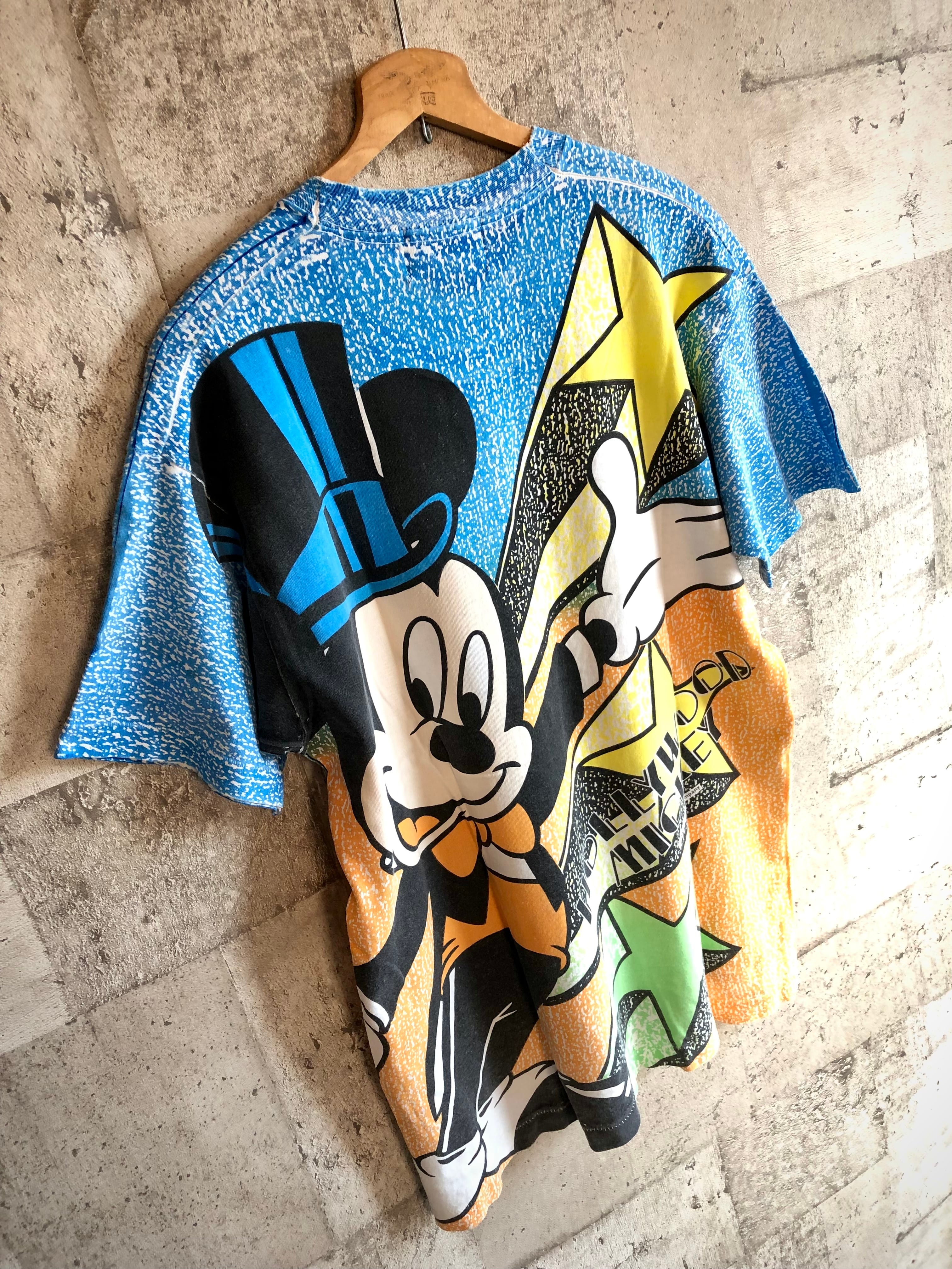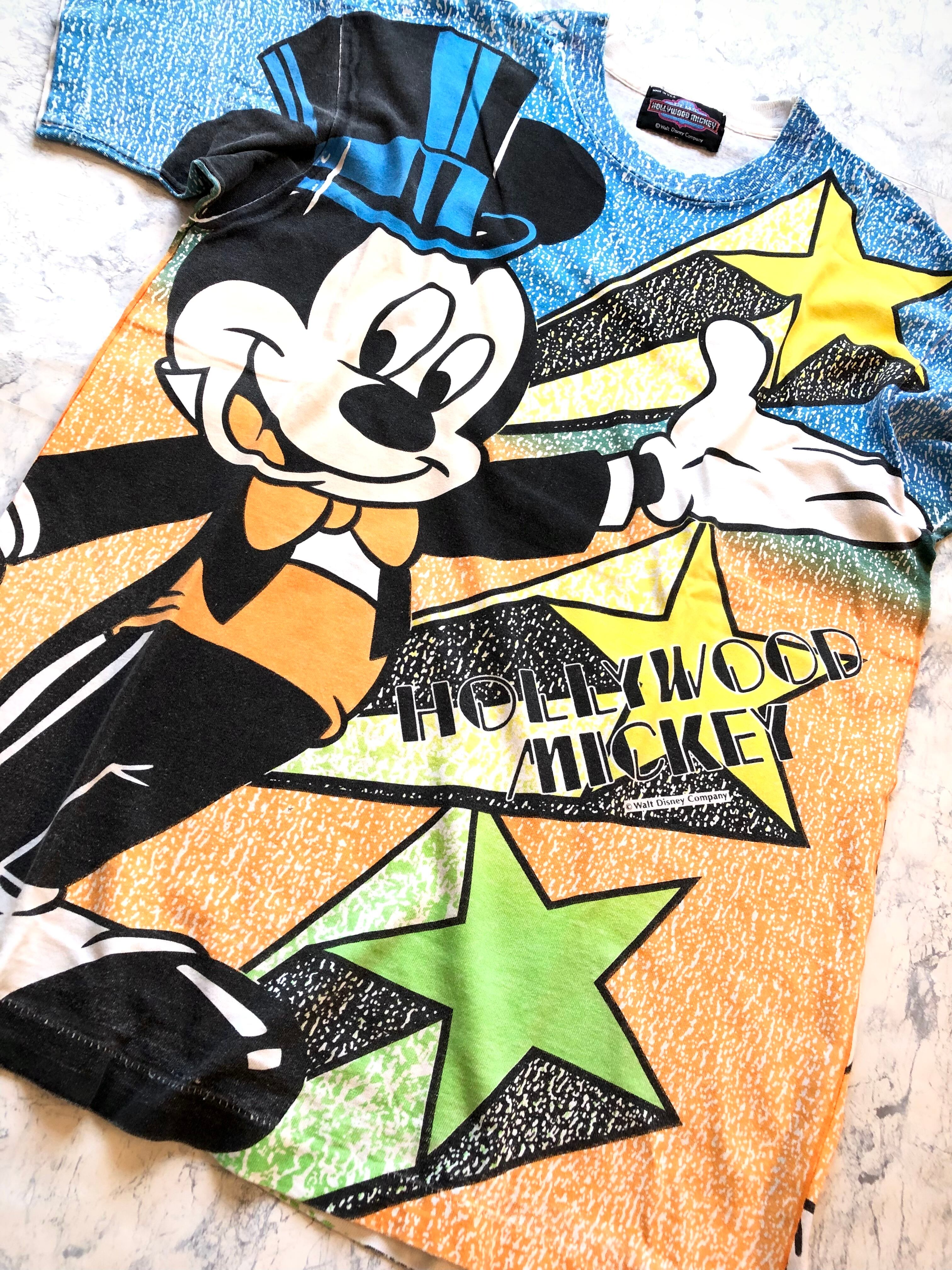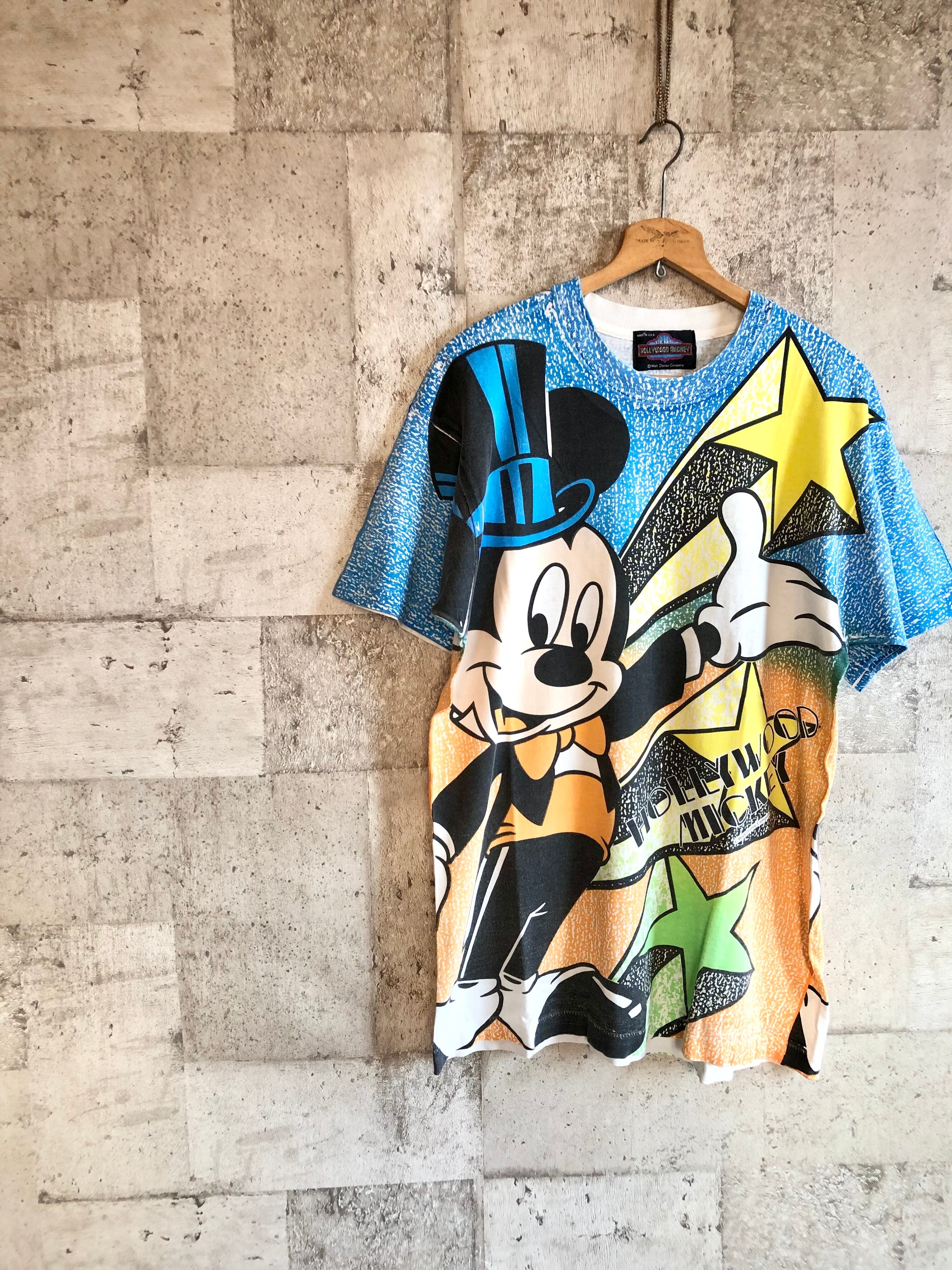 90s USA製 HOLLYWOOD MICKEY ALL-OVER PRINT TEE DISNEY OLD VINTAGE アメリカ製 ミッキーマウス ハリウッド限定 総柄プリントTシャツ オールド ビンテージ