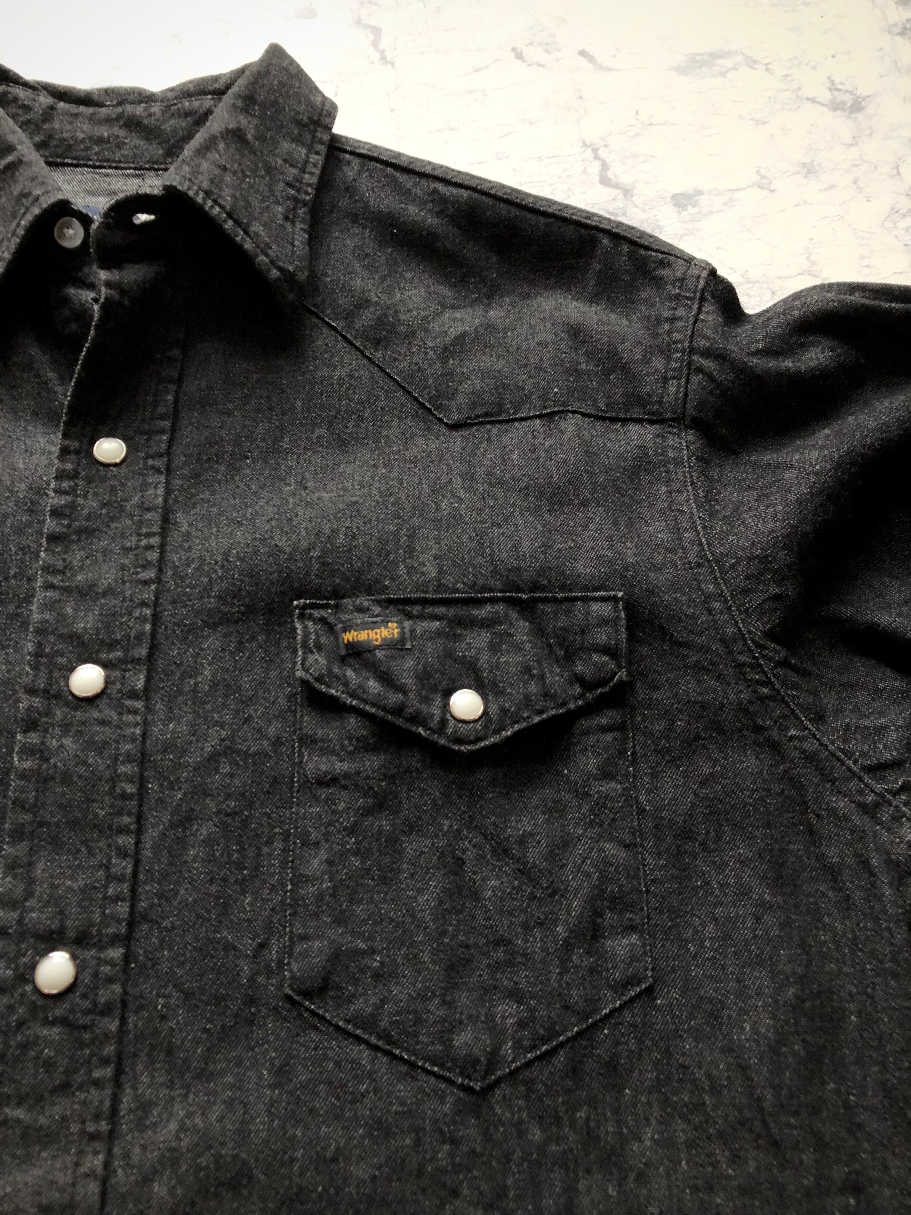 90s WRANGLER #70127MW BLACK DENIM WESTERN SHIRT OLD VINTAGE ラングラー ブラックデニム ウエスタンシャツ オールド ビンテージ