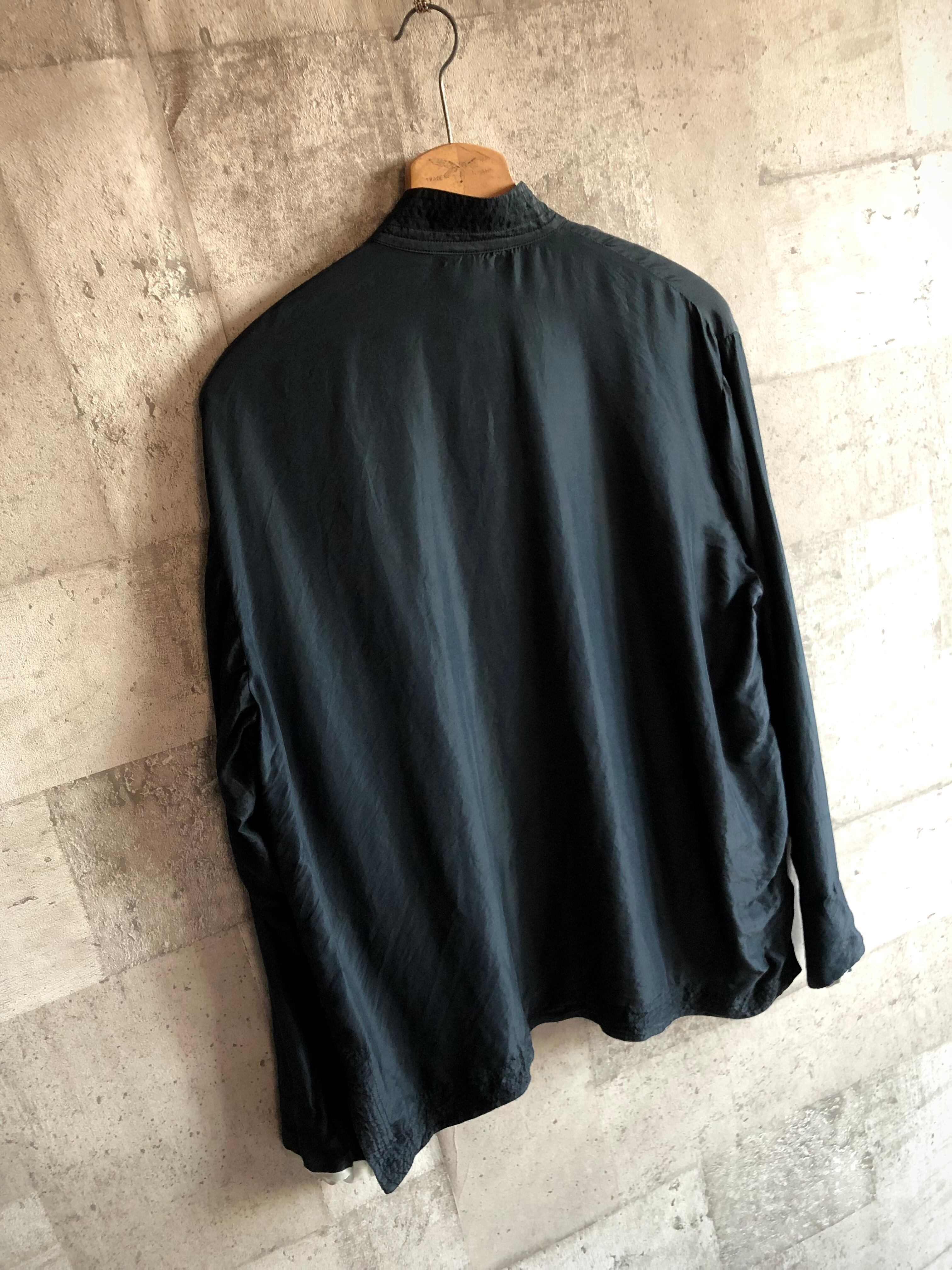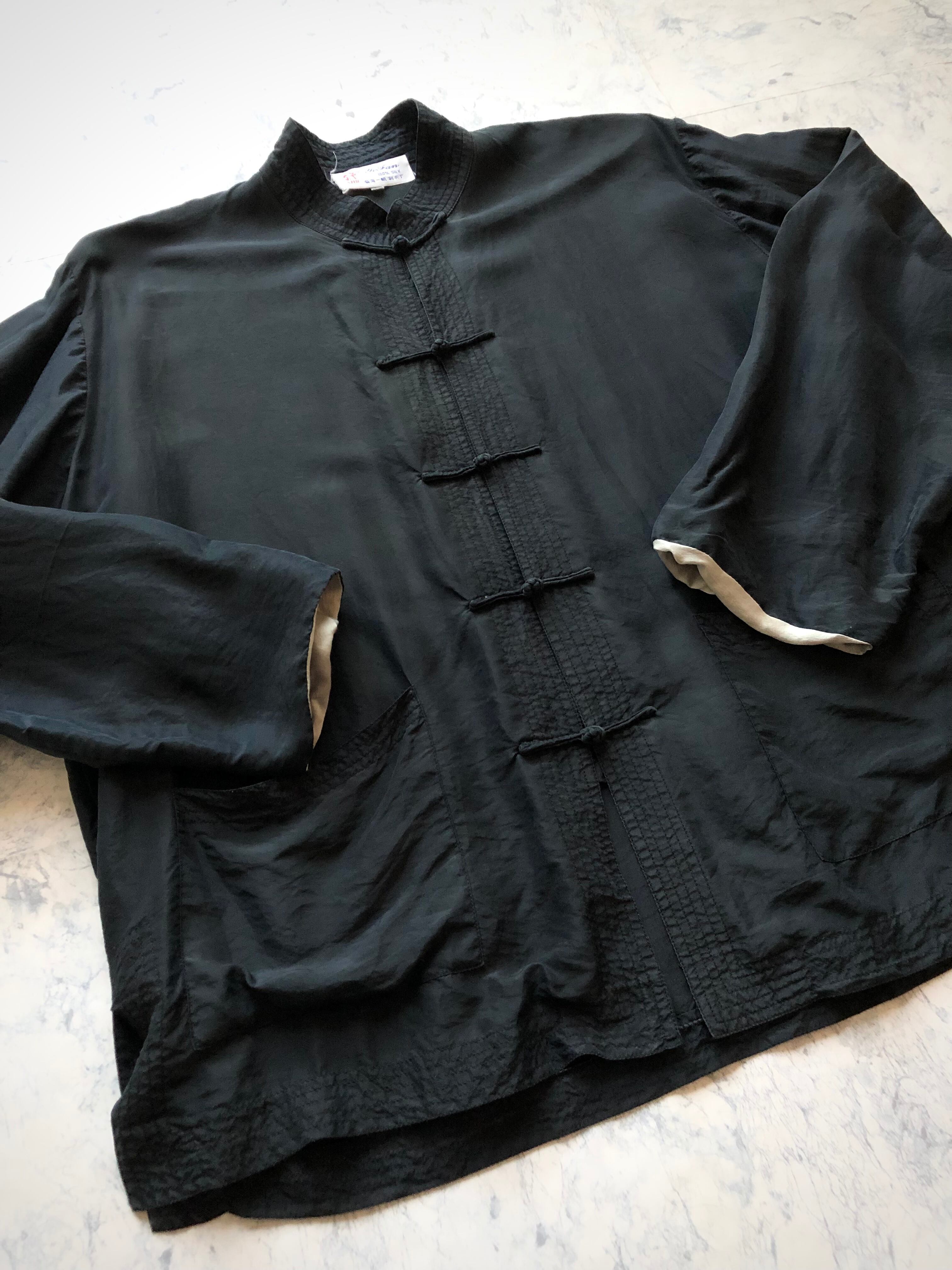 1980s〜 SHU / Yi Fan - CHINA JACKET / SHIRT SILK100% BLACK SOLID OLD VINTAGE 。