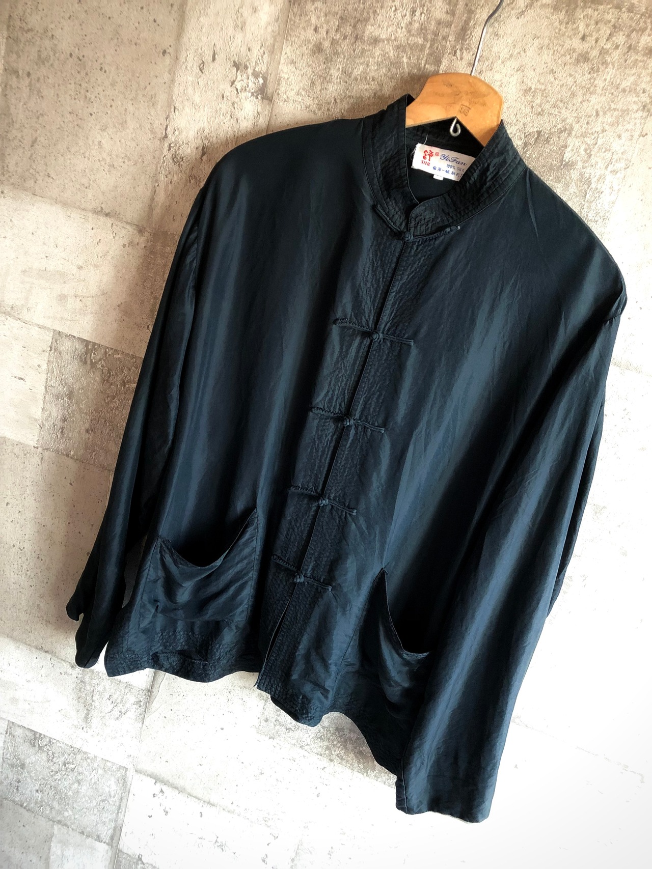 チャイナジャケットやカンフーシャツの本場である中国にて製造されたと思われる80s〜辺りのオールシルク100%仕立てとなった本格的なチャイナジャケット 。
