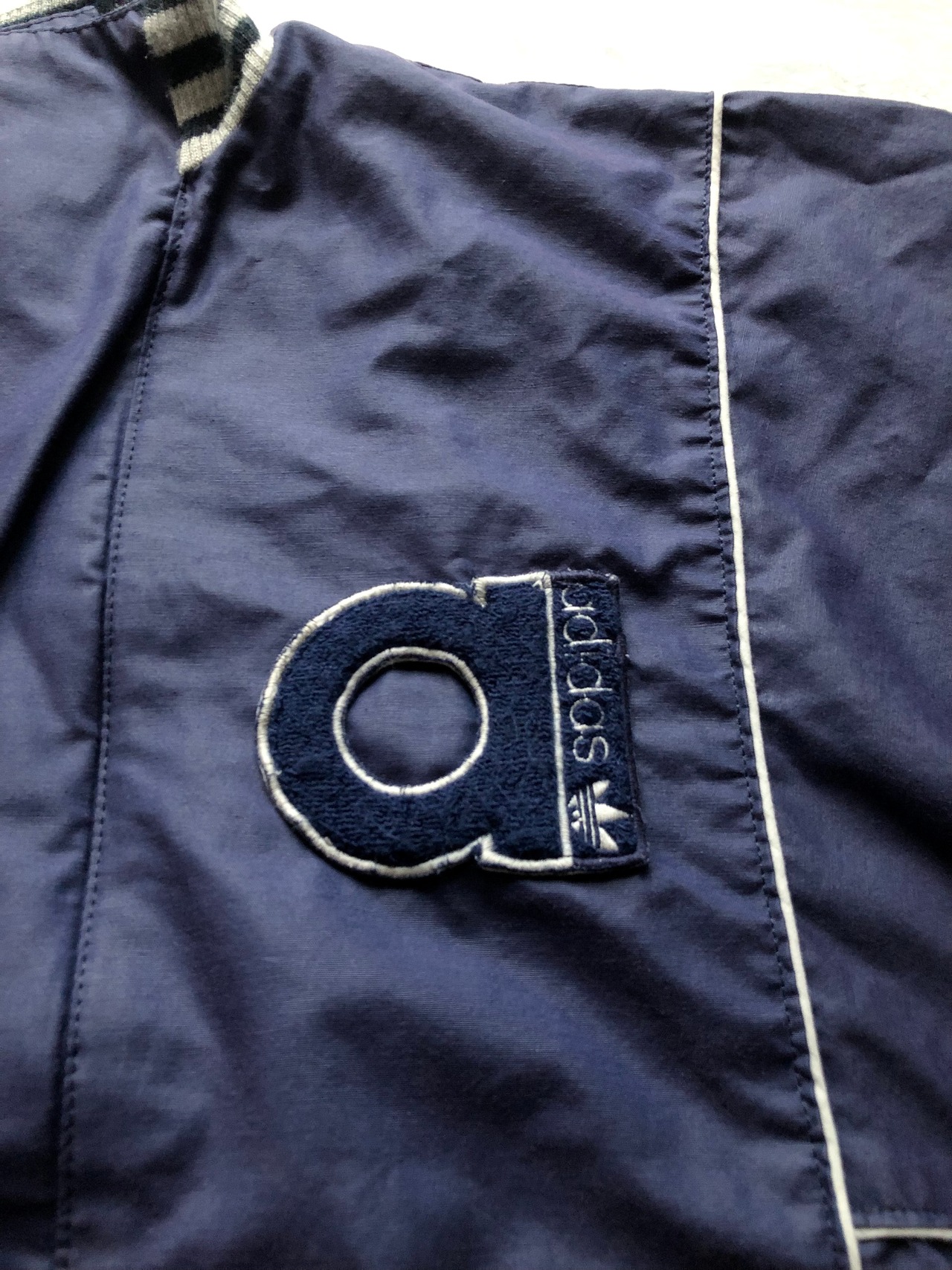 ADIDASとしては非常に珍しいカジュアルなVINTAGEジャケット、フロントのフルジップの上から被さるような比翼仕立てに加えて独特なスナップ留めを採用したスポーティーでレアなデザイン。