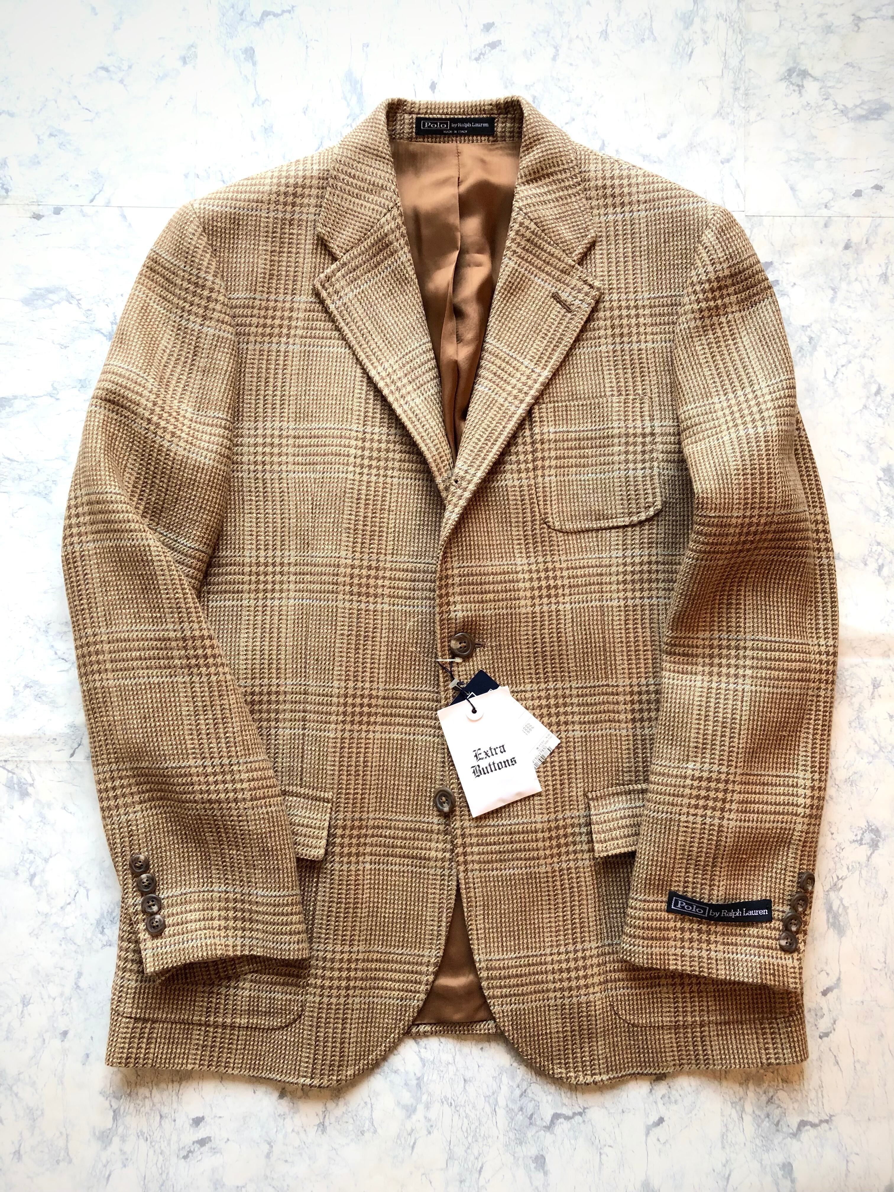 DEAD STOCK 90s ITALY製 RALPH LAUREN GLEN-CHECK 3B TAILORED JACKET OLD VINTAGE イタリア製 ラルフローレン グレンチェック テーラードジャケット オールド ビンテージ