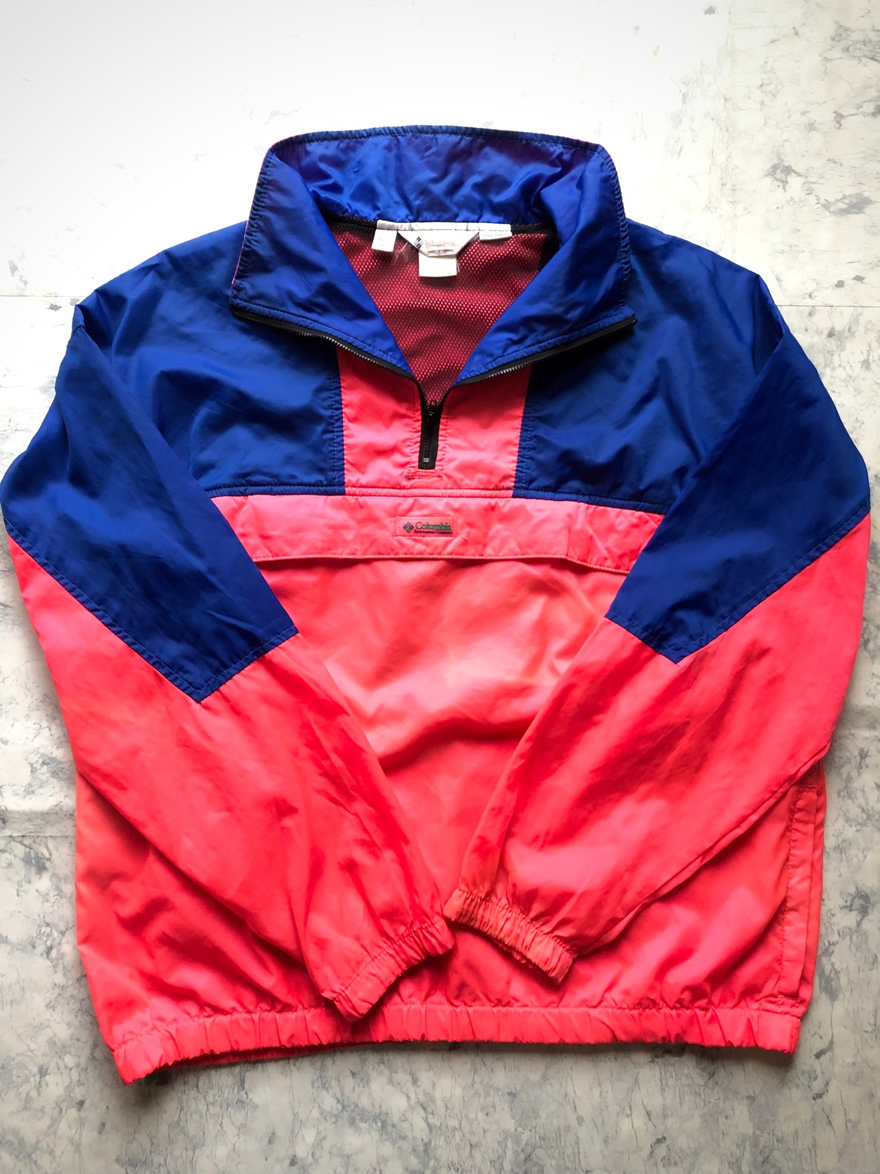 この手のシリーズでは人気の高いスタンドカラー.プルオーバータイプのハーフジップモデル、インパクトのある色鮮やかなピンク×ブルーのカラーリングが絶妙にマッチした90年代らしいグッドカラーなツートンパターンです。