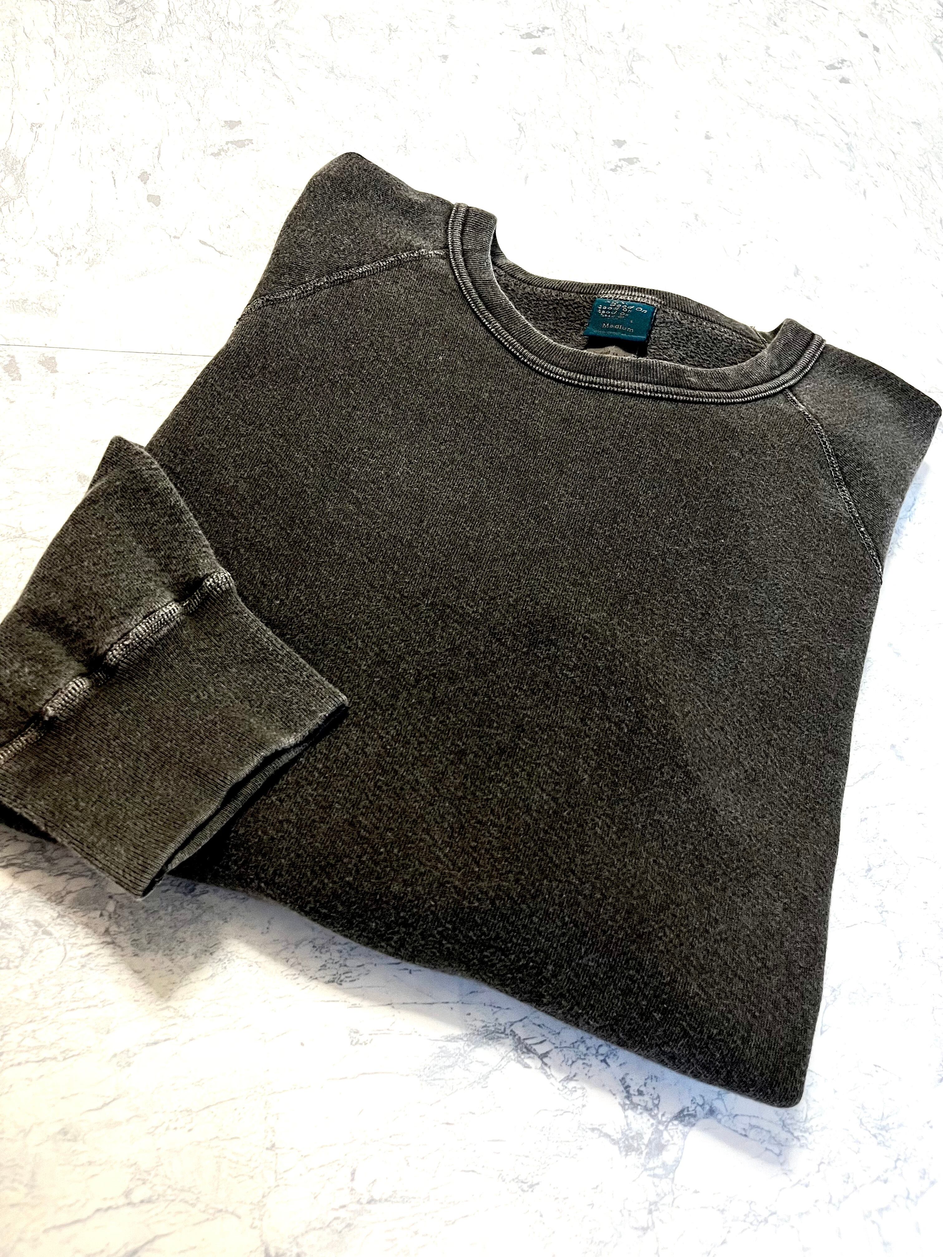 USA-FABRIC “ GOOD ON ” C/N SWEAT SHIRT BLACK - PIGMENT DYE SOLID ORIGINAL 。