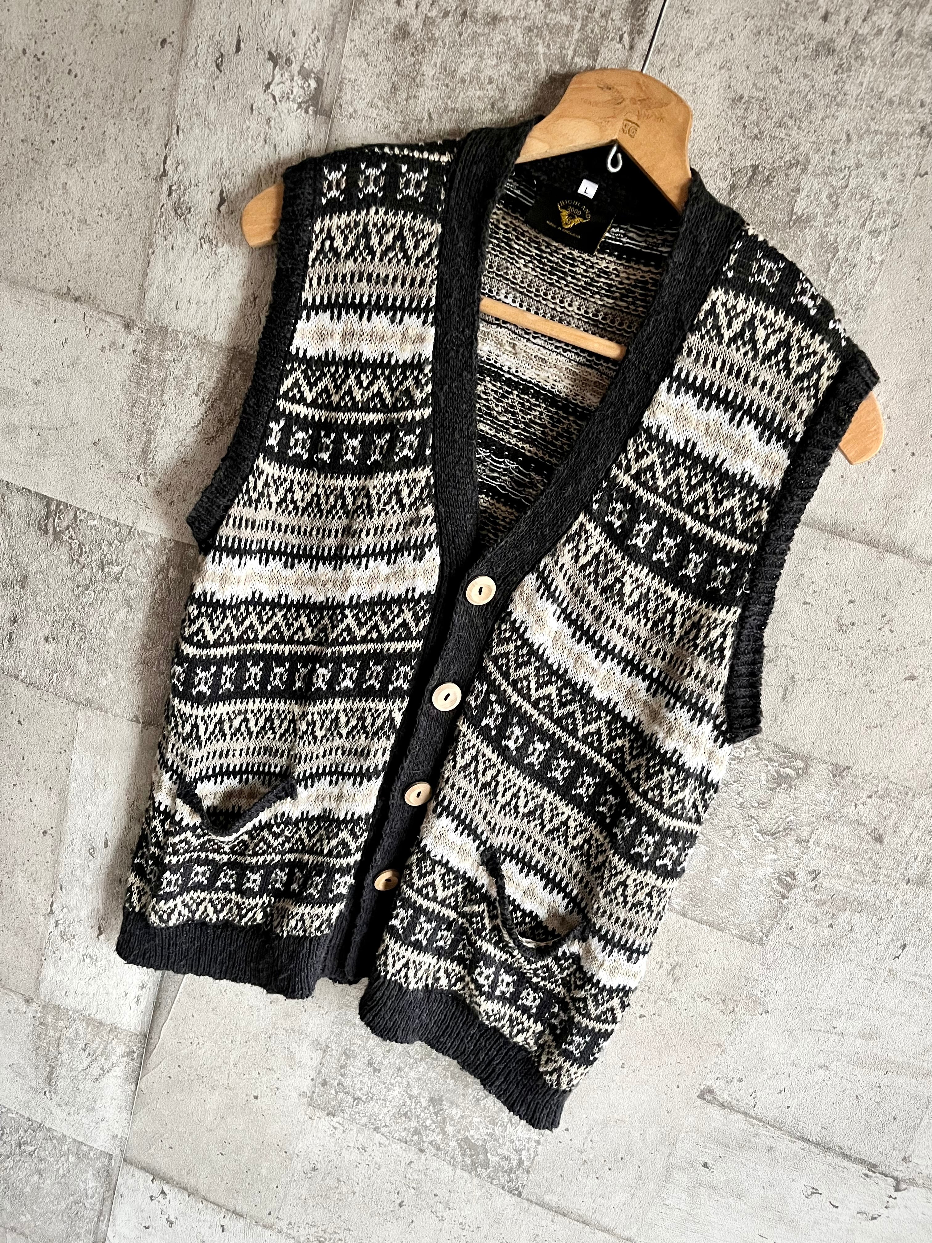 MADE IN ENGLAND “ HIGHLAND 2000 ” FAIR ISLE COTTON / LINEN VEST ORIGINAL 。