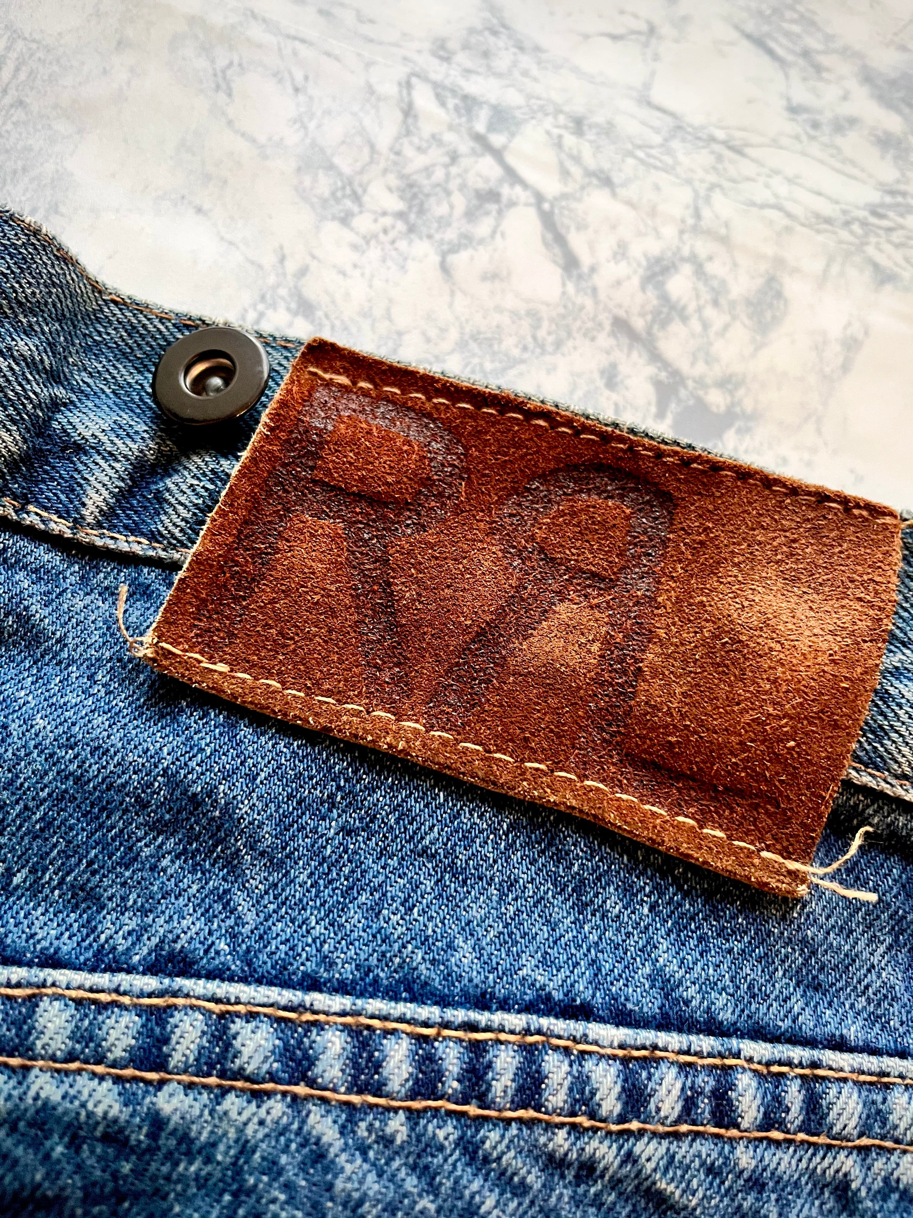 特徴的な分厚い革パッチに三本ラインの平行ステッチ&サスペンダーボタン付きと珍しいディティール、太めなワイドシルエットに程良くテーパードが効いた90sらしいシルエットで昨今の気分にはピッタリなデニムパンツだと思います。