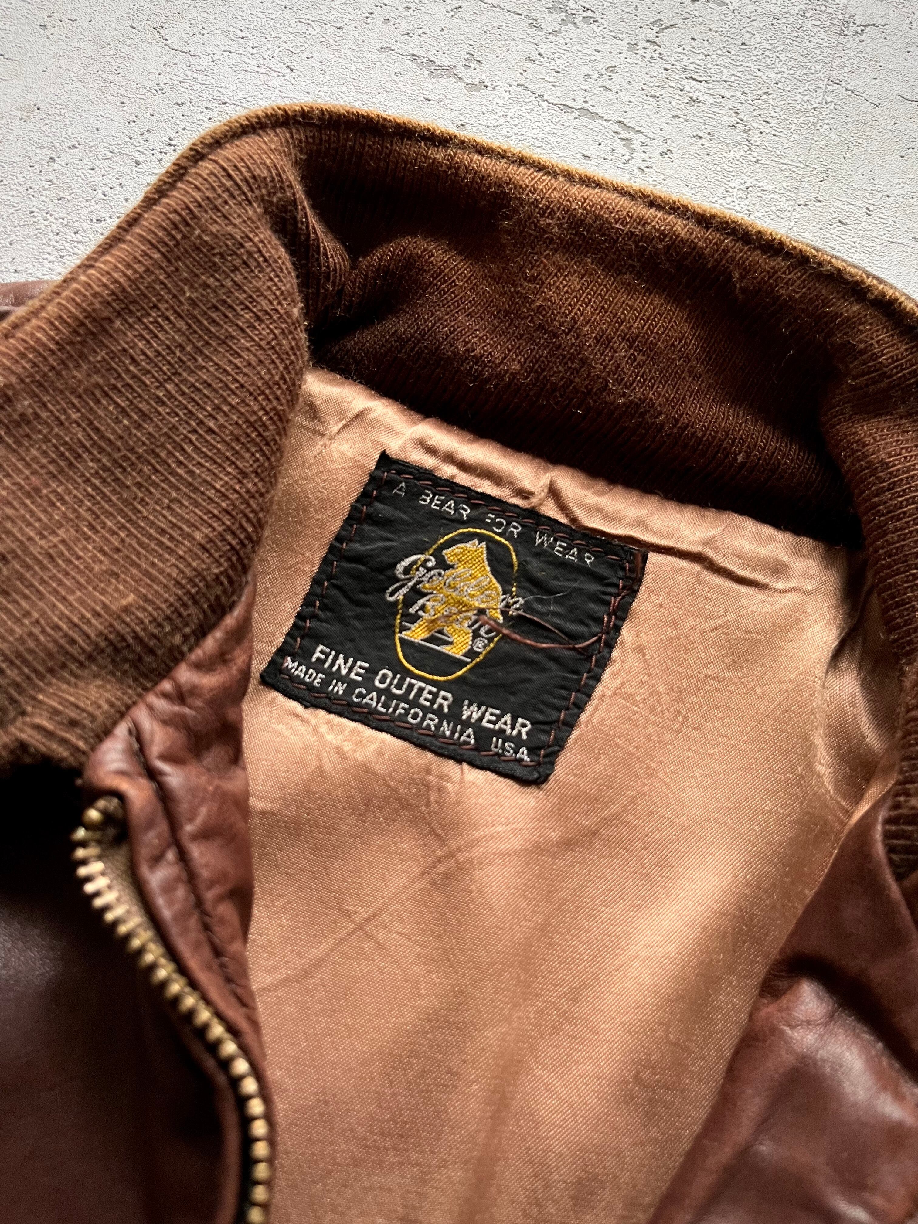 60s〜 MADE IN USA “GOLDEN BEAR” BLACK-TAG G-9 HARRINGTON TYPE LEATHER JACKET OLD VINTAGE 。
