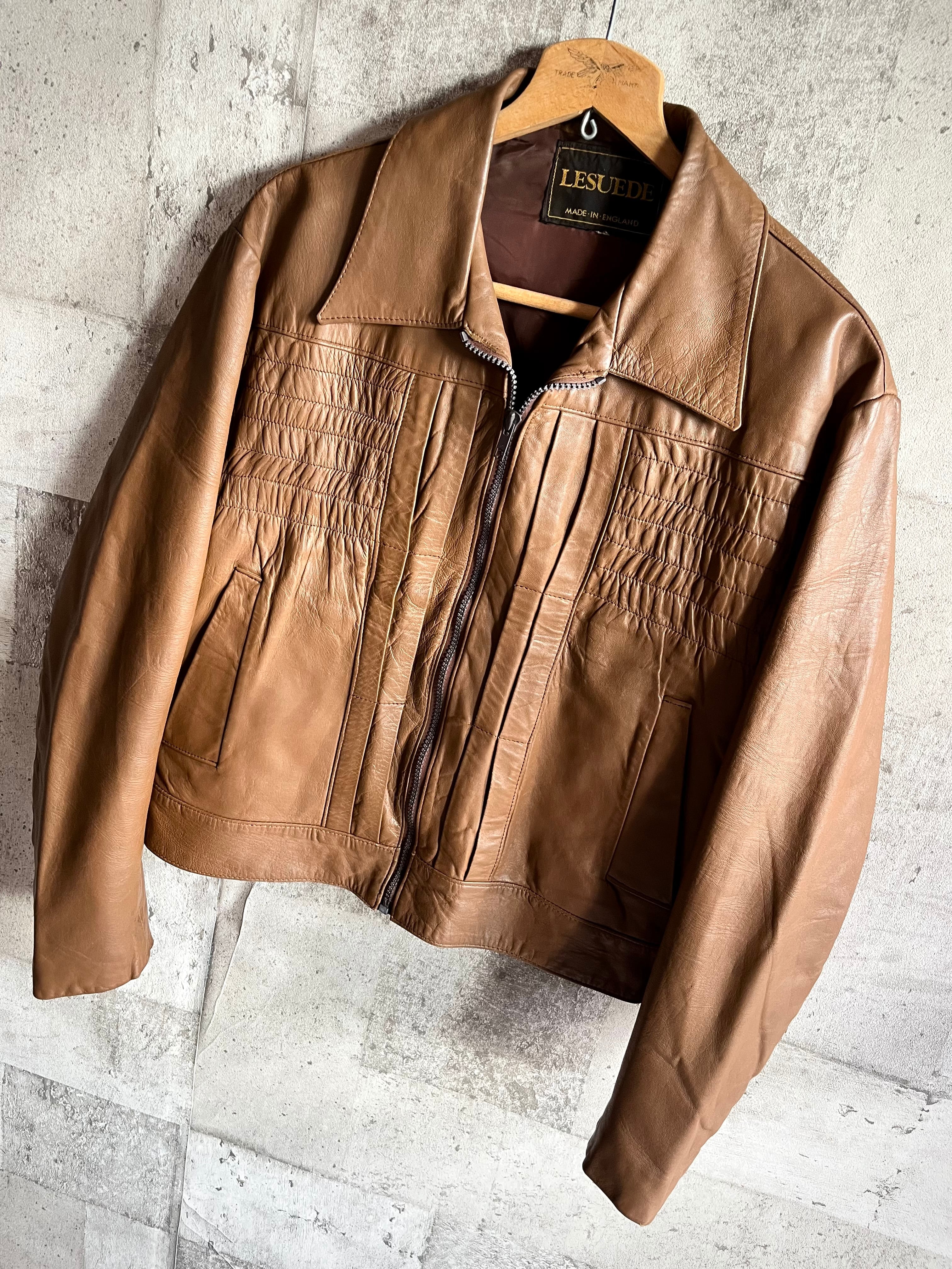 1980s〜 MADE IN ENGLAND “ LESUEDE ” ZIP-UP REAL LEATHER JACKET OLD VINTAGE 。