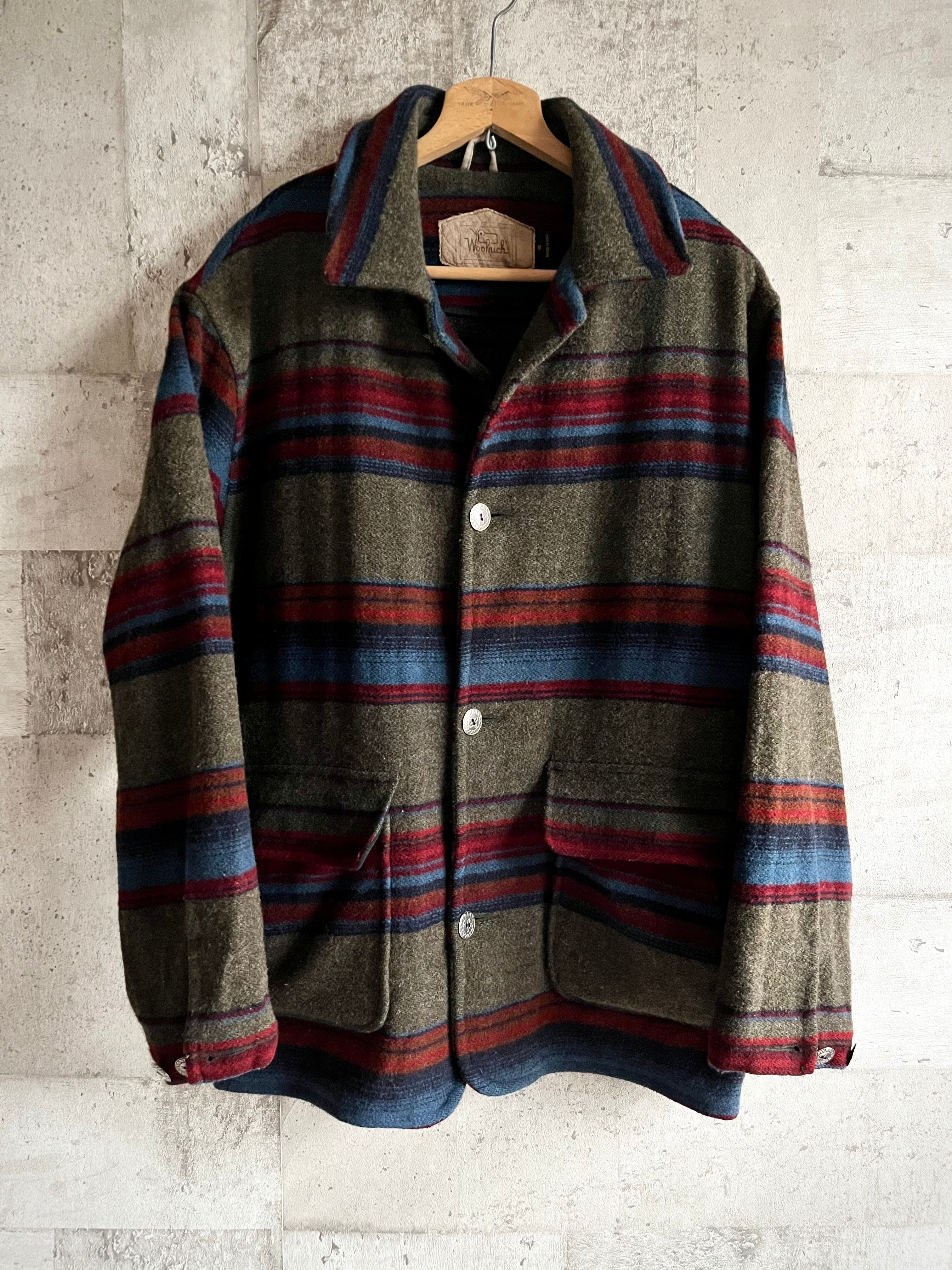 古着市場やVINTAGEとしても数多くの名品アイテムが存在していますが、その中でもファンが多い事でも知られている人気のネイティブ系ラグ生地ブランケットパターンを纏ったウールジャケットになります。